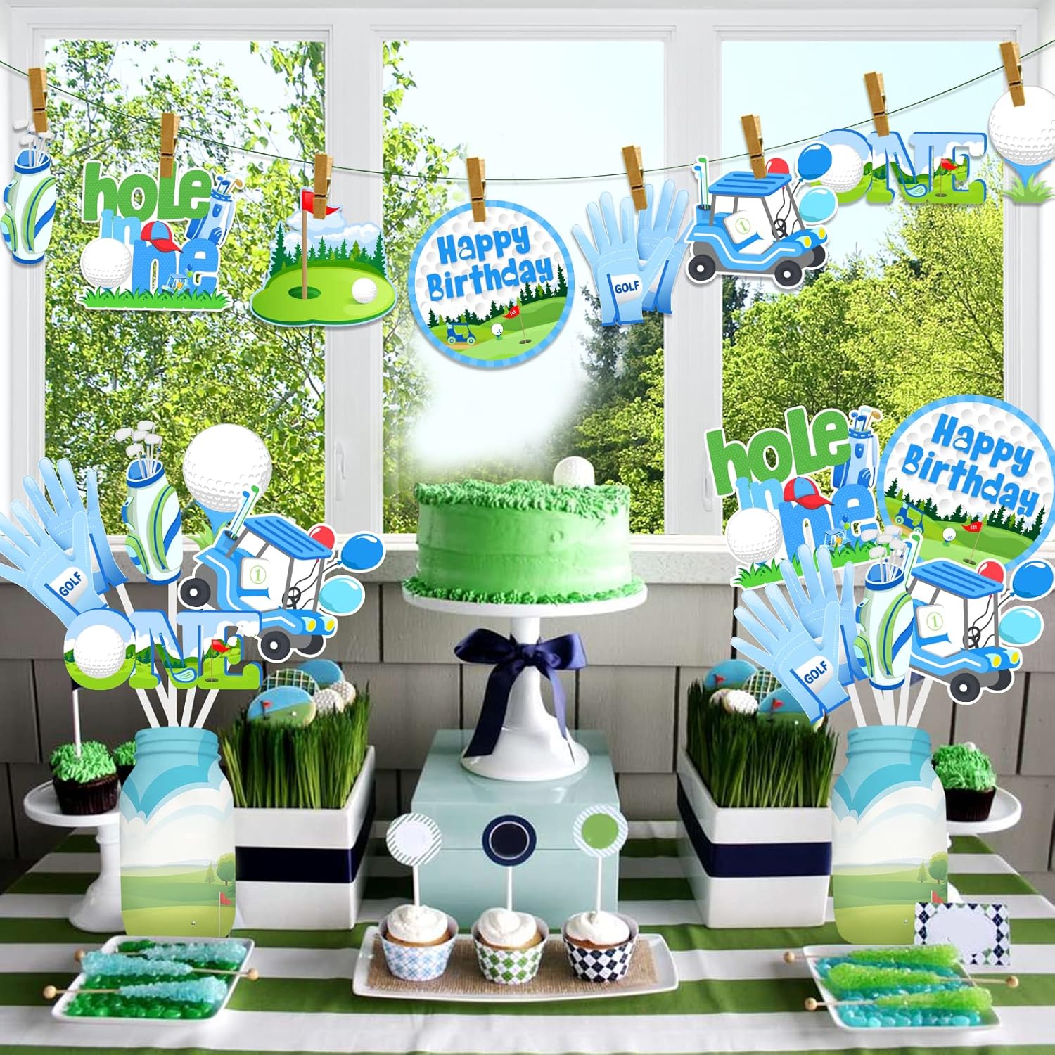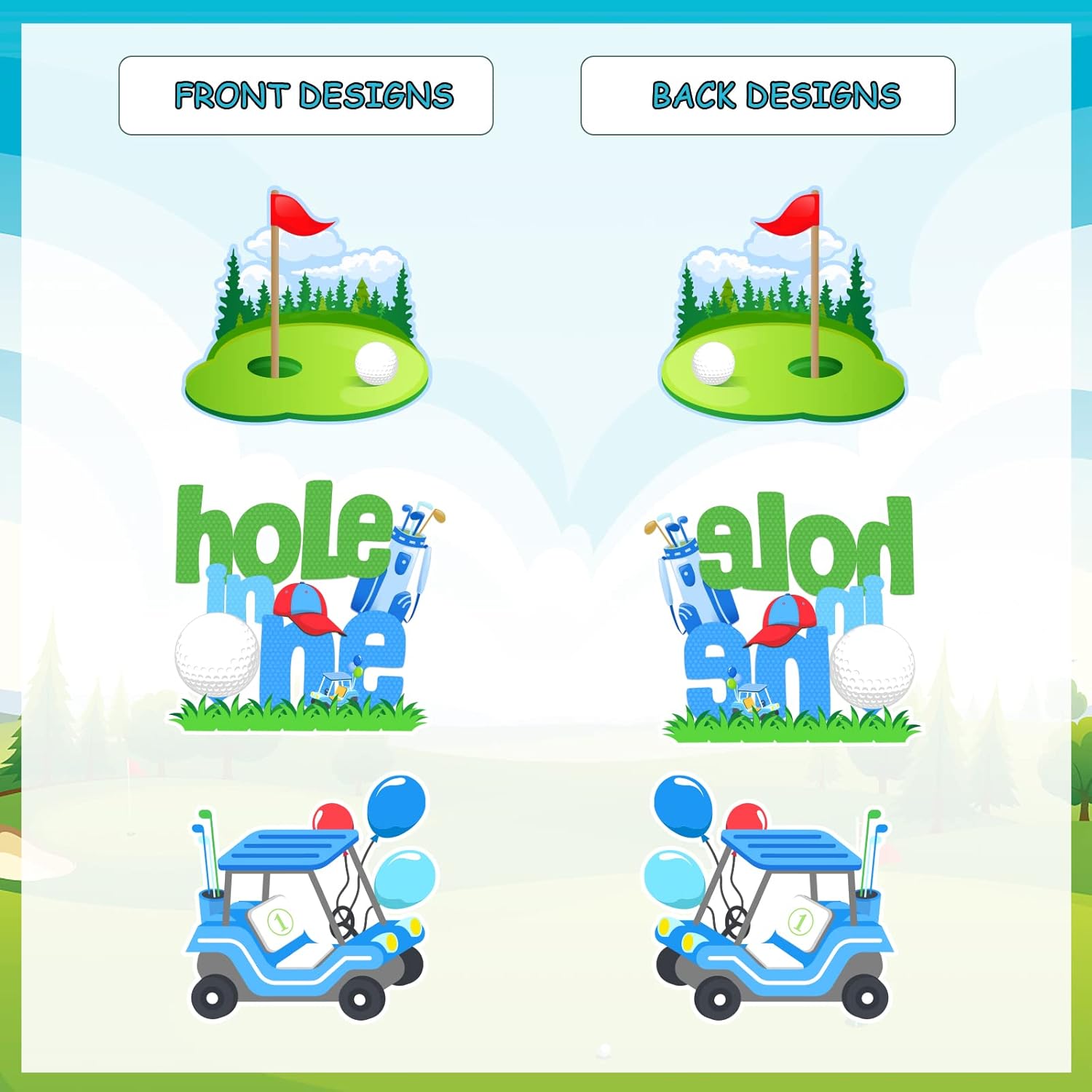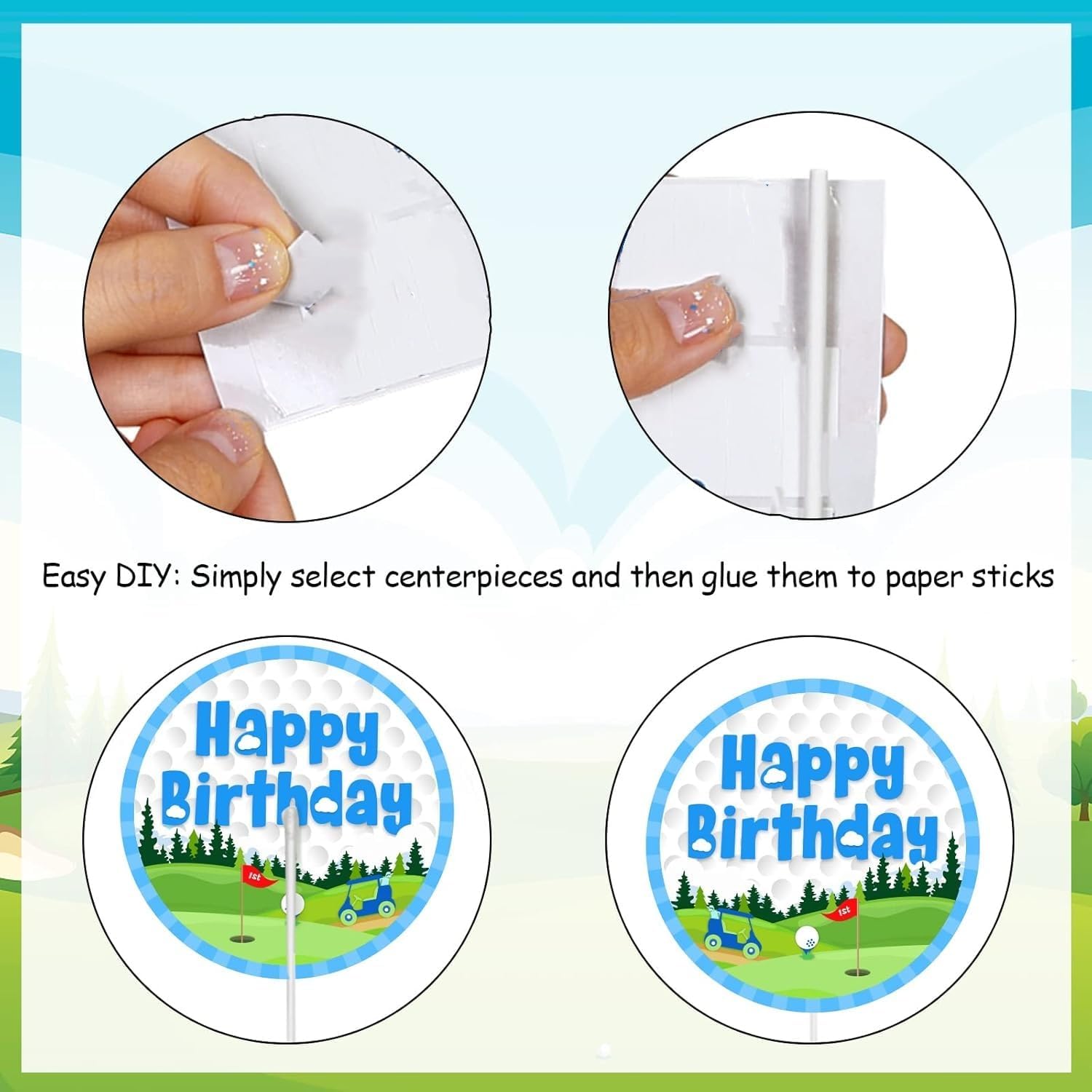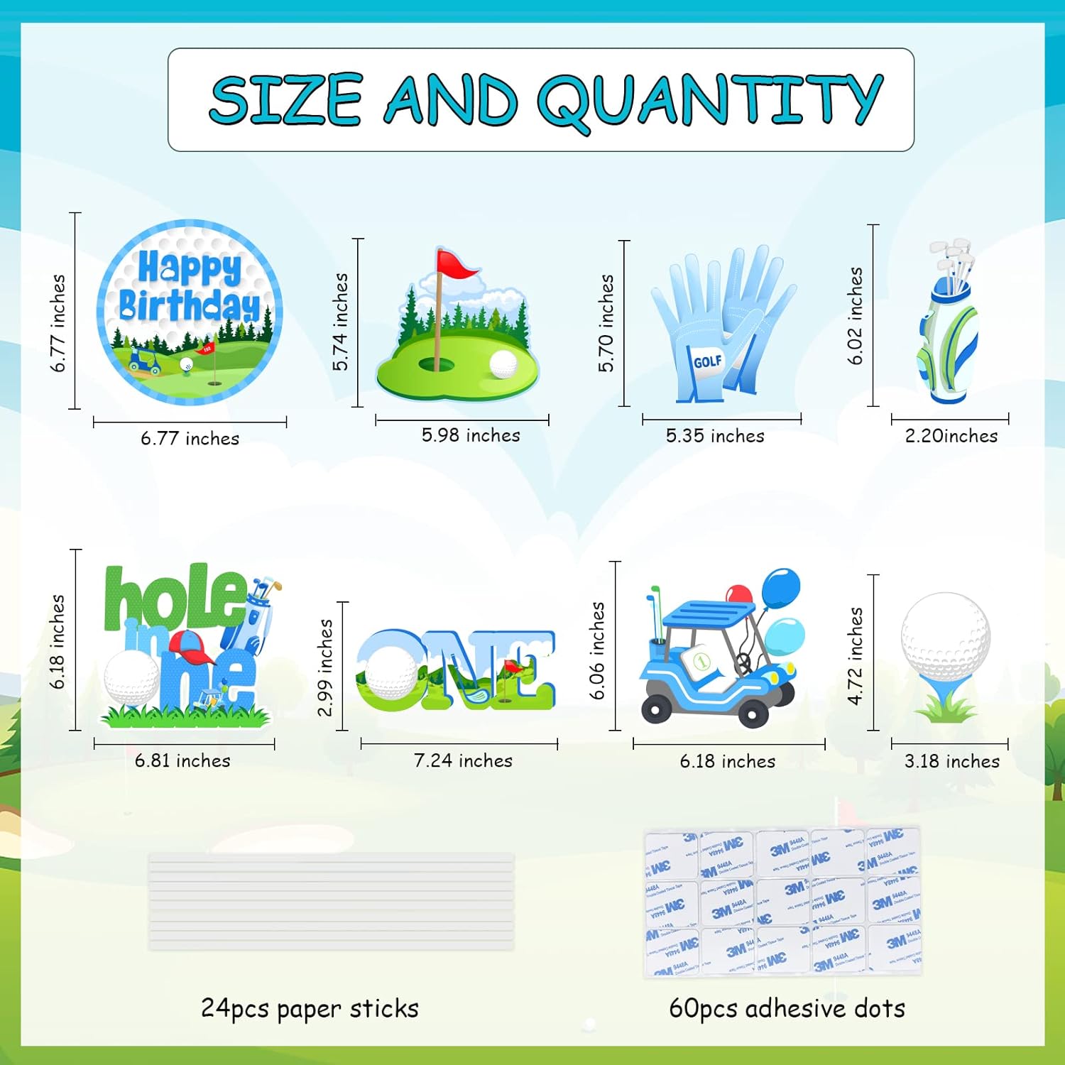 I centrotavola comprendono: Le decorazioni per la festa del 1° compleanno sono composte da 24 pezzi di centrotavola. Ci sono 3 set di centrotavola, ogni set contiene 8 diversi modelli a tema golf. Colore attraente: la combinazione di blu e verde sembra molto energica e fresca, adatta a ragazzi di 1 anno. Puoi anche decorare la tua festa con palloncini e striscioni nello stesso sistema di colori. Decorazione utile per la festa: i centrotavola per feste di compleanno sono stampati con motivi di palline da golf su entrambi i lati. Per decorare casualmente la tua festa, potresti metterlo sul tavolo della torta di compleanno, sul tavolo dei regali o in altri posti. Sembra bello e delicato, aggiunge una fantastica atmosfera alla tua festa di compleanno! Design accattivante: gli elementi di design si concentrano sul tema del golf, tra cui mazze da golf, campi da golf, macchine turistiche per il golf e lettere di cartoni animati stampate con "Happy Birthday", che è molto creativo e adatto a ragazzi di 1 anno. Vari usi: può essere incollato su un vaso, un cupcake o una torta grande, in modo che la tua torta di compleanno e il tavolo dei regali sembrino più belli. Può essere utilizzato come strumento fotografico, quindi puoi prendere questo topper da tavolo o usarlo come parte dello sfondo per scattare bellissime foto e pubblicarle su piattaforme social.