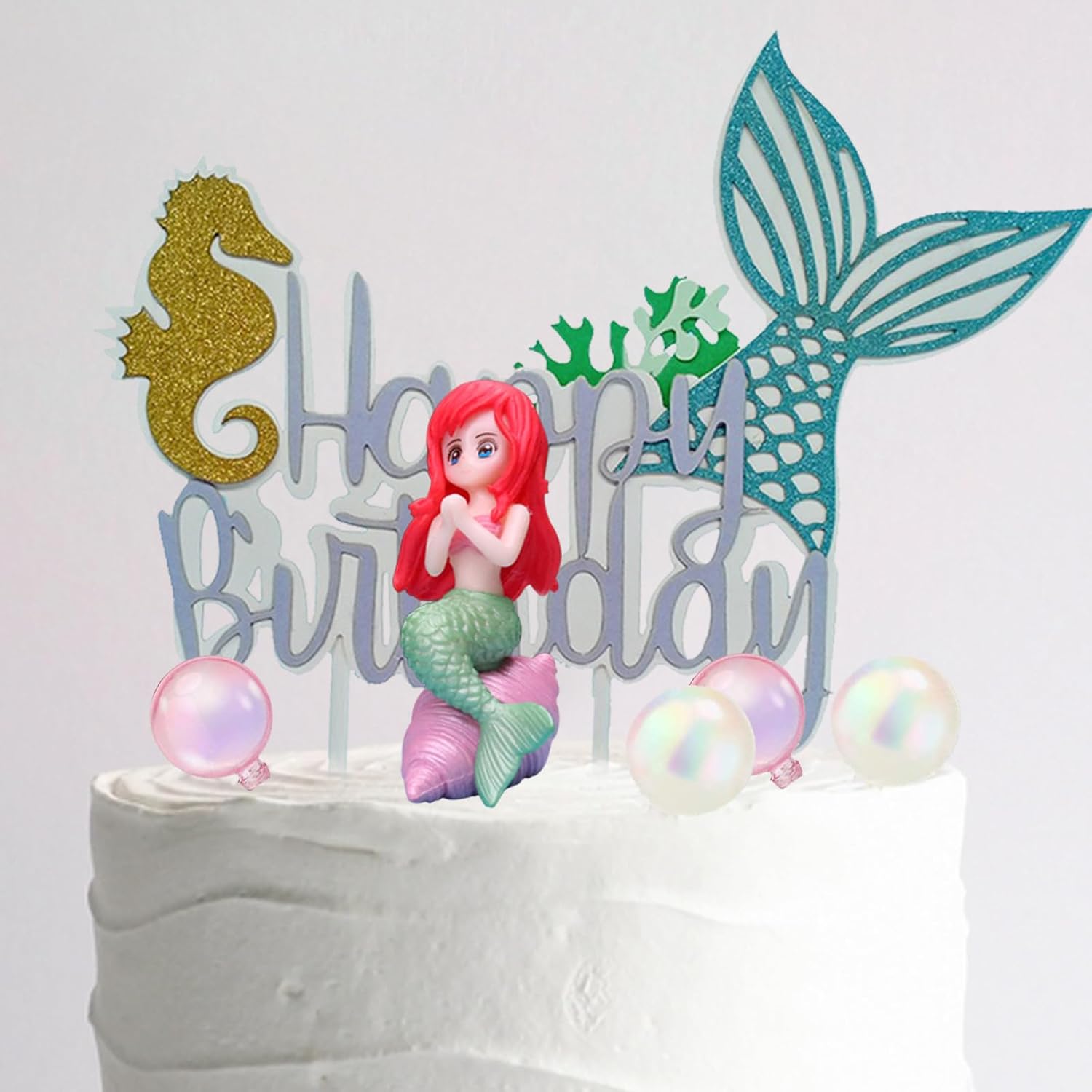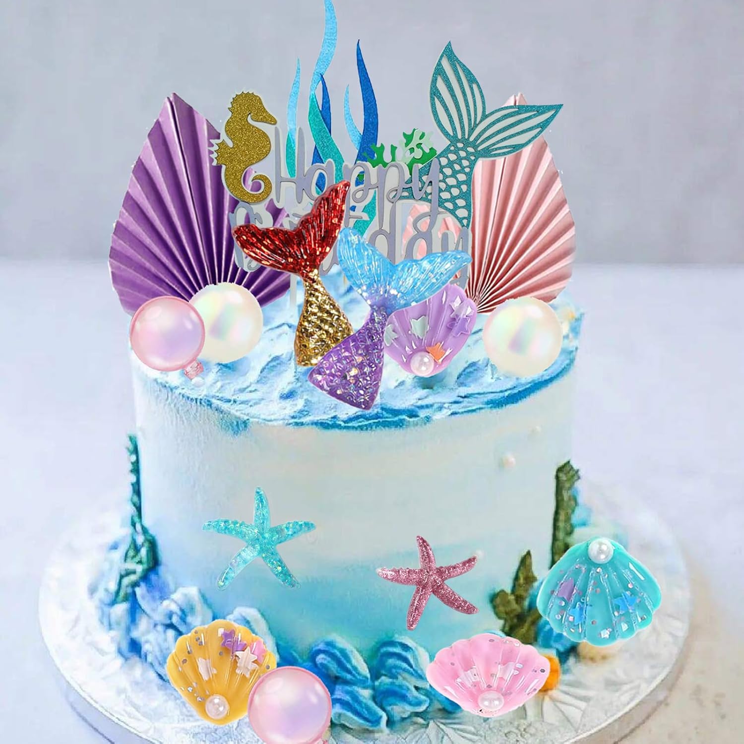 【Set di toppers per torta a sirena】 Il set di decorazioni per compleanno a sirena da 22 pezzi include: 1 * sirenetta, 1 * topper per torta di buon compleanno sirena, 2 * alghe, 4 * stelle marine, 4 * toppers per cupcake a coda di sirena, 4 * conchiglie di finte perle, 6 * bolle. palline, 2 foglie di palma di carta. 【Sicuro e di alta qualità】 Le sirene e le creature marine sono realizzate in plastica di alta qualità, riutilizzabili dopo il lavaggio con acqua pulita e sicure per i bambini. La decorazione di buon compleanno con foglie di palma e alghe è realizzata in cartoncino glitterato e feltro di alta qualità e può essere utilizzata per abbinare diverse torte. 【Ampiamente usato】 Adatto a varie occasioni, adatto per feste di compleanno o festival, baby shower, matrimoni, Natale, Halloween, Ringraziamento e altre celebrazioni. Regala ai tuoi bambini una festa indimenticabile. 【Facile da usare】 Non è necessario assemblare il topper per torta a sirena, basta estrarlo e posizionarlo sulla deliziosa torta per la decorazione, perfetto per cupcake, dessert, muffin, snack, frutta, bomboniere, decorazioni da tavola. 【Decorazione squisita】 Con dettagli accuratamente scolpiti, il cake topper a tema sirena è adatto a tutti i tipi di feste di compleanno, feste subacquee e feste a tema sirena. Il materiale glitterato conferisce alla sirena accenti ancora più fiabeschi e aggiunge più fascino alla tua torta.