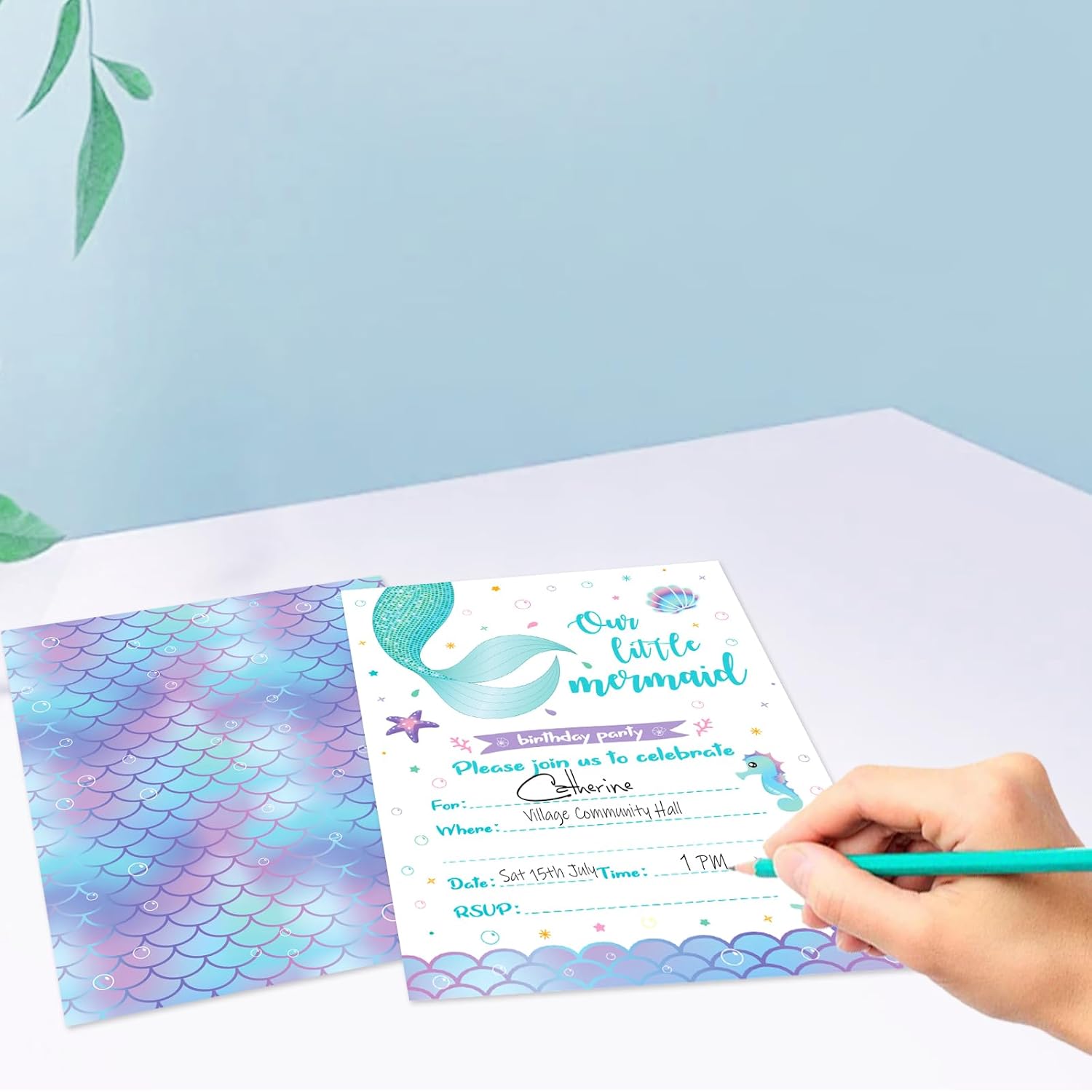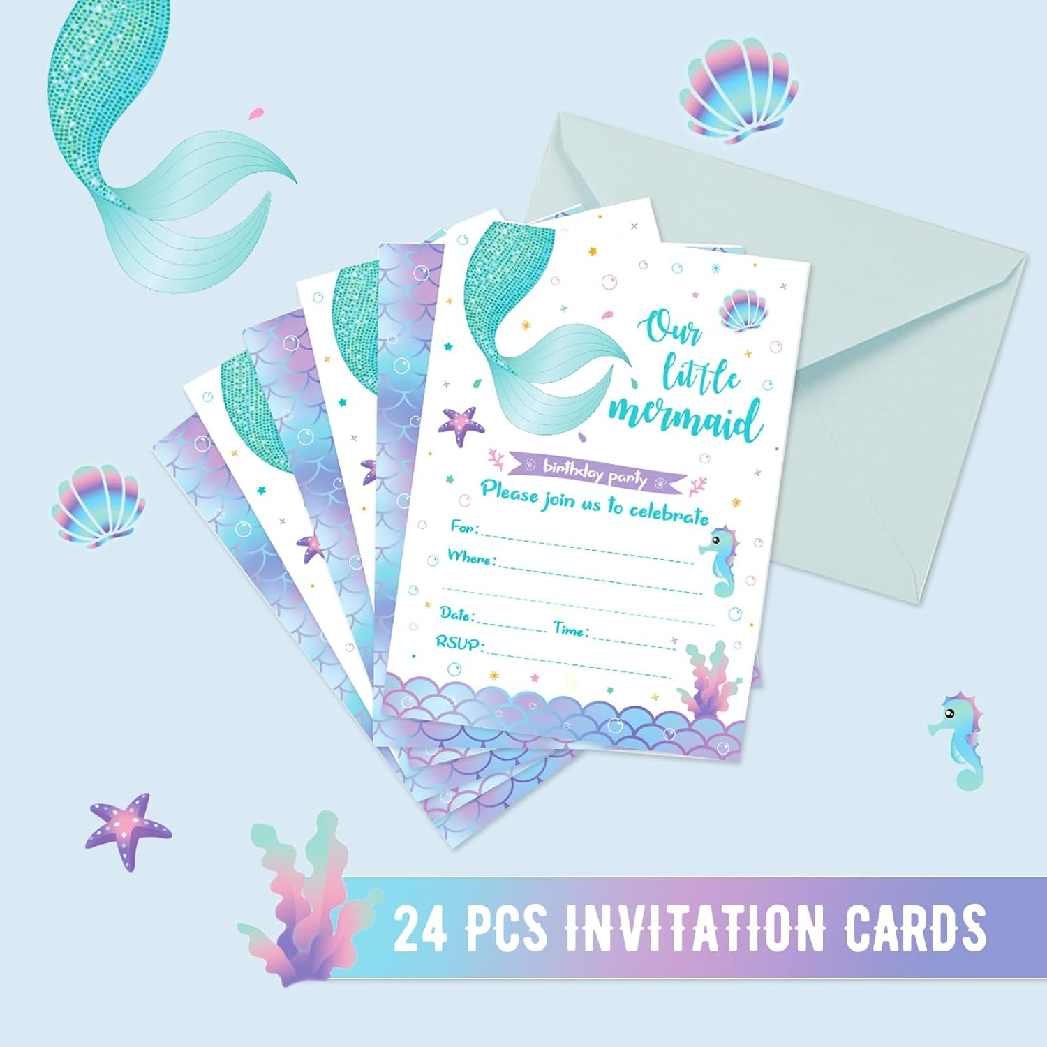 [DESIGN SIRENA PER BAMBINI] Un invito a una festa a forma di sirena si adatta perfettamente alle feste a tema. I colori vivaci e il simpatico motivo esclusivo attirano bambini e ragazze. Vai e invita i tuoi amici alla festa dei tuoi sogni! [BIGLIETTO INVITO PREMIUM] Il biglietto stampato fronte-retro è realizzato con carta ecologica di alta qualità e il motivo è chiaro e vivido. Facile da scrivere con qualsiasi penna. [INVITI DI DIMENSIONE ADATTA] Confezione da 24 inviti per feste stampati fronte-retro (180x130 mm) con 24 buste blu (184x133 mm) e 36 adesivi (30 mm). Spazio sufficiente per annotare i dettagli della festa, inclusi la data, l'indirizzo e le informazioni sulla risposta. [PACCHETTO INCLUSO] Il pacchetto contiene 24 biglietti d'invito per una festa con sirene e 24 buste, insieme a 36 adesivi con stelle marine. Quantità sufficiente per invitare gli amici e organizzare una festa speciale. [MOLTEPLICI OCCASIONI] Questo biglietto d'invito può essere utilizzato in una varietà di occasioni come feste a tema, feste di compleanno, matrimoni, feste di scambio regali, feste di laurea, feste a sorpresa ed eventi festivi. Stoccaggio e gestito da Amazon UK."