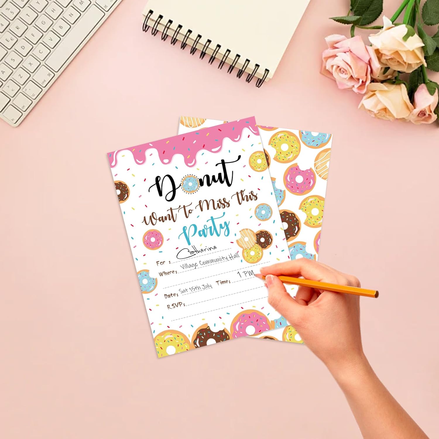 [DOUGHNUTS DESIGN PER BAMBINI] Un invito a una festa con ciambelle si adatta perfettamente alle feste a tema. I colori vivaci e il simpatico motivo esclusivo attirano bambini e ragazze. Vai e invita i tuoi amici alla festa dei tuoi sogni! [BIGLIETTO INVITO PREMIUM] Il biglietto stampato fronte-retro è realizzato con carta ecologica di alta qualità e il motivo è chiaro e vivido. Facile da scrivere con qualsiasi penna. [INVITI DI DIMENSIONE ADATTA] Confezione da 24 inviti per feste stampati fronte-retro (180x130 mm) con 24 buste blu (184x133 mm) e 36 adesivi (35 mm). Spazio sufficiente per annotare i dettagli della festa, inclusi la data, l'indirizzo e le informazioni sulla risposta. [PACCHETTO INCLUSO] Il pacchetto contiene 24 biglietti d'invito per feste con ciambelle e 24 buste, insieme a 36 adesivi con ciambelle. Quantità sufficiente per invitare gli amici e organizzare una festa speciale. [MOLTEPLICI OCCASIONI] Questo biglietto d'invito può essere utilizzato in una varietà di occasioni come feste a tema, feste di compleanno, matrimoni, feste di scambio regali, feste di laurea, feste a sorpresa ed eventi festivi. Stoccaggio e gestito da Amazon UK."
