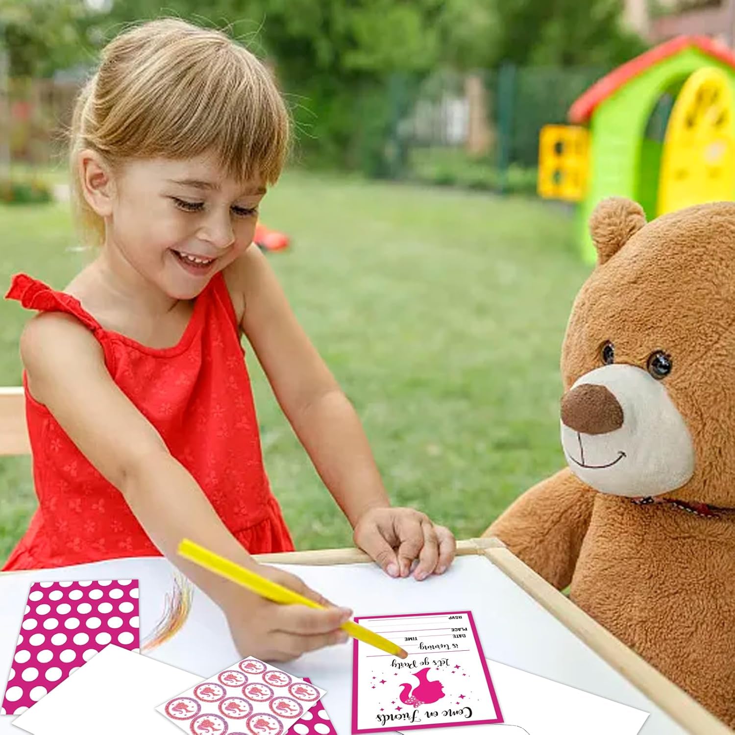 Design principessa per bambini: un invito per feste a tema principessa si adatta perfettamente alle feste a tema. I colori vivaci e il simpatico motivo esclusivo attirano bambini e ragazze. Vai e invita i tuoi amici alla tua festa da sogno! Biglietto di invito di alta qualità: il biglietto stampato su entrambi i lati è realizzato in carta ecologica di alta qualità e il motivo è chiaro e vivace. Facile da scrivere con qualsiasi penna. Inviti di dimensioni adatte: confezione da 24 inviti per feste stampati su entrambi i lati (180 x 130 mm) con 24 buste bianche (185 x 135 mm) e 24 adesivi (30 mm). Spazio sufficiente per scrivere i dettagli della festa, tra cui data, indirizzo e informazioni di risposta. Contenuto della confezione: la confezione contiene 24 biglietti di invito per feste a tema principessa e 24 buste, insieme a 24 adesivi principessa. Quantità sufficiente per invitare gli amici e organizzare una festa speciale. Molteplici occasioni: questo biglietto di invito può essere utilizzato in una varietà di occasioni come feste a tema, feste di compleanno, matrimoni, feste di scambio di regali, feste di laurea, feste a sorpresa ed eventi festivi. Stoccaggio e gestito da Amazon UK.