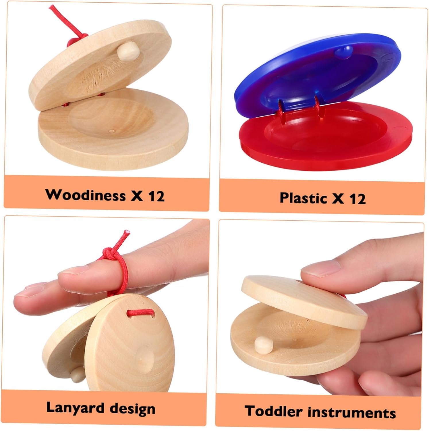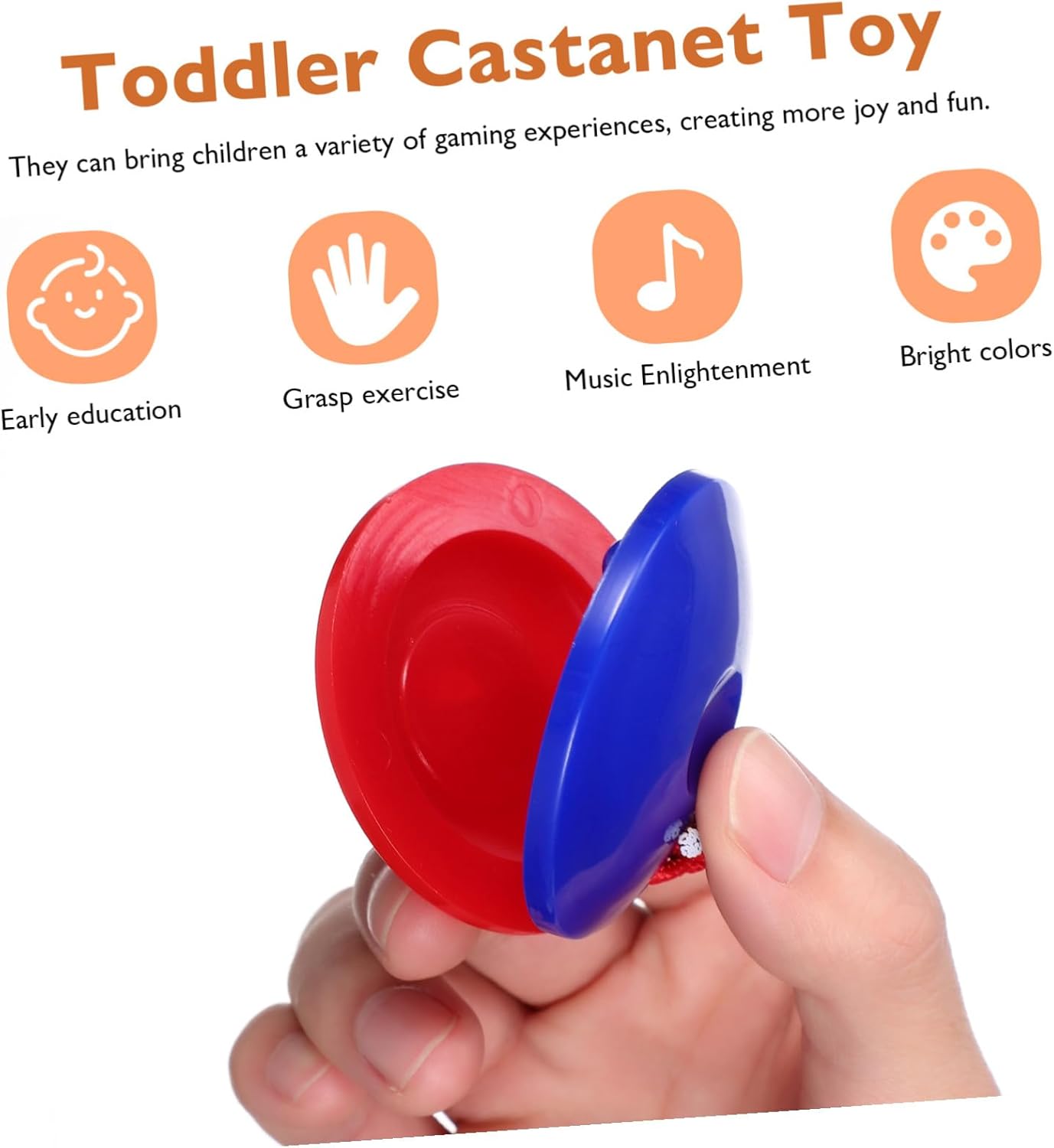 Design accattivante: giocattolo educativo per strumenti a percussione con un bel design, attira facilmente l'attenzione dei bambini, giocattolo musicale per, strumento musicale per strumento a percussione: offre ai bambini un divertimento infinito, produce suoni meravigliosi, porta più gioia a ragazze e ragazzi, strumenti musicali, strumenti musicali giocattolo musicale: può produrre suoni per attirare l'attenzione del bambino e allenare il senso dell'udito. strumento per bambini, nacchere in plastica per bambini Per l'apprendimento precoce: questo giocattolo nacchere non solo può sviluppare il potenziale musicale dei bambini, ma anche migliorare la coordinazione occhio-mano e la capacità uditiva, strumenti a percussione per bambini, giocattoli per bambini Giocattoli educativi per bambini piccoli: è utile per lo sviluppo degli organi sensoriali del bambino e utile per la comunicazione genitore-figlio, nacchere per dita per strumenti a percussione per bambini, strumenti musicali per bambini in età prescolare