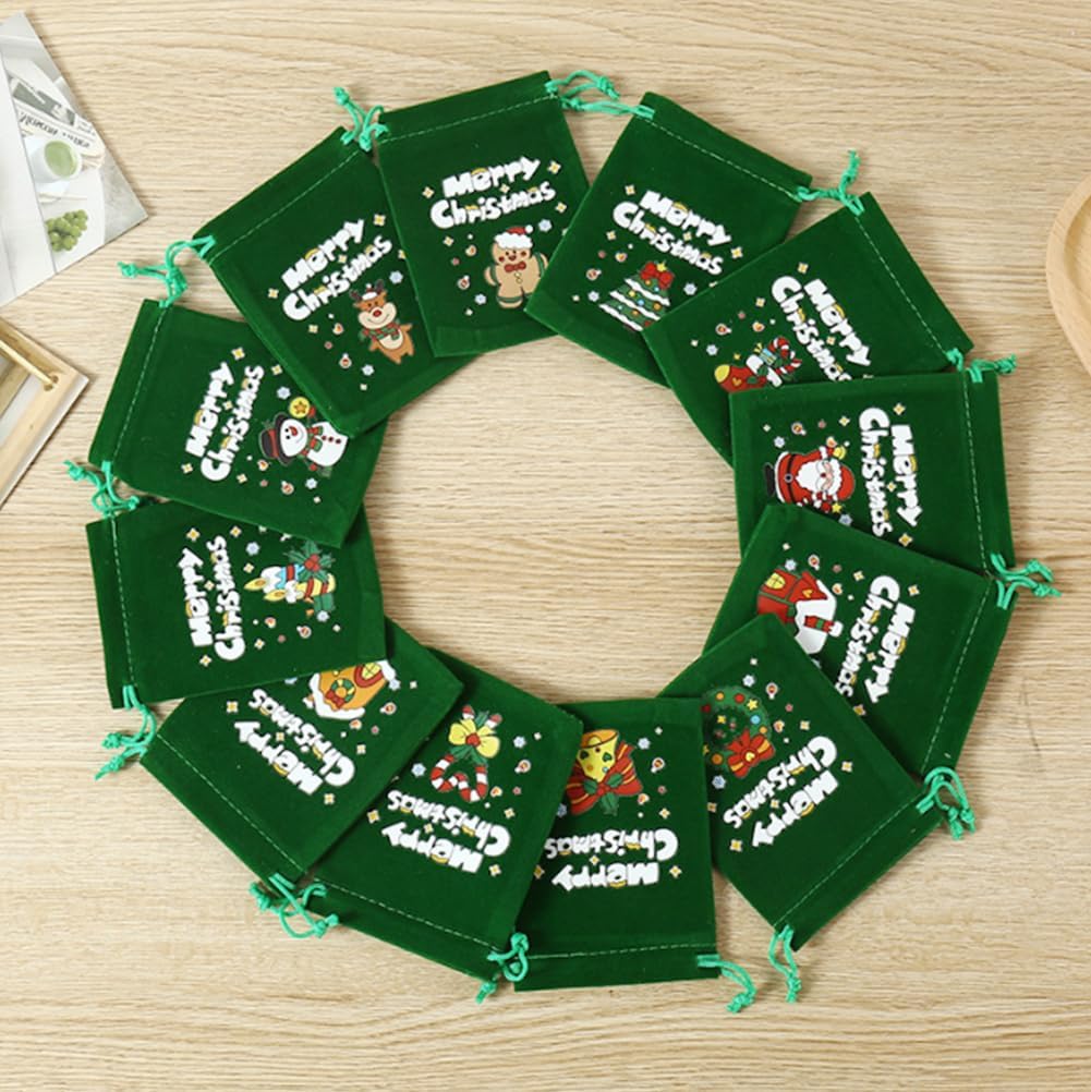 【Borse con coulisse】Borse da 24 pezzi, ciascuna misura 10 cm x 15 cm. Queste borse con coulisse sono molto ben realizzate e ben cucite. 【Elementi natalizi classici】 Borsa natalizia in flanella con motivi natalizi tradizionali come Babbo Natale, Alce, Pupazzo di neve e così via, le nostre borse per bomboniere natalizie aggiungono un tocco di spirito natalizio ai tuoi regali. 【Materiale Premium】 I sacchetti regalo sono realizzati in flanella, riutilizzabili e resistenti, morbidi, perfetti per bomboniere e decorazioni per le feste di Natale. 【Design】 I nostri sacchetti regalo sono dotati di un cordoncino che facilita l'inserimento e la rimozione degli oggetti e ne impedisce la perdita. L'interno è realizzato in materiale morbido che previene i graffi e mantiene gli oggetti puliti quando vengono riposti. 【Ampia applicazione】 Queste piccole borse natalizie sono adatte per feste a tema natalizio, matrimoni, feste di compleanno. Può essere utilizzato per conservare piccoli regali, come snack, bigliettini, biscotti, caramelle, cioccolato e altri piccoli oggetti.