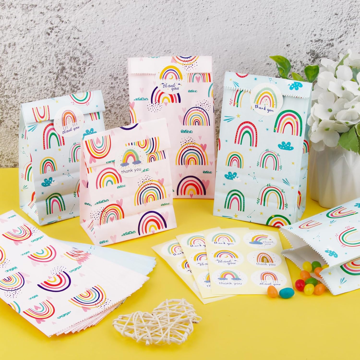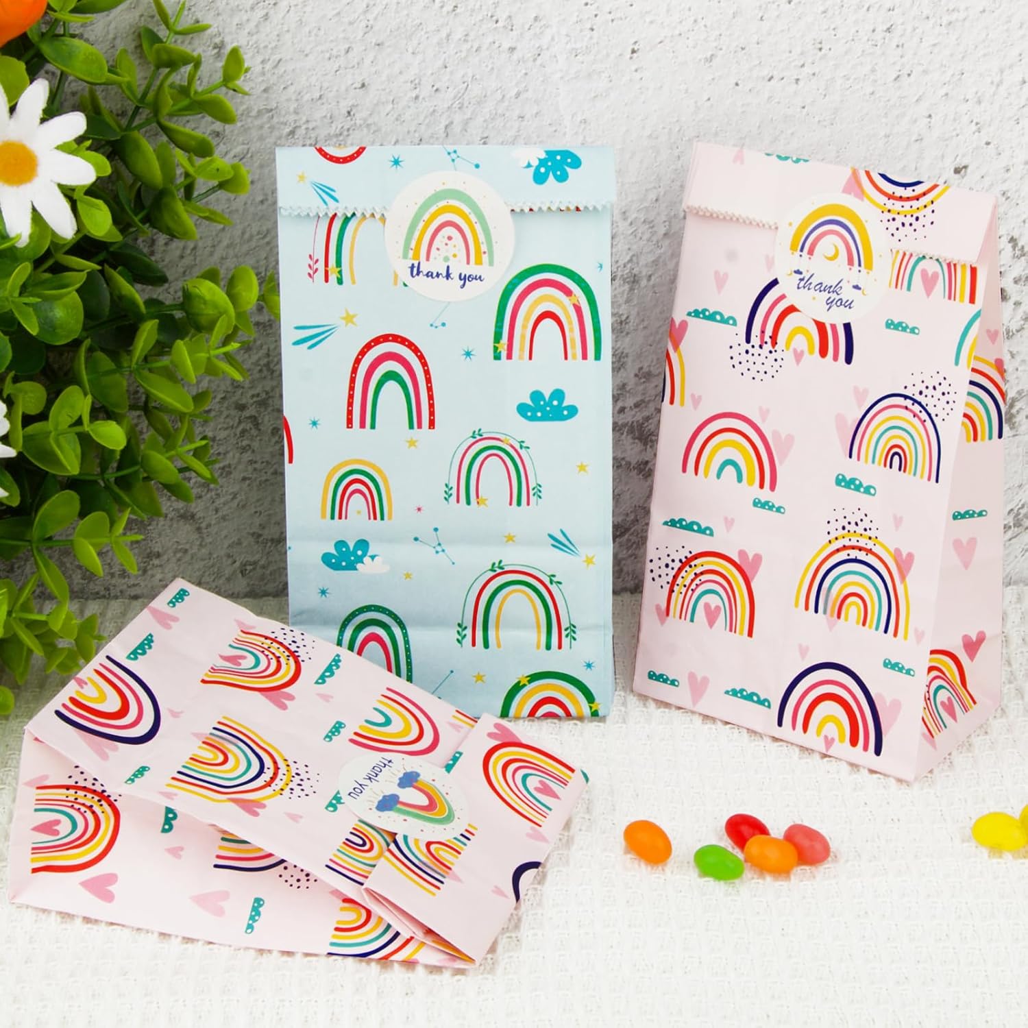 Riceverai: 24 sacchetti regalo arcobaleno + 4 fogli di adesivi arcobaleno. Materiale: i sacchetti di carta sono realizzati in carta speciale da 70 g/㎡, resistente e riciclabile. Dimensioni: le borse da festa misurano 18 x 9 x 5 cm, la capacità è sufficiente per l'uso. Regalo: i sacchetti regalo hanno un design arcobaleno alla moda, anche un regalo meraviglioso per i bambini o il tuo bambino. Questo sacchetto di caramelle arcobaleno è perfetto per feste da principessa, baby shower, feste di compleanno, matrimoni, feste per bambini o feste a tema.
