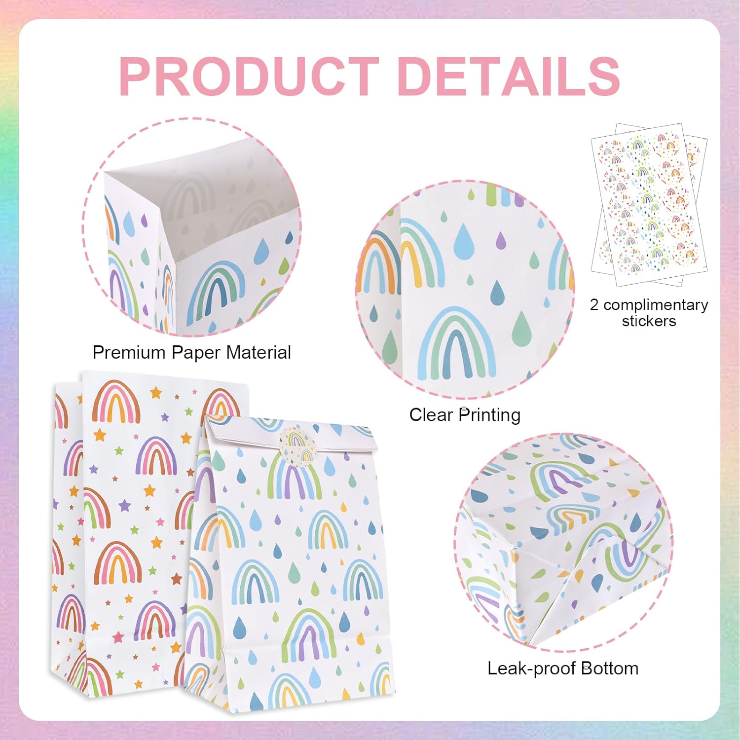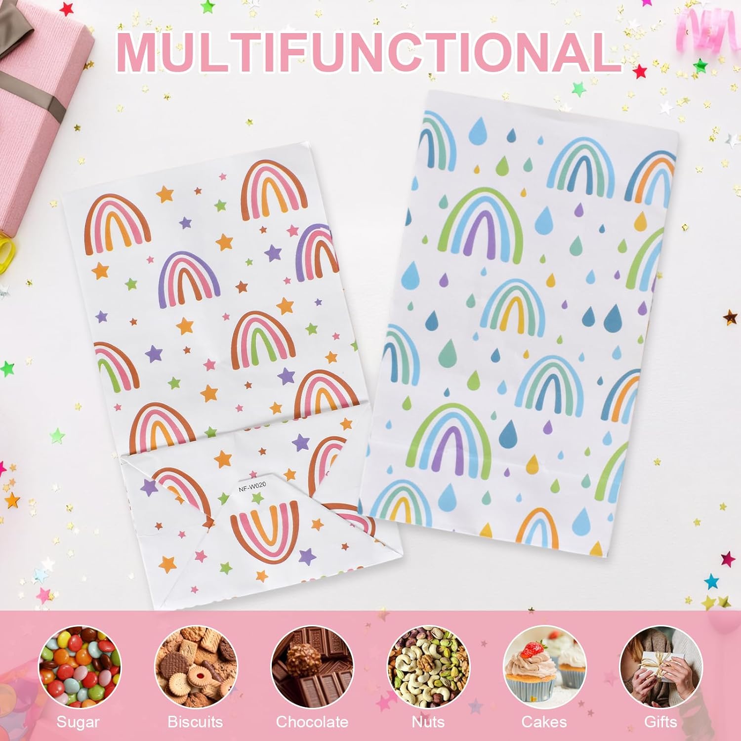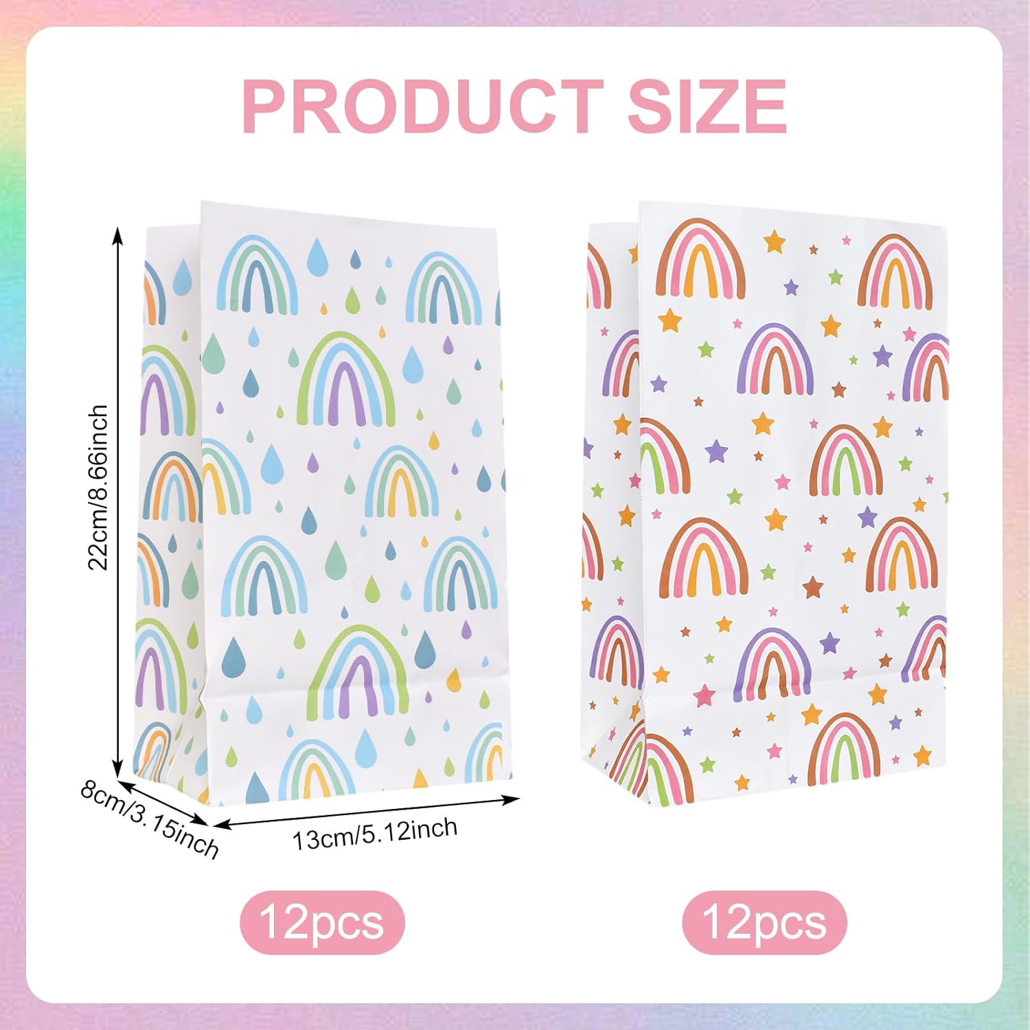 ✨ DIMENSIONI PERFETTE e quantità sufficiente - 24 robusti sacchetti regalo arcobaleno (13 x 8 x 22 cm) offrono molto spazio per dolci, piccoli regali o sacchetti per le feste. Ideale per feste di compleanno, feste per bambini, matrimoni e altre occasioni speciali. ✨ Materiale di alta qualità e durevole: realizzato in robusta carta kraft e rifinito con stampa UV. Le borse sono resistenti agli strappi, all'umidità e la base stabile trattiene in modo sicuro anche i contenuti più pesanti. ✨ Design arcobaleno felice: le strisce colorate e vivaci portano gioia a qualsiasi celebrazione. Perfetto per presentare regali con stile e per dare un tocco speciale a matrimoni, compleanni o feste di Natale. ✨ Versatile e pratico - Ideale per feste, matrimoni, compleanni di bambini, calendari dell'Avvento o omaggi. Riutilizzabile, facile da trasportare e sempre a portata di mano. ✨ Idee regalo e decorazioni ottimali - Perfetto per dolci, piccoli souvenir, gioielli o oggetti artigianali. Un must per regali di compleanno, regali di nozze, Pasqua, Natale o eventi speciali.