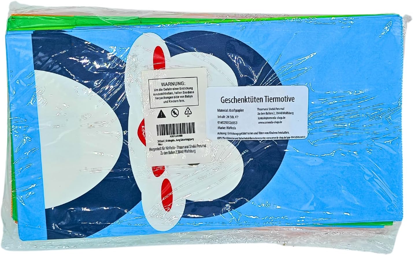 Contenuto: 24 sacchetti con motivi di animali + 24 adesivi