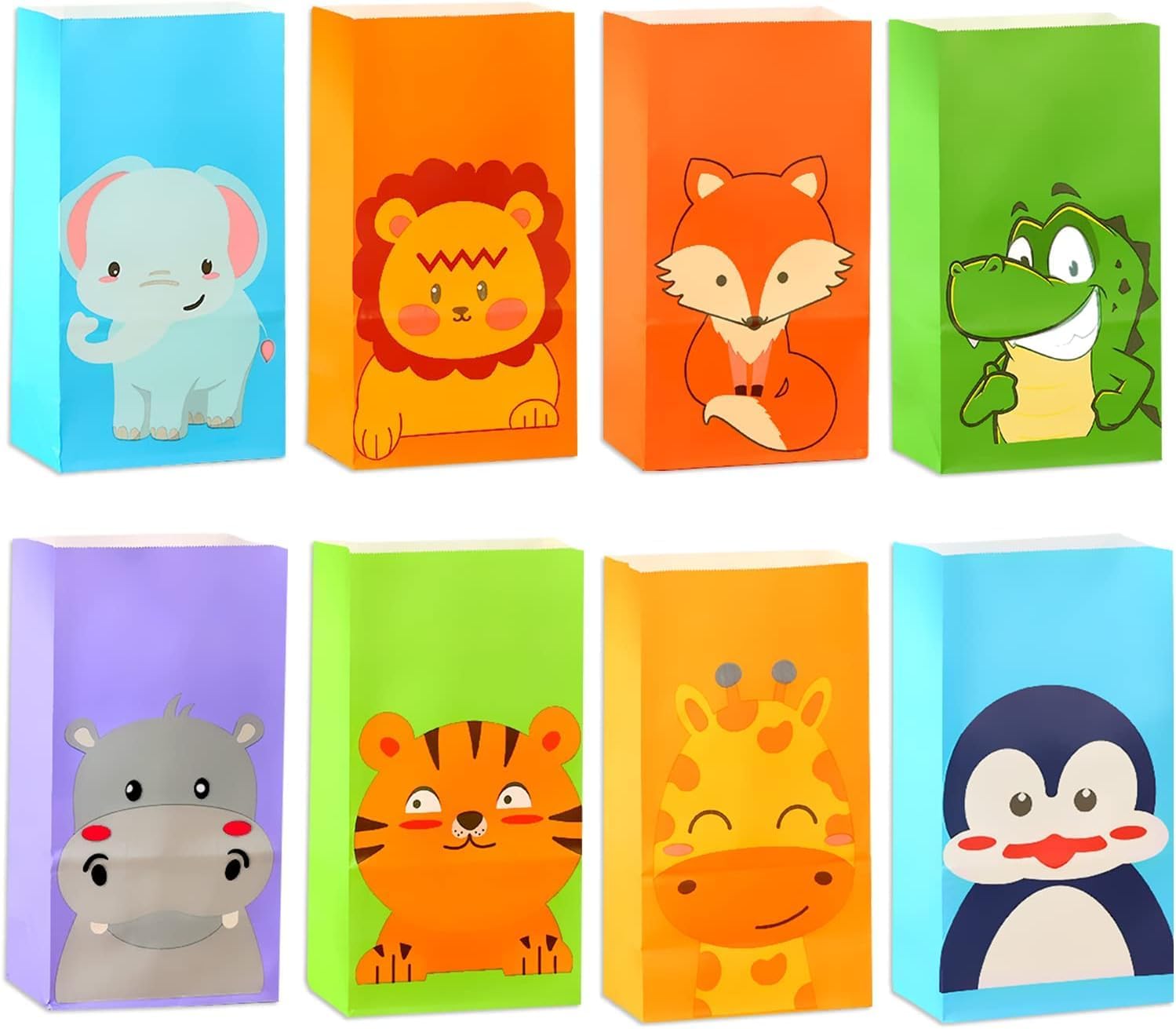 Confezione da 24 sacchetti regalo con animali per il compleanno dei bambini. Sacchetti di carta con foto di animali, sacchetti per feste, sacchetti per compleanno