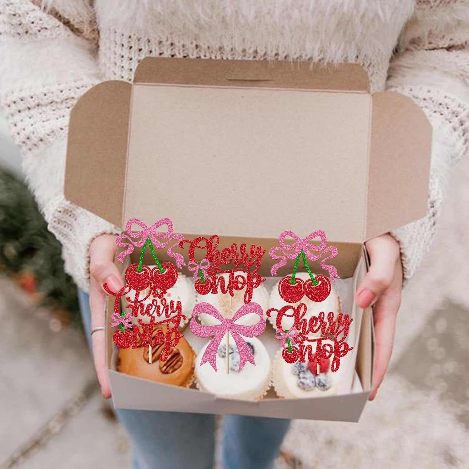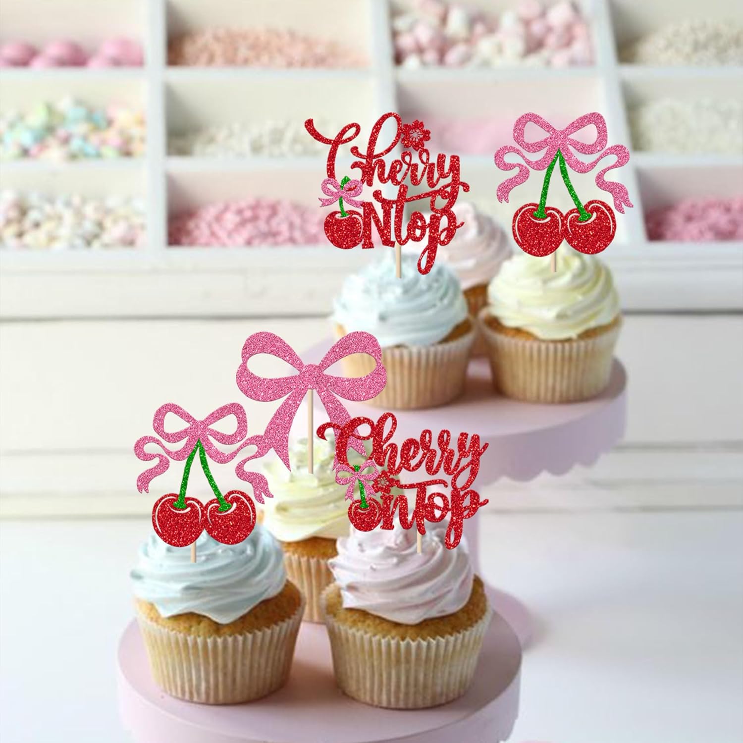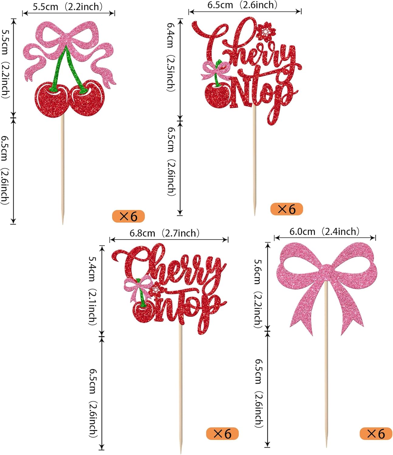Usi diversi! Queste decorazioni per cupcake alla ciliegia sono perfette per le feste a tema Cherry Oh Baby, Sweet Fruit, Cherry on Cake, Pink Bow, Baby Shower e Compleanno per ragazze. Renderanno i tuoi cupcakes più attraenti e aggiungeranno divertimento alla tua festa. Puoi usarli anche per gelati, frutta, biscotti e altri dessert. Qualità migliorata! Realizzato in cartoncino glitterato da 300 grammi, non facile da deformare e sbiadire, bordi lisci senza sbavature. Brilli alla luce, migliori facilmente l'atmosfera della festa e attiri l'attenzione della gente. È glitter su un solo lato. Nessun assemblaggio richiesto! Queste decorazioni per cupcake alla ciliegia sono già assemblate, quindi non è necessario crearle fai-da-te, il che ti fa risparmiare tempo e fatica nella preparazione della festa, puoi metterle nella torta o nei cupcake e regolare l'altezza appropriata per ottenere un effetto migliore. Quantità sufficiente e dimensioni adeguate Design. L'ampia quantità può soddisfare le diverse esigenze di decorazione. La dimensione è 2*5,5/ 2,2*4,9/ 2,6*4,6/ 2,4*4,3/ 2*5,5/ 2,3*4,9/ 2,6*4,8/ 2,2*4,5/ 2*4,9/ 2,1*4,7 pollici (con gambo) Acquista con fiducia! Le decorazioni per cupcake alla ciliegia sono solo a scopo decorativo, per favore non metterle nel forno o nel microonde. In caso di problemi, contattaci, faremo di tutto per renderti soddisfatto