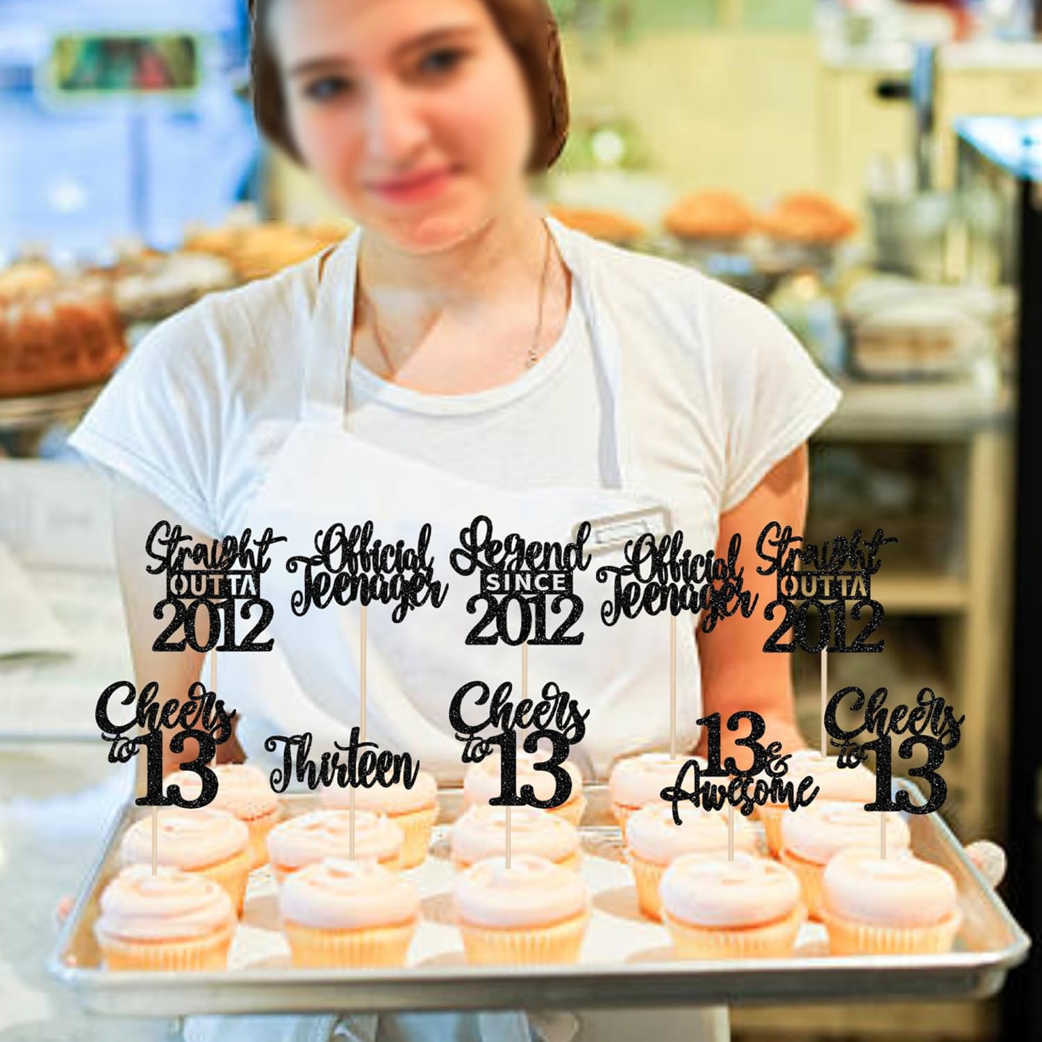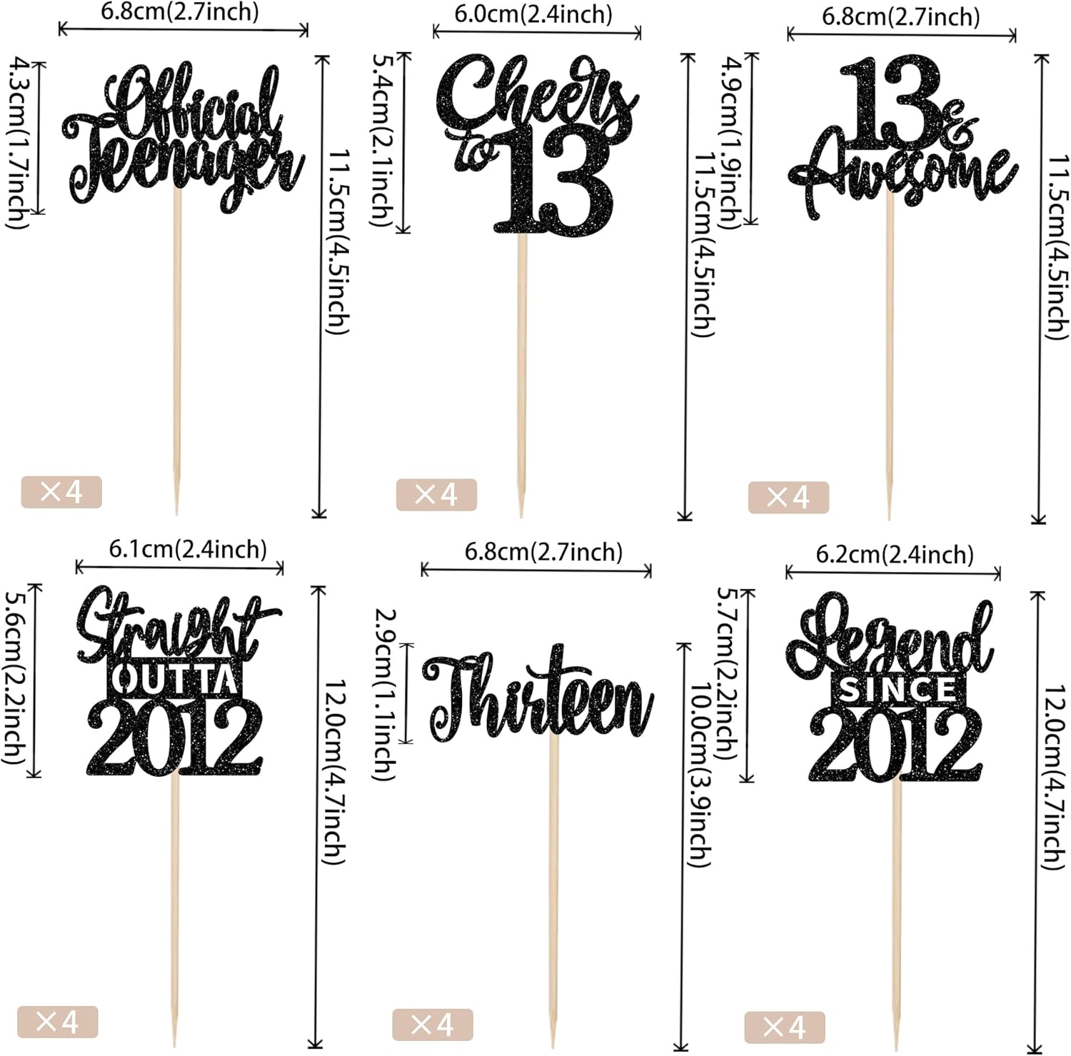 Materiale: I nostri toppers per cupcake usciti nel 2014 sono realizzati in cartone spesso lucido su un lato di alta qualità. Confezione: Contiene 24 toppers per cupcake, 6 disegni, 4 pezzi per ogni disegno. che possono soddisfare le diverse esigenze di decorazione, questi toppers cupcake sono preassemblati, puoi usarli direttamente quando li ricevi Dimensioni: la dimensione è 5 x 4,3 pollici / 2,4 x 4,3 pollici / 2,3 x 3,7 pollici / 2,3 x 4,3 pollici / 2 x 4,6 pollici (con bastoncino) Utilizzo: sono perfetti per le gite dirette, feste a tema 2012, 13° compleanno, anniversario di matrimonio, pensionamento, Topper per cupcake per feste a tema che rendono il cupcake più gustoso e attraente Suggerimenti: Questi toppers per cupcake non sono commestibili e sono solo a scopo decorativo, per favore non usarli nel forno o nel microonde