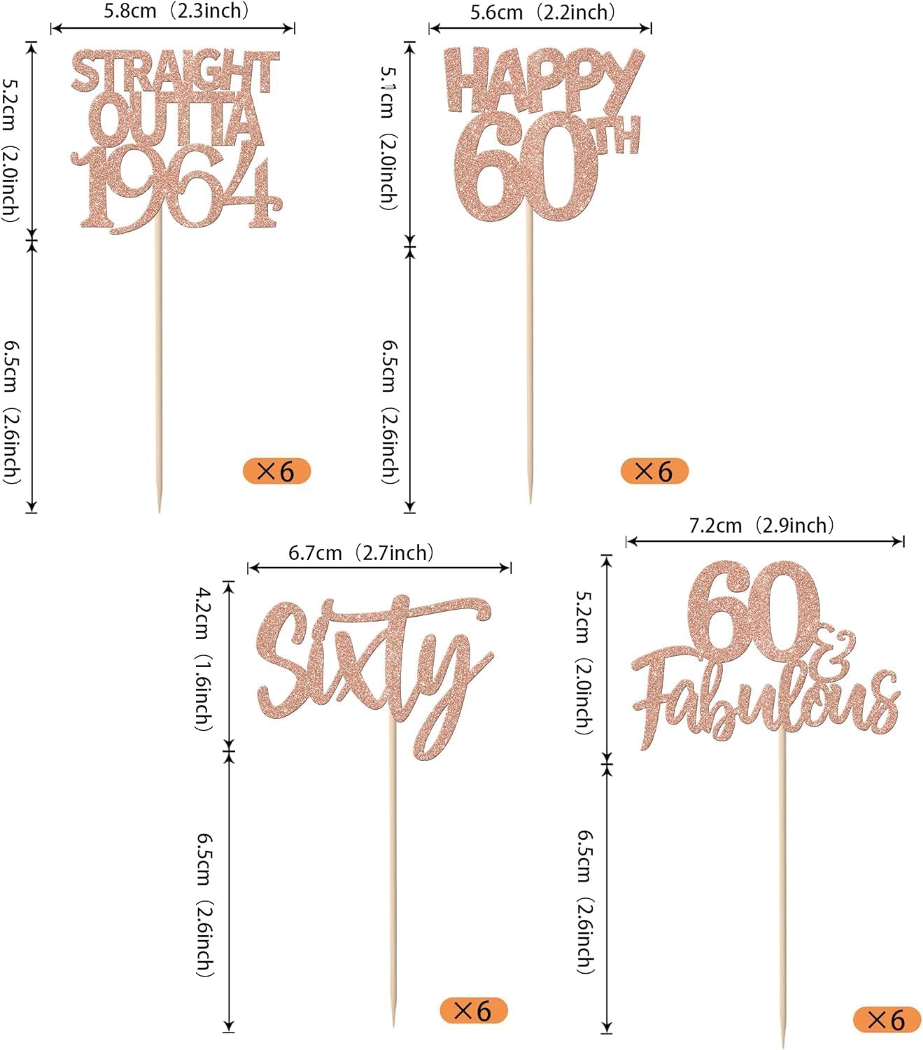 Materiale: i nostri toppers per torta sono realizzati in cartone glitterato su un lato spesso di alta qualità e bastoncino di bambù per uso alimentare, sono atossici, inodore e non facili da rompere, rendendoli sicuri e affidabili. Confezione: contiene 24 cake toppers. che può soddisfare le tue diverse esigenze di decorazione, questi toppers cupcake sono preassemblati, puoi usarli direttamente quando li ricevi. Dimensioni: La dimensione è 5,4 x 3,5 pollici / 1,7 x 4,2 pollici / 2 x 4,2 pollici / 2,7 x 4,2 / 1,2 x 3,9 pollici / 2 x 4,2 pollici (con bastoncino) Applicazione: Decorazione perfetta per cupcake, biscotti, torte, frutta, brownies, gelati e altro, particolarmente adatta per Straight Outta 1964 Prost at 60 Festa a tema compleanno festa a tema compleanno festa a tema compleanno Forniture per decorazioni per cupcake per feste a tema, feste a tema compleanno, feste a tema pensionamento. SUGGERIMENTI: La nostra massima priorità è la vostra soddisfazione. Se non sarai assolutamente entusiasta del prodotto, ti rimborseremo l'intero importo. Questi toppers per cupcake non sono commestibili e servono solo come decorazione. Si prega di non metterli nel forno o nel microonde.