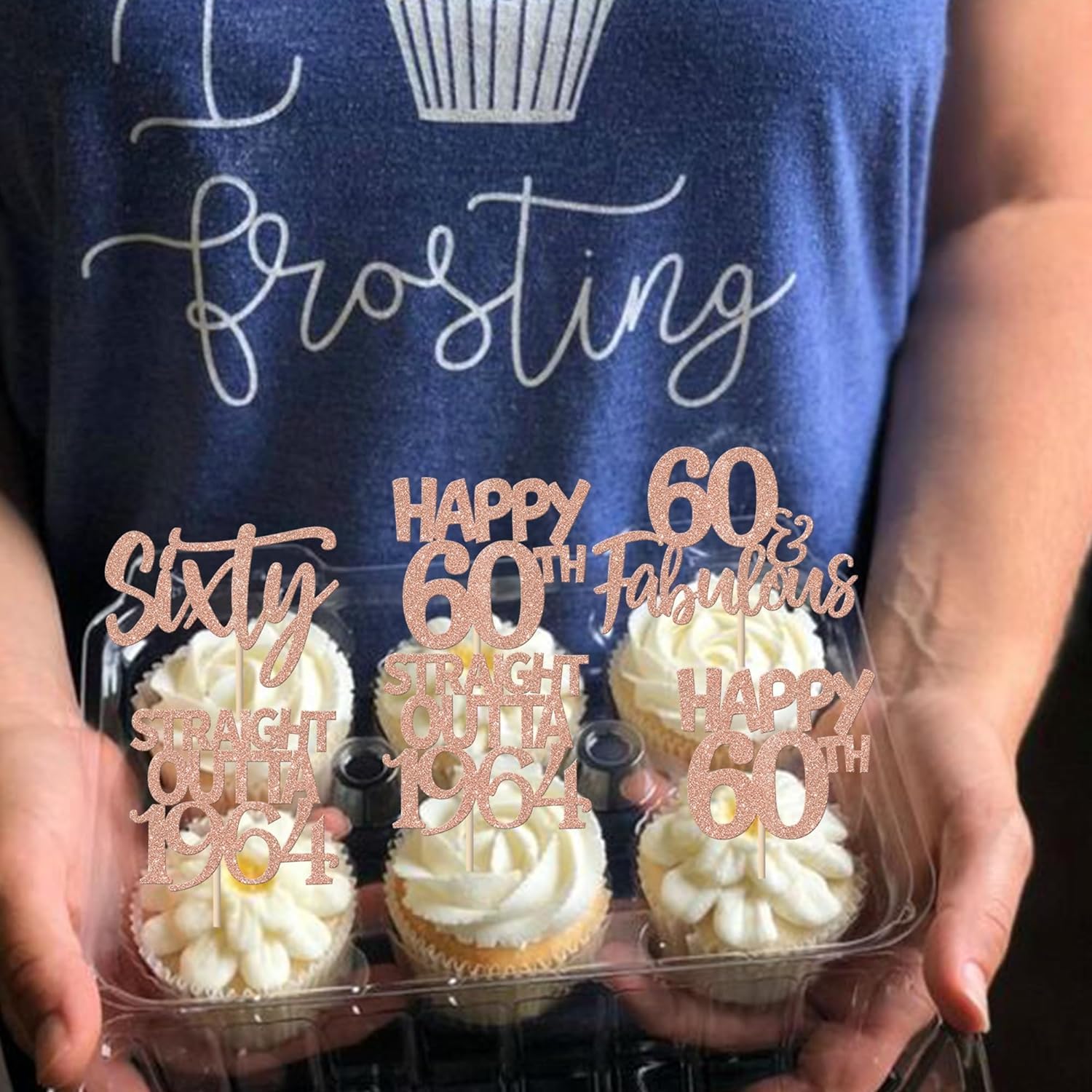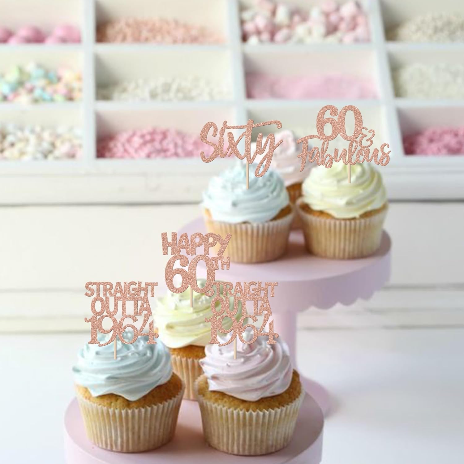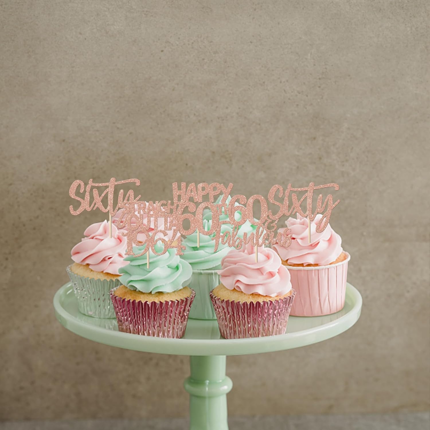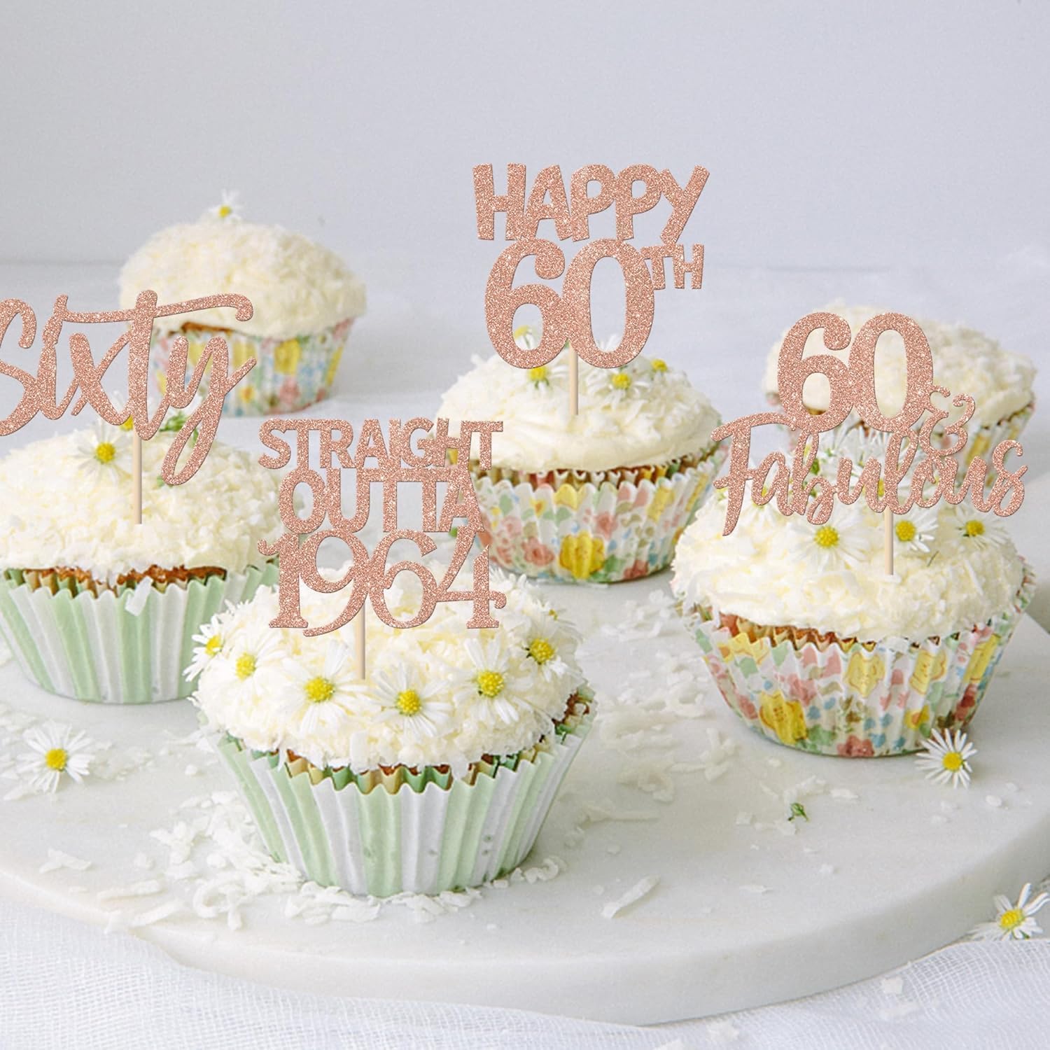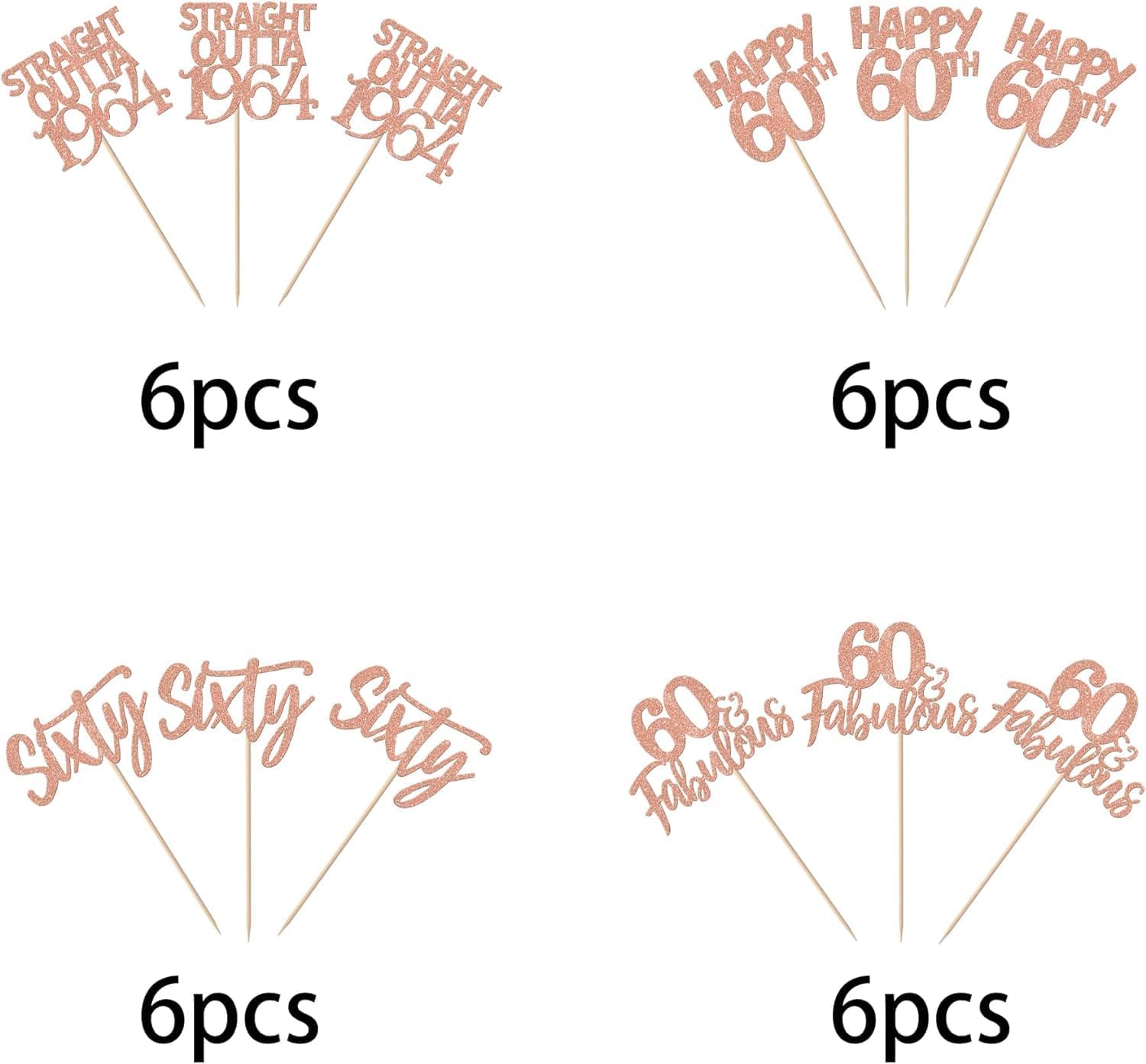 Confezione da 24 toppers per torta Happy 60th Outta 1964 Sixty Cupcake Toppers Fantastici dal 1964 Favolosi 60 toppers per torta per la festa del 60° compleanno Topper per torta in oro rosa