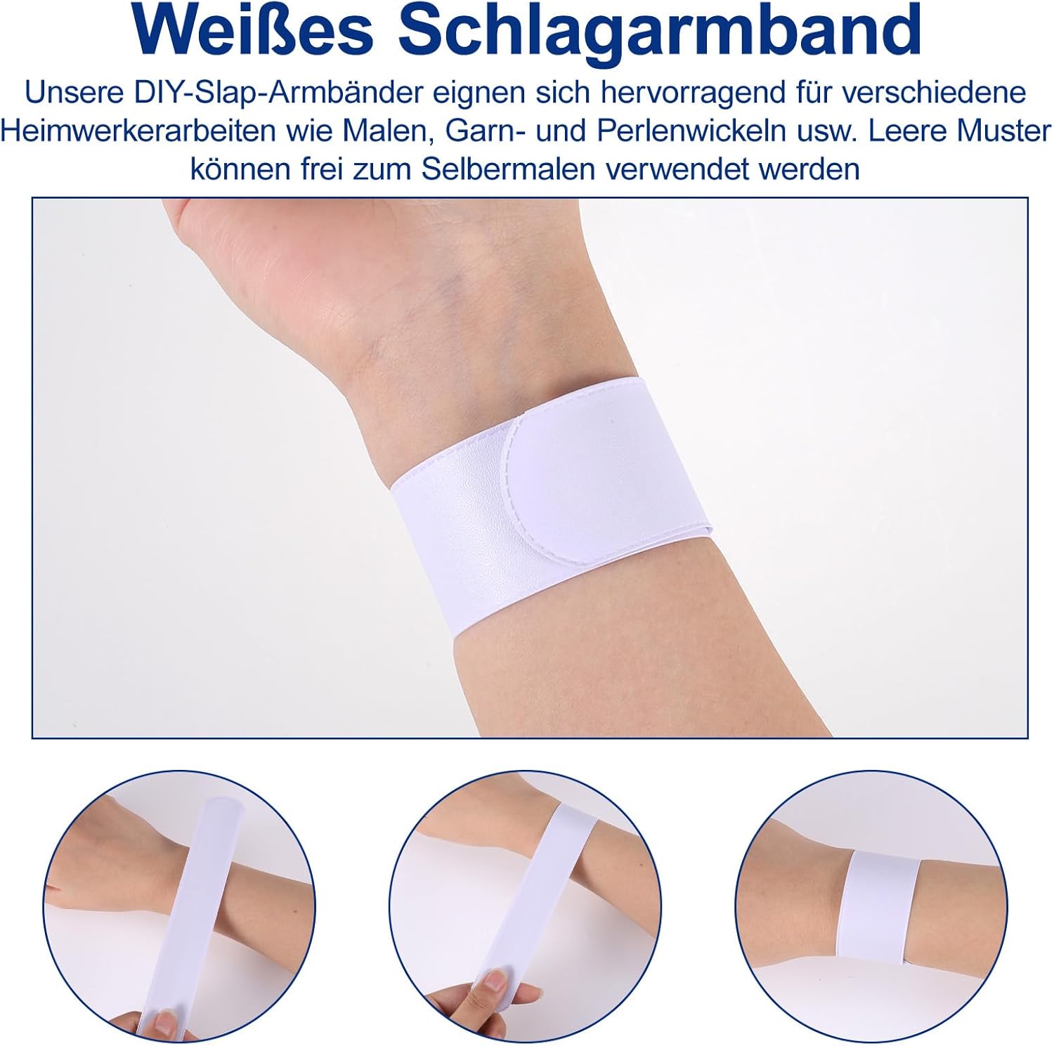 Die Armbänder wurden schnell geliefert. Sie sind weiß, können mit dem mitgelieferten Strasssteinchen verziert werden. Die Menge ist ausreichend, um die Armbänder zu gestalten. Sie schnappen leicht um das Handgelenk und tun, was sie sollen. An sich bin ich zufrieden, aber beim Auspacken gab es einen sehr unangenehmen Geruch nach Plastik. Deshalb bin ich nicht davon überzeugt, sie meinen Kindern zu geben.