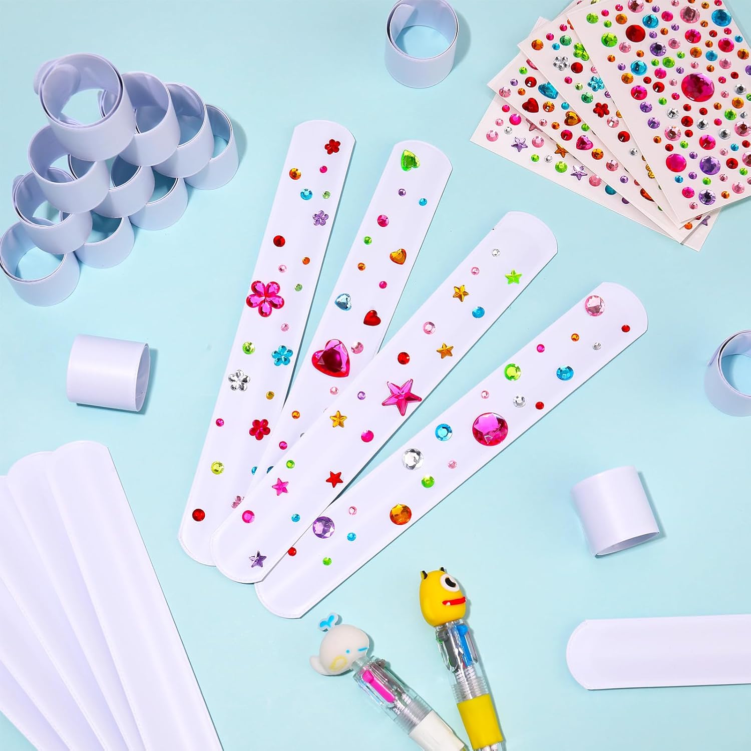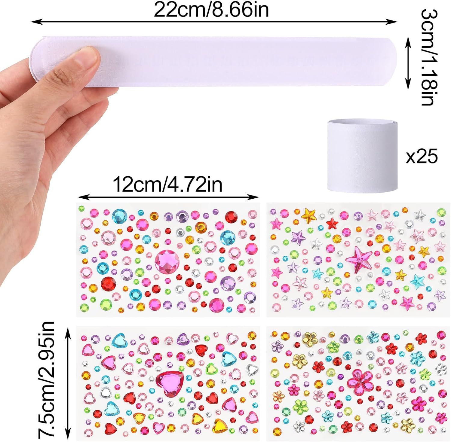 Confezione da 25 braccialetti a scatto set per bambini braccialetti a scatto fai da te con pietre glitterate, autoadesivi, 4 fogli di strass, braccialetti a schiaffo vuoti autoadesivi per ragazze e ragazzi per i compleanni dei bambini