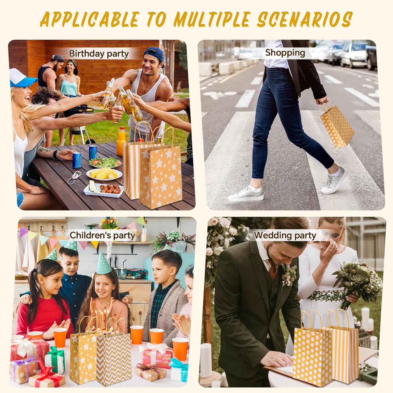 RISPETTOSO DELL'AMBIENTE E DUREVOLE: le borse kraft con manico sono realizzate in carta kraft ispessita di alta qualità, sono robuste e resistenti. È facilmente adatto per necessità quotidiane, regali, libri e altri oggetti. Il materiale ecologico corrisponde al moderno concetto di sviluppo sostenibile e può essere riutilizzato più volte. FANTASIA MARRONE: Il set contiene 25 sacchetti regalo in 5 fantasie e stili diversi, tutti nella stessa tonalità di marrone, uniforme ma non monotona. Il design è moderno e pratico allo stesso tempo ed è ideale per riporre la spesa quotidiana, i dolci natalizi, la frutta, i medicinali e altri piccoli oggetti. DESIGN UNICO: I sacchetti di carta misurano 22 × 16 × 8 cm e possono contenere libri A5, scatole regalo di pasticceria e altri oggetti senza essere troppo grandi e ingombranti. La base allargata fornisce ulteriore supporto e previene il collasso e la deformazione. La robusta maniglia è comoda da tenere in mano e non si inceppa. USI MULTIFUNZIONALI: Il nostro set di sacchetti di carta è adatto come sacchetti per feste, sacchetti regalo, sacchetti per feste, sacchetti per la spesa, sacchetti per la spesa, sacchetti da asporto e sacchetti per la spesa. 5 modelli diversi consentono un facile smistamento e utilizzo, adatti per confezionare chicchi di caffè, sapone fatto a mano, caramelle nuziali, regali di compleanno, ecc. SERVIZIO DI ALTA QUALITÀ: Apprezziamo il design innovativo e i materiali rispettosi dell'ambiente. Utilizziamo solo carta kraft resistente e di alta qualità e la combiniamo con un design unico. Quindi ogni borsa per le feste non è solo una confezione pratica, ma anche un regalo d'amore. Ci auguriamo che il destinatario li coccoli con calore e affetto.