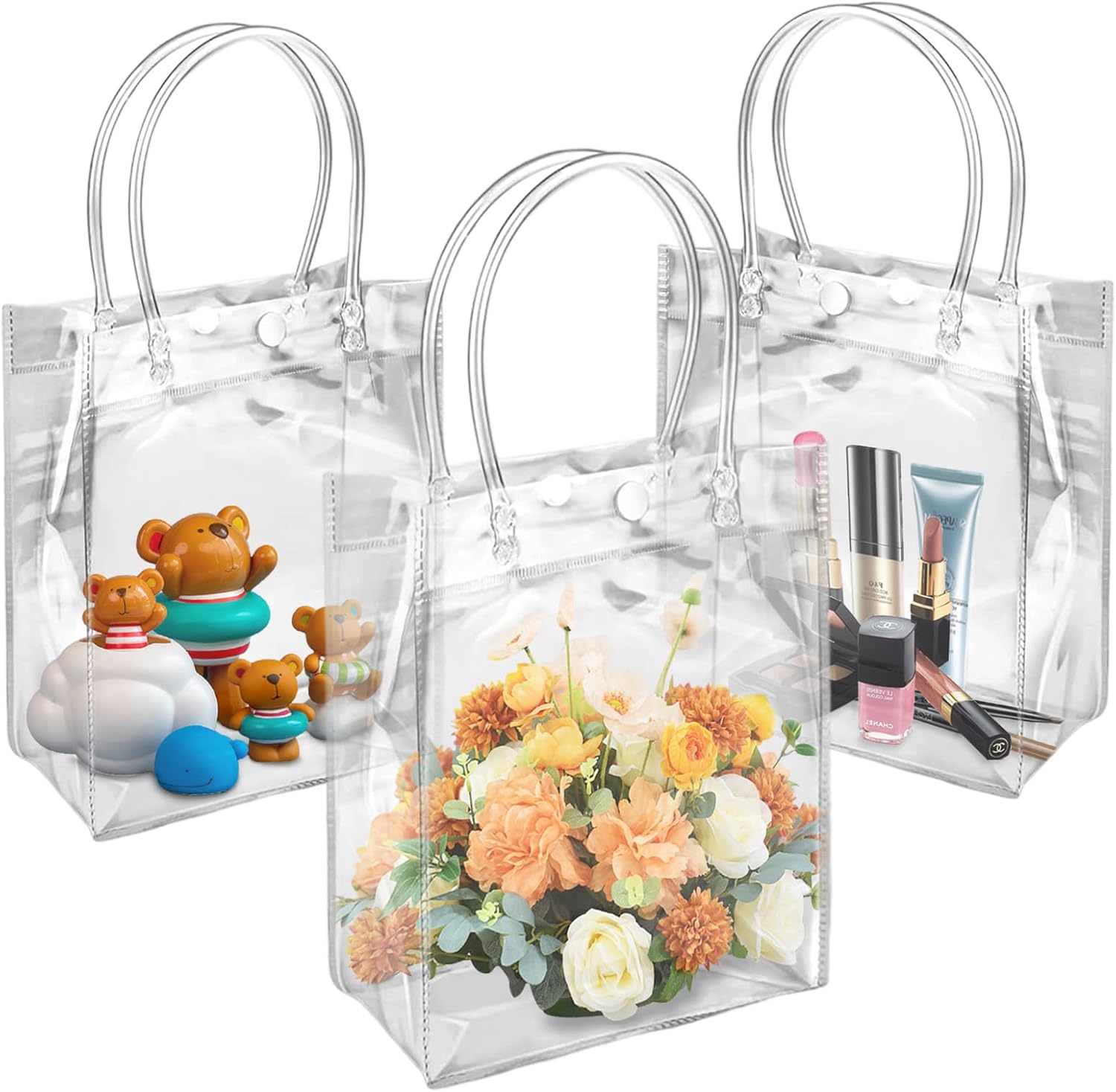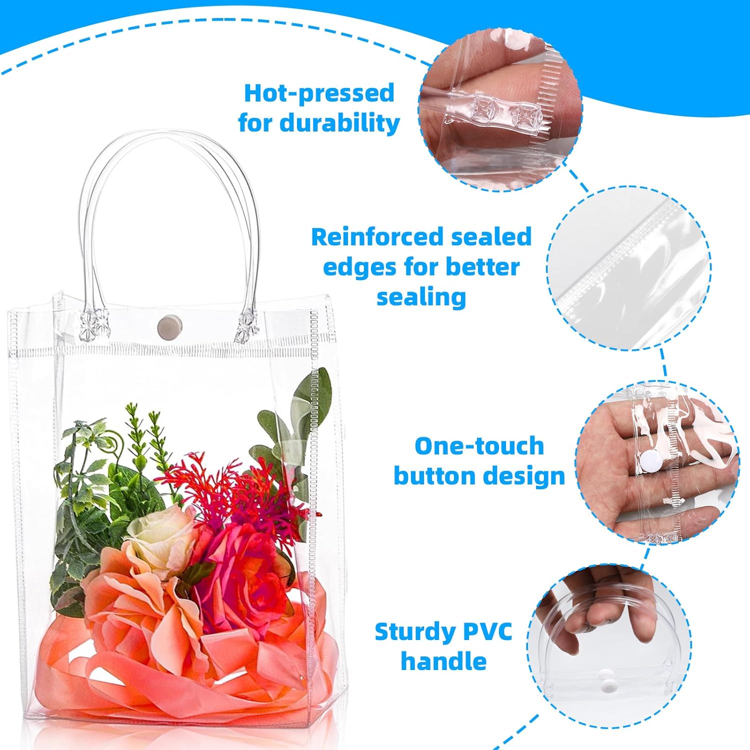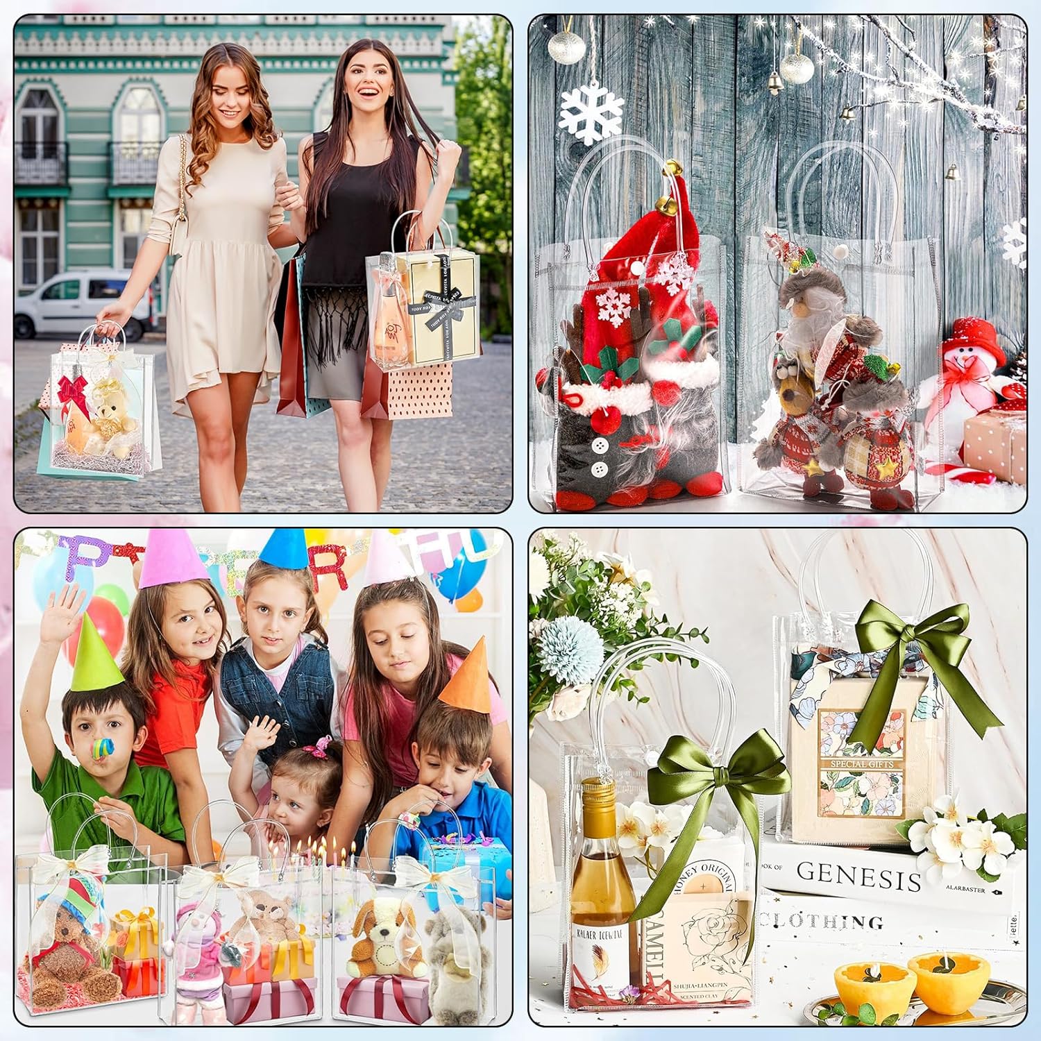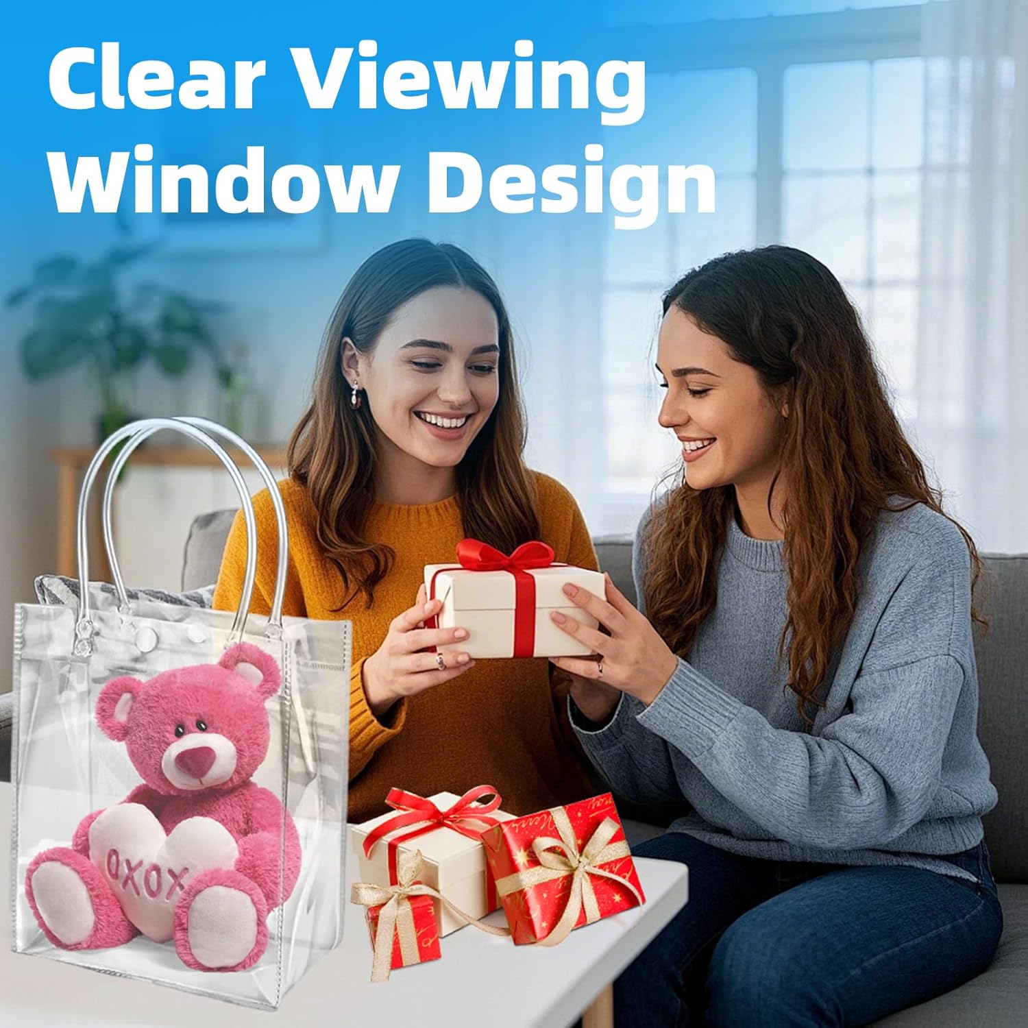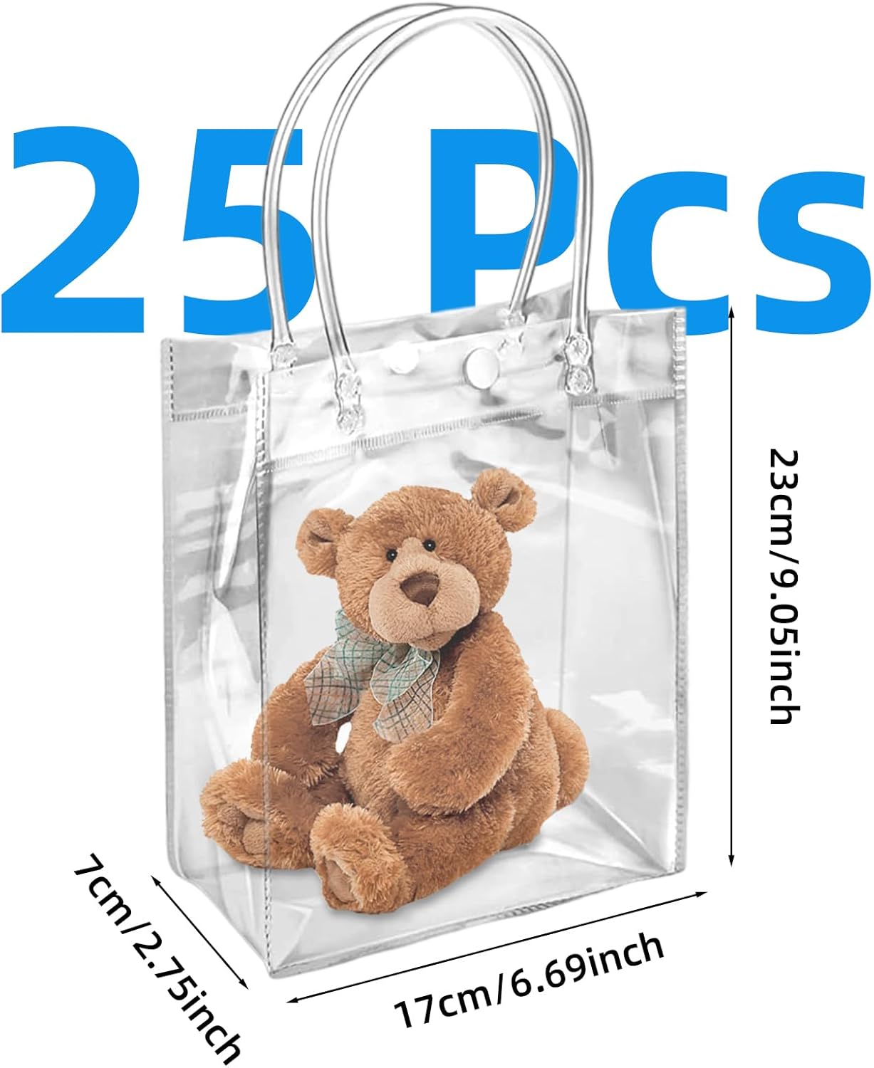 【Set pratico】 Il set contiene 25 sacchetti regalo trasparenti con manici, che misurano 23 x 17 x 7 cm. Offrono spazio sufficiente per regali di tutti i giorni, regalini per feste o regali promozionali - ideali per un uso versatile. 【Materiale di alta qualità】 La borsa trasparente è realizzata in robusto materiale PVC ispessito, idrorepellente, durevole e resistente agli strappi. È morbido al tatto, mantiene la sua forma e può essere riutilizzato più volte: sostenibile ed ecologico. 【Design chiaro con funzione】 Grazie al design completamente trasparente con un pratico pulsante, il contenuto è visibile a colpo d'occhio. Questi sacchetti regalo trasparenti mantengono il contenuto al sicuro all'interno e presentano i tuoi regali con stile ed eleganza. Facile da trasportare: ogni borsa è dotata di maniglie robuste e chiusura facile da aprire. I sacchetti regalo trasparenti sono leggeri e portatili, perfetti per l'uso quotidiano, i viaggi o lo shopping. 【Versatile】 Che si tratti di matrimoni, feste, vacanze, Natale, San Valentino o baby shower, i sacchetti regalo trasparenti riutilizzabili sono ideali per dolci, regali fai-da-te, cibo e molto altro ancora.