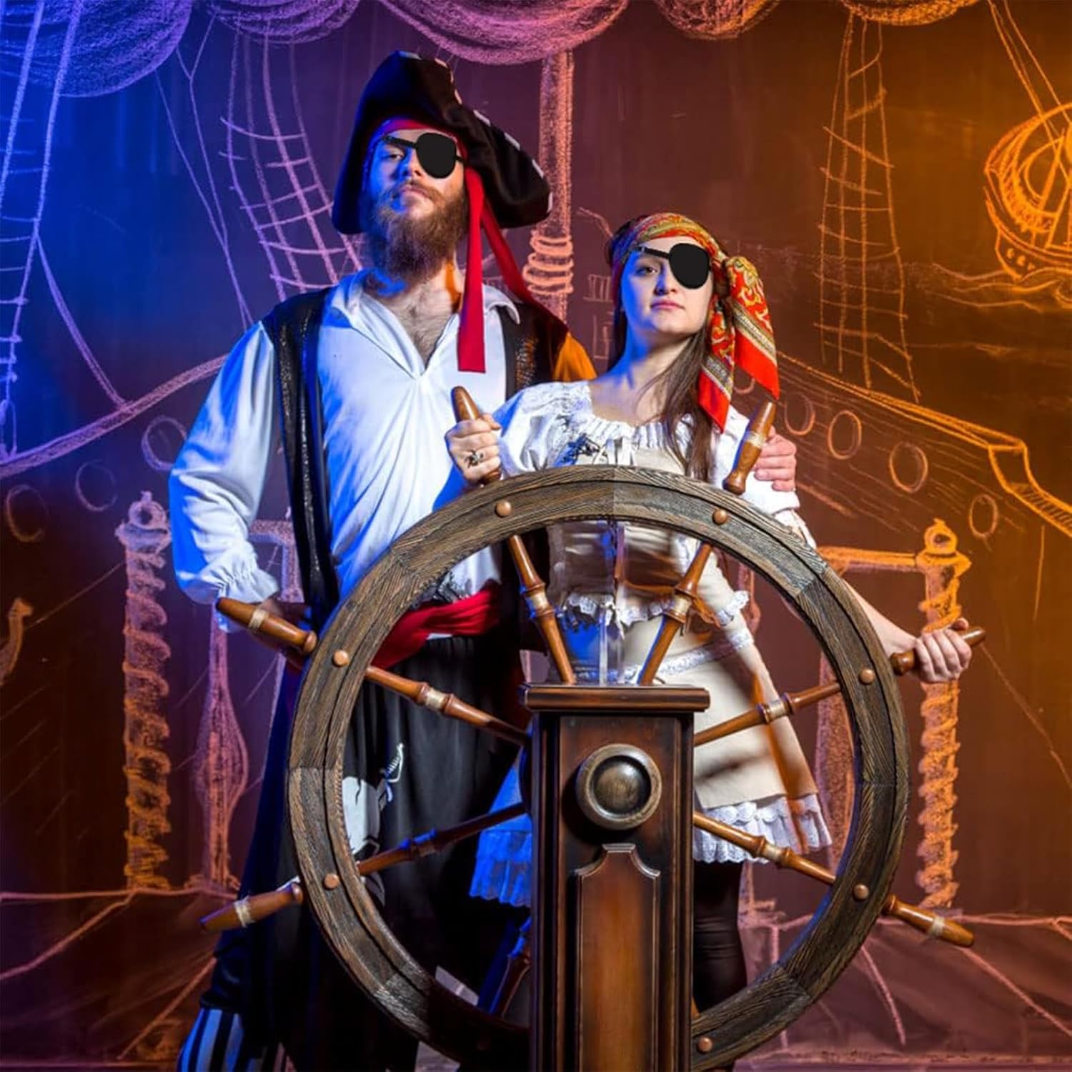 Caratteristiche del prodotto: Materiale di alta qualità: questa benda sull'occhio è realizzata in materiale morbido, traspirante e liscio, la bandana pirata è realizzata al 100% in poliestere, il tessuto è leggero, morbido e confortevole. Classico stile misterioso: la benda nera regolabile aggiunge un tocco di mistero e minaccia al tuo look, aggiungendo un'aria di intrigo e pericolo, e i singoli accessori pirata sono perfetti per mantenere intatta la tua mistica. ADATTO AD ADULTI E BAMBINI: Ideali per gli adulti che desiderano ravvivare i loro abiti o costumi da festa, questi accessori da pirata sono perfetti anche per i bambini da indossare durante Halloween o altri eventi a tema. I membri della famiglia possono divertirsi insieme a tema pirati. Goditi il divertimento di travestirti: questo set può essere facilmente incorporato in una varietà di scenari di travestimento e questo set di accessori ti permetterà di fare un grande ingresso come un vero capitano pirata e attirare l'attenzione di tutti. Occasioni applicabili: gli accessori per costumi da capitano pirata sono perfetti per feste a tema pirata, feste di Halloween, feste in maschera, carnevali, spettacoli culturali, feste di compleanno e altre occasioni. Crea un'atmosfera gioiosa e ricordi indimenticabili. Scenari di utilizzo Confezione da 3 accessori per costume da capitano pirata, bandana medievale rinascimentale per adulti e bambini per Halloween