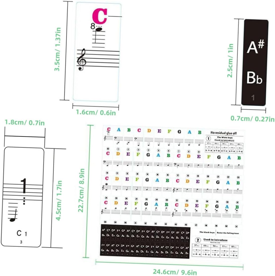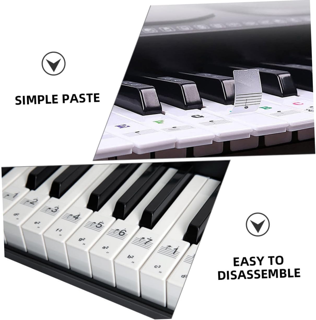 Adesivi per pianoforte rimovibili per tasti per - Gli adesivi colorati non solo aggiungono un elemento divertente alla tua pratica, ma ti aiutano anche a ricordare la posizione di ogni nota. Etichette rimovibili per le note del pianoforte Etichette per le note della tastiera del pianoforte - Con questi adesivi puoi migliorare rapidamente le tue capacità di suonare e diventare più sicuro. Accessori per tastiere per pianoforte Adesivi per tastiera - compatibili con una varietà di tastiere elettroniche, sono adatti a diversi modelli, adesivi per spartiti per tastiera Adesivi per tastiera per pianoforte: il design unico della notazione e degli spartiti rende l'apprendimento del pianoforte un gioco da ragazzi Spartiti e design della notazione integrati: combina gli spartiti tradizionali con la notazione, rendendo più facile per gli utenti l'apprendimento del pianoforte