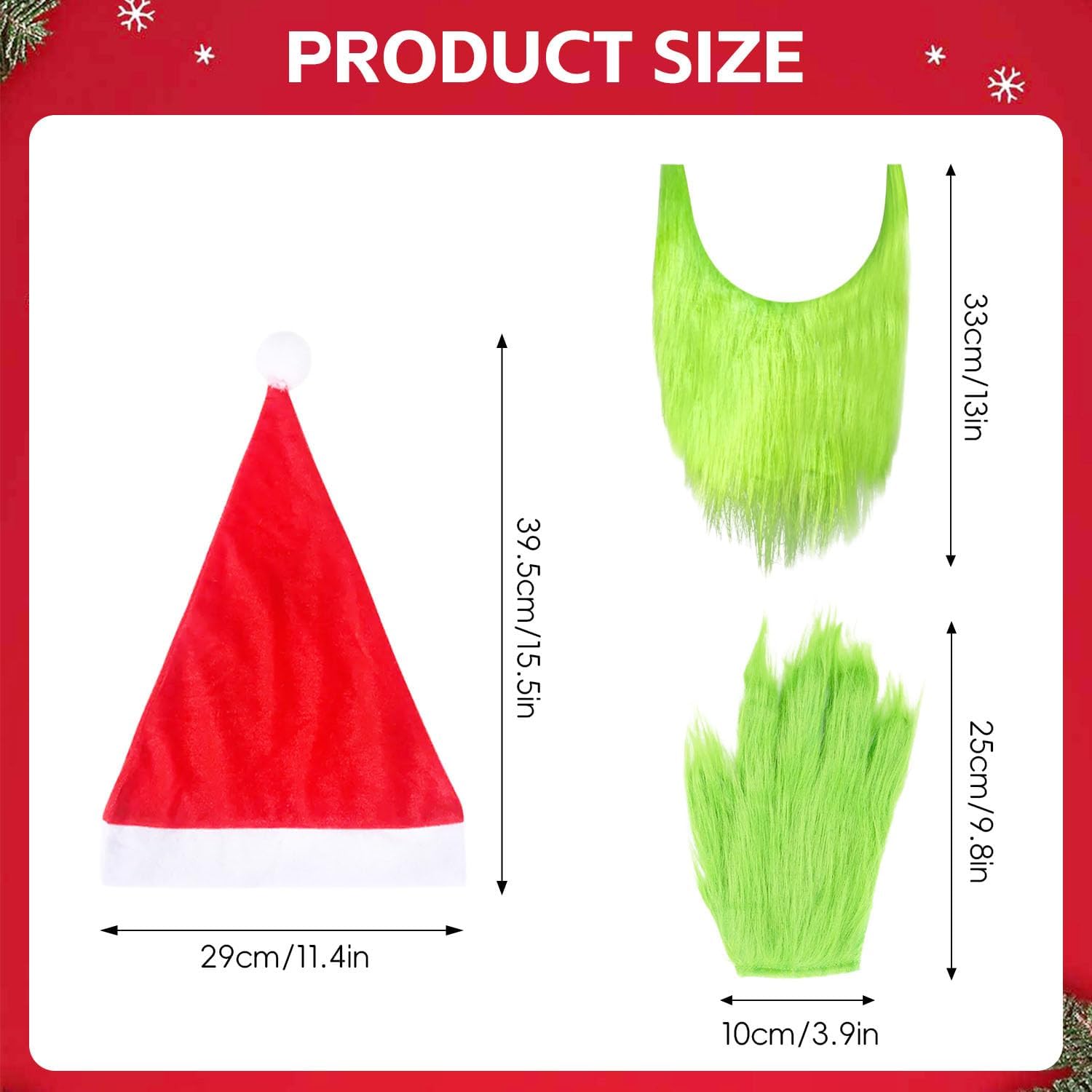 Confezione da 3 cappelli da Babbo Natale con barba verde e guanti di pelliccia verde per uomo, costume di Natale per adulto, oggetti di scena per cosplay, oggetti di scena per feste, accessori per costumi in maschera