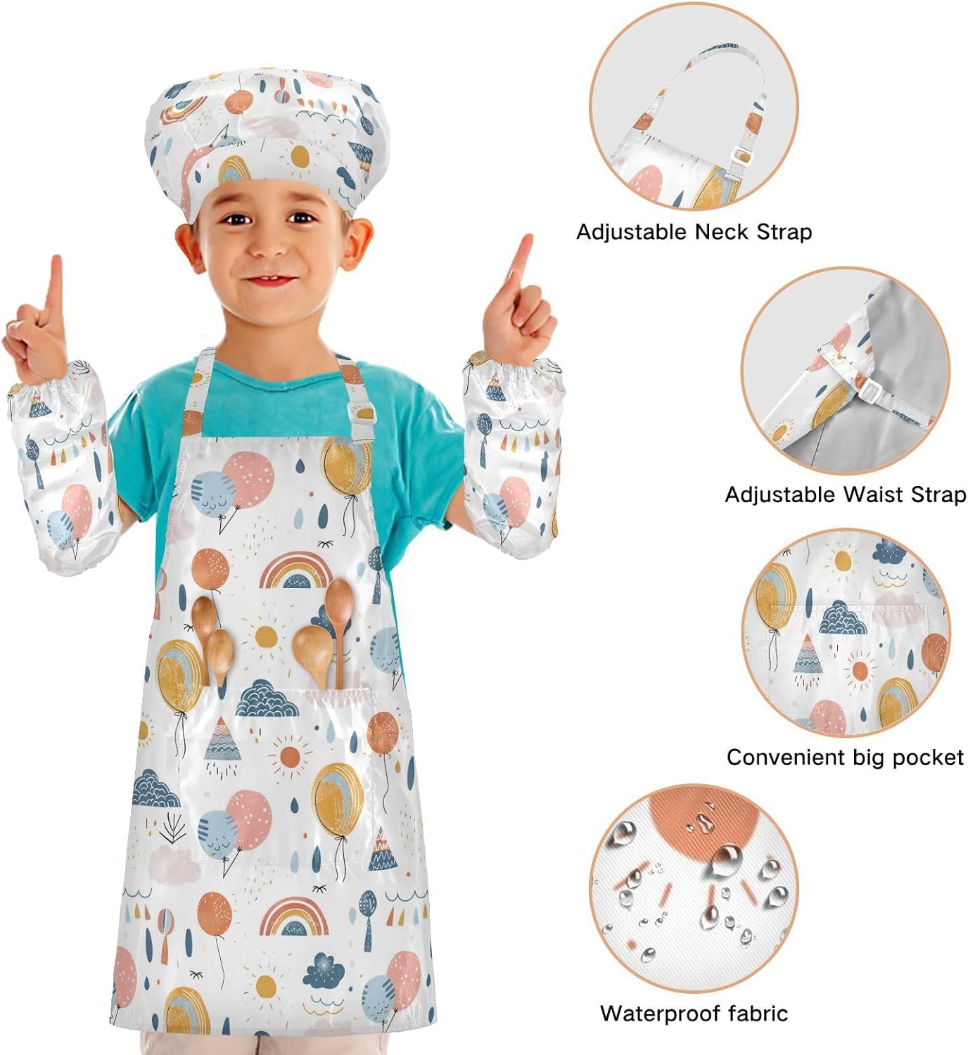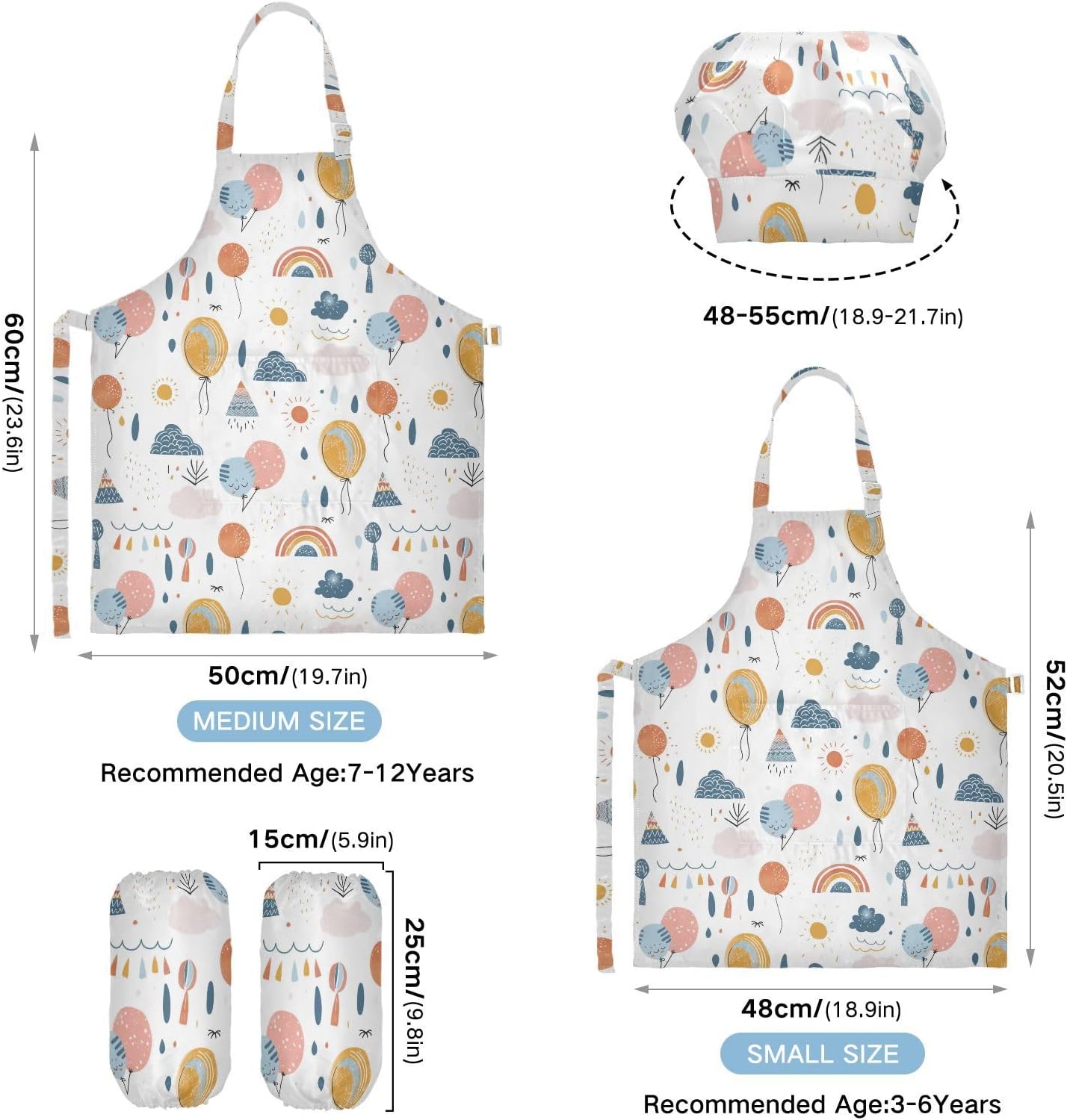 Dimensioni consigliate: S: 48 x 52 cm (età 3-6 anni). M: 50 x 59,7 cm (7-12 anni). La taglia può adattarsi alla maggior parte dei ragazzi e delle ragazze. Si prega di scegliere la taglia giusta in base alle dimensioni specifiche. Materiale di alta qualità: il grembiule per bambini è realizzato in poliestere, comodo, elegante, leggero e regolabile, impermeabile, facile da pulire. Impermeabile Caratteristica: Realizzato in poliestere, il set da cucina per bambini da 3 pezzi è impermeabile. I bambini possono sentirsi liberi di imparare a cucinare e dipingere come preferiscono e possono mantenere i loro vestiti puliti allo stesso tempo. Multiuso: il set da chef per bambini non può essere indossato per pittura, cucina, giardinaggio, lavaggio dei piatti, feste, arte, artigianato e attività scolastiche, ma anche per Natale, Ringraziamento, Halloween, San Patrizio, Capodanno, festa dei bambini, festival, vacanze, cene, compleanni e riunioni di famiglia. Contenuto della confezione: un grembiule impermeabile, un cappello da chef e due maniche. L'adorabile costume da chef per bambini da 3 pezzi può incoraggiarli a sviluppare le loro abilità di cucina, pittura, cottura, giardinaggio o altre abilità.