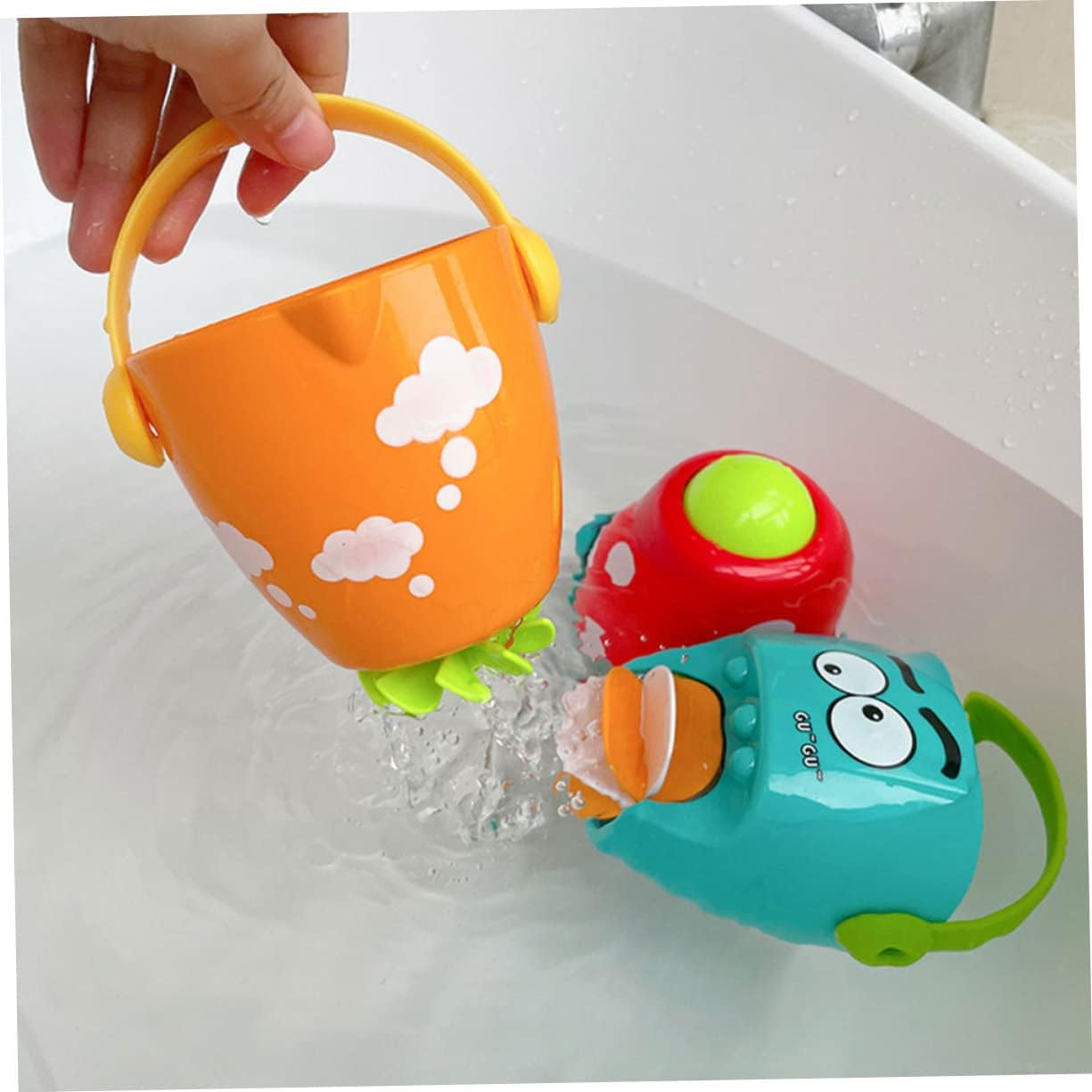 Giochi d'acqua per i più piccoli: lascia che si diverta e risolva efficacemente l'avversione del bambino alla doccia. Giocattolo con secchiello spruzzatore Divertente giocattolo con secchiello spruzzatore: dopo che il secchio viene utilizzato per prendere l'acqua, il flusso d'acqua fa ruotare il rullo sul fondo, creando un fenomeno interessante. Giocattolo da bagno a forma di secchio Per il bagnetto - con un design affascinante, questi giocattoli da bagno ti permettono di goderti il fascino di, giocattolo da bagno acquatico - adatto a ragazzi e ragazze, le mani piccole sono facili da catturare, giocattolo spray da bagno con irrigatore da bagno - senza bordi, non danneggerà il tuo bambino, la dimensione è moderata ed è facile da controllare, secchio giocattolo da bagno