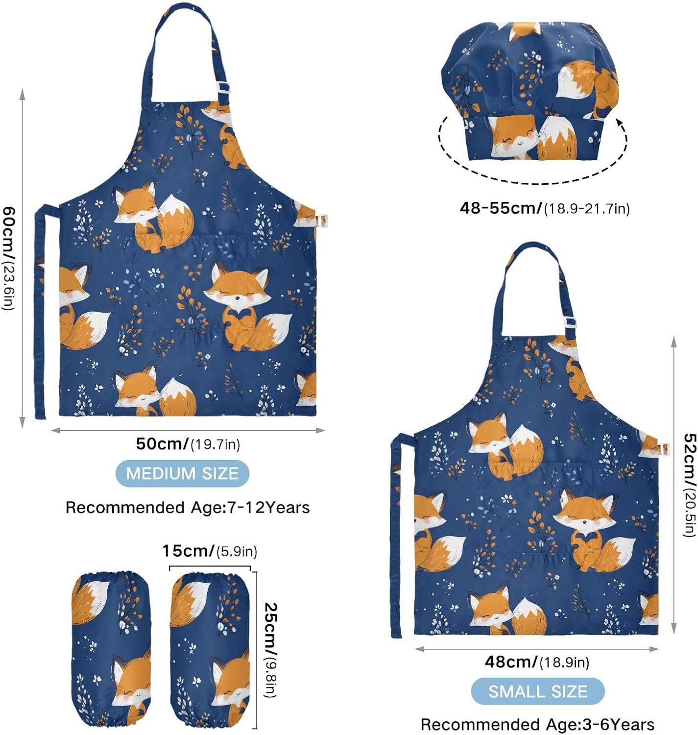 Dimensioni consigliate: S: 48 x 52 cm (età 3-6 anni). M: 50 x 59,7 cm (7-12 anni). La taglia può adattarsi alla maggior parte dei ragazzi e delle ragazze. Si prega di scegliere la taglia giusta in base alle dimensioni specifiche. Materiale di alta qualità: il grembiule per bambini è realizzato in poliestere, comodo, elegante, leggero e regolabile, impermeabile, facile da pulire. Cinghia regolabile: i grembiuli per bambini con collo regolabile e cinturino in vita possono fornire ai bambini una buona esperienza di utilizzo. Non devi preoccuparti se il set di grembiule per bambini con cappello da chef si adatta o non più. Applicazioni versatili: ideale per i bambini per proteggere i vestiti durante la cottura, il giardinaggio, la cottura, il gioco, la produzione di caramelle, la cottura di torte, tele, arti e mestieri, lezioni in classe, faccende domestiche. Può anche essere una grande decorazione per costumi di Halloween, oggetti di scena teatrali, feste di compleanno, eventi carini, feste a tema, riunioni di famiglia e molto altro ancora. Contenuto della confezione: un grembiule impermeabile, un cappello da chef e due maniche. L'adorabile set da cucina per bambini da 3 pezzi può incoraggiarli a sviluppare le loro abilità di cucina, pittura, cottura, giardinaggio o altre abilità.