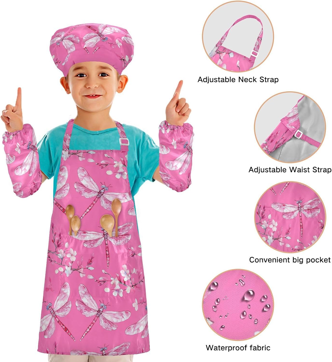 Dimensioni e articolo include: S: 18,9 x 20,5 L per bambini dai 3 ai 6 anni. M: 19,7 W x 23,5 L per età 7-12 anni. Il grembiule da cucina per bambini include 1 grembiule leggero, 1 cappello da chef e 2 maniche. Il set da chef per bambini può dare ai bambini una buona esperienza di utilizzo per cucinare o dipingere come fornelli o pittori professionisti. Materiale di alta qualità: il cappello da chef per bambini è realizzato in poliestere, comodo, elegante, leggero e regolabile, impermeabile, facile da pulire. Cinghia regolabile: il cappello da chef per bambini con collo regolabile e cinturino in vita può fornire ai bambini una buona esperienza di utilizzo. Non devi preoccuparti se il set da cucina per bambini da 3 pezzi si adatta a loro o non più. Applicazioni versatili: ideale per i bambini per proteggere i vestiti durante la cottura, il giardinaggio, la cottura, il gioco, la produzione di caramelle, la cottura di torte, tele, arti e mestieri, lezioni in classe, faccende domestiche. Può anche essere una grande decorazione per costumi di Halloween, oggetti di scena teatrali, feste di compleanno, eventi carini, feste a tema, riunioni di famiglia e molto altro ancora. Istruzioni di lavaggio: lavabile in lavatrice e a mano. Non candeggiare, lavare a secco e asciugare in asciugatrice.