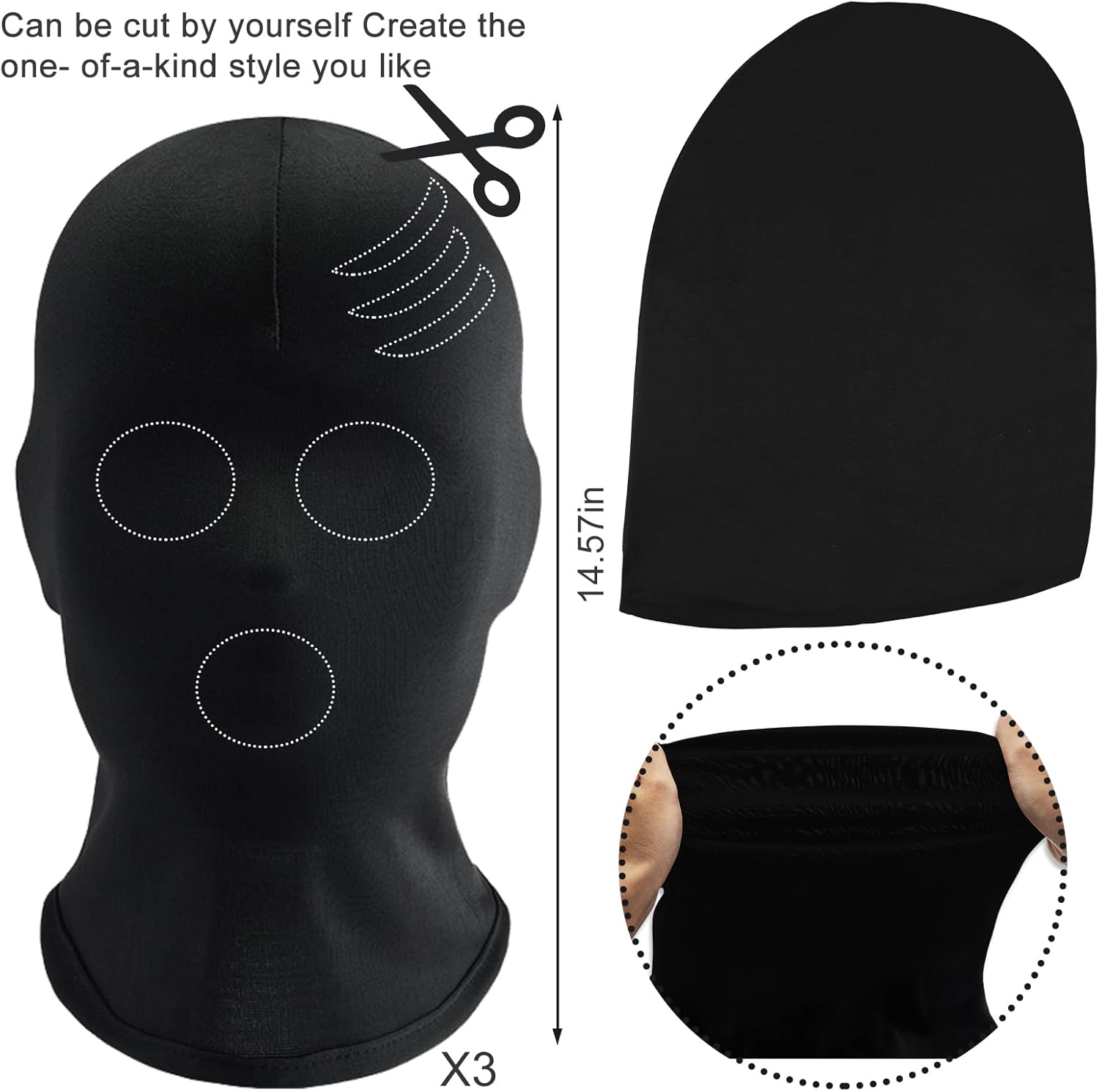 Ideal to wear under the latex skeleton mask, but I did need to cut holes for my eyes & mouth. Only 1 used, so 2 spare for future use.