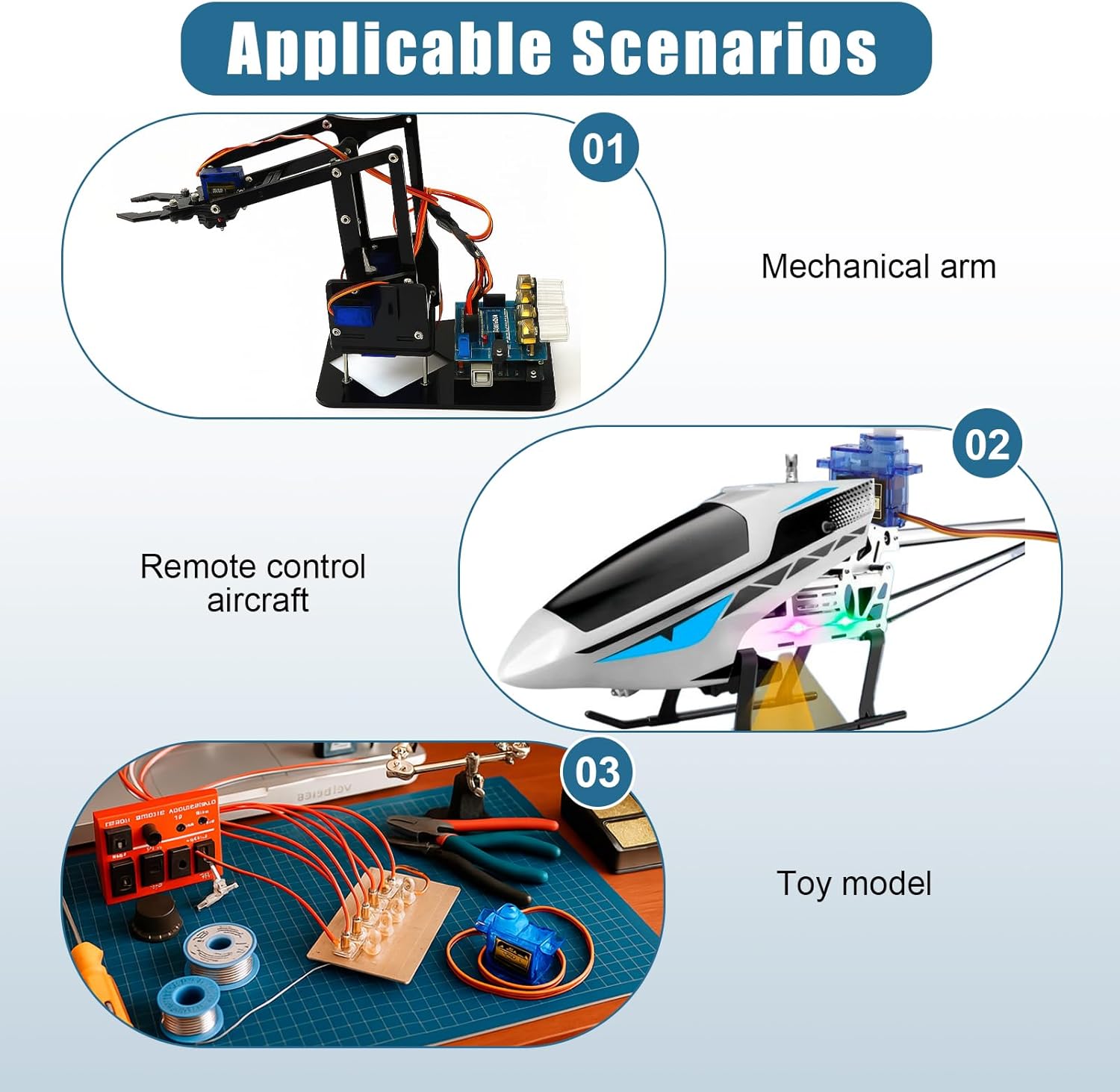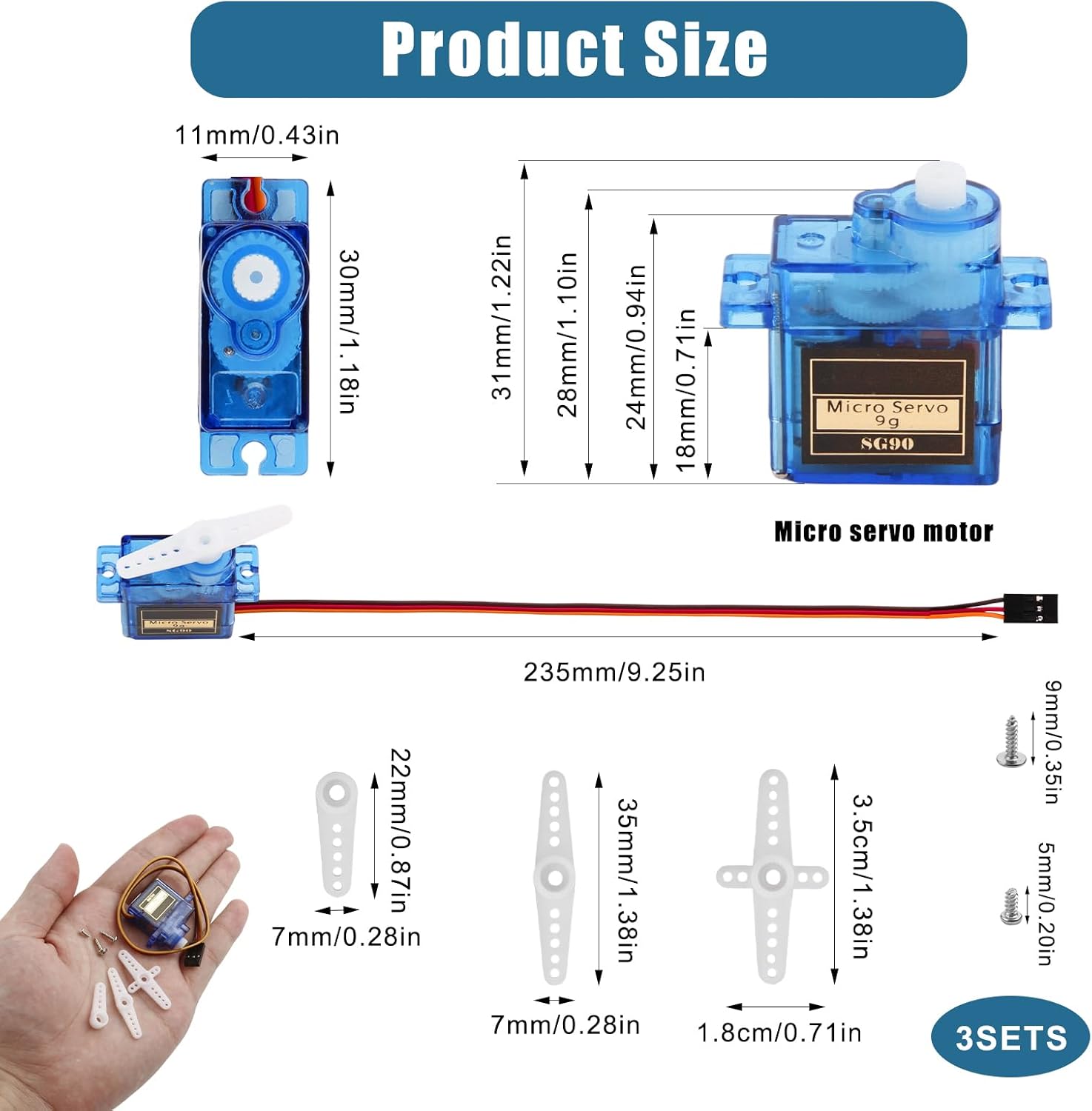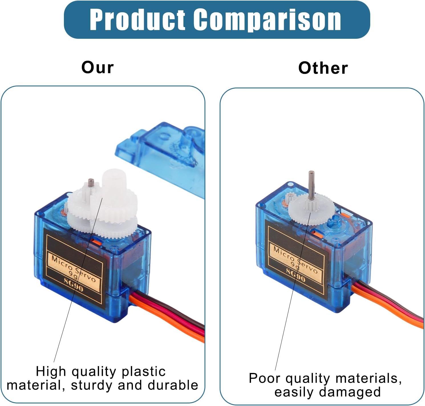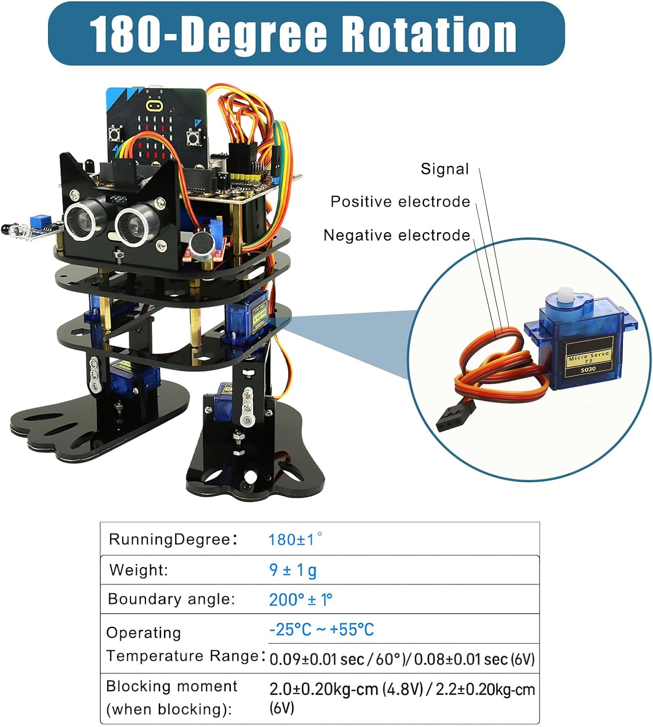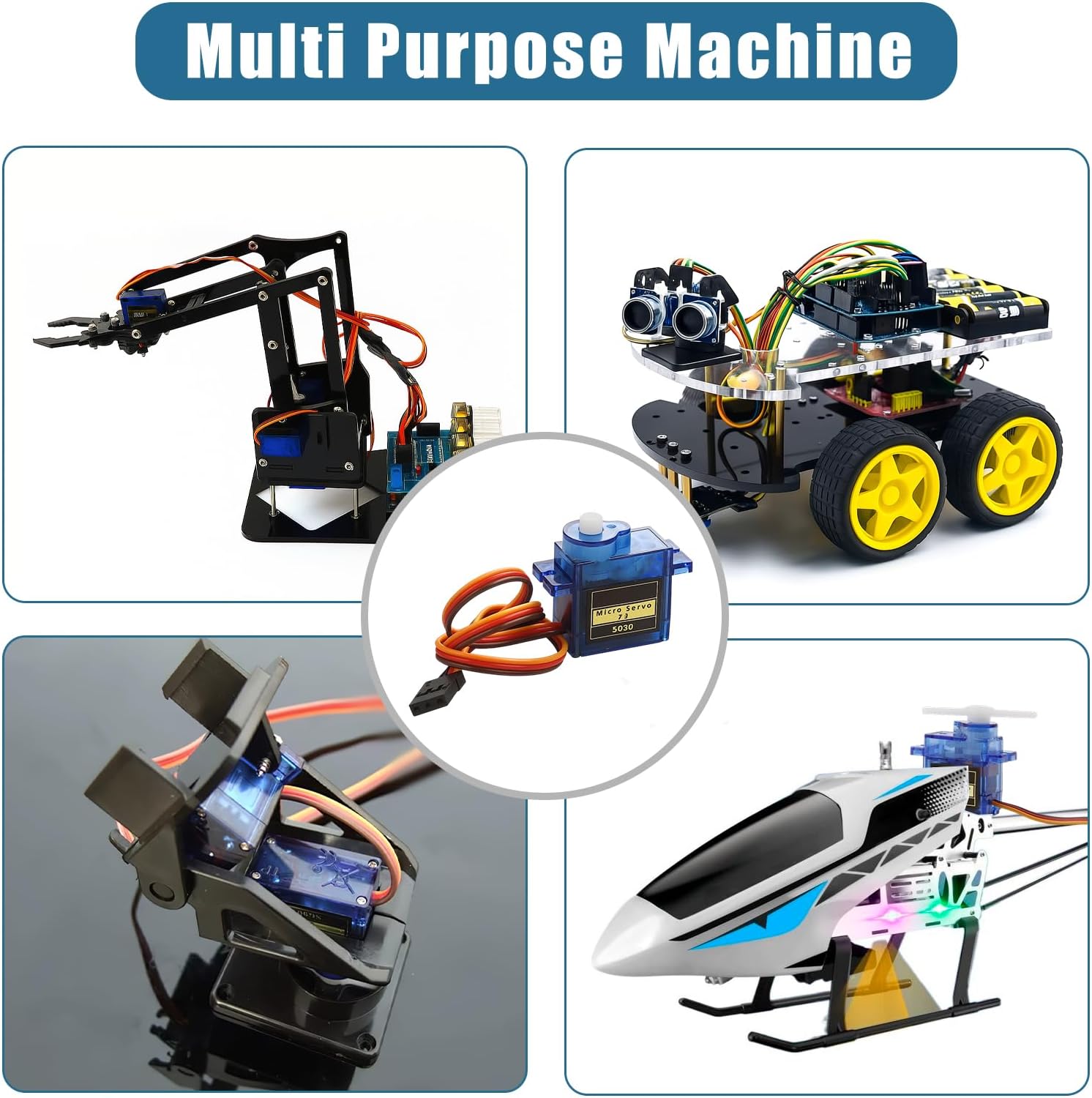 [Costruzione Robusta]: Il micro servomotore è dotato di ingranaggi in metallo di alta qualità che garantiscono prestazioni durature e affidabili in tutte le applicazioni. Questo mini servo è ideale per progetti RC impegnativi e micro robot. [Dimensioni Compatte]: Con le dimensioni del servo SG90 di 23 mm x 12,2 mm x 29 mm (L x P x A) e un peso di soli 14 g per servo, questo mini motore è perfetto per applicazioni salvaspazio nel modellismo e nell'elettronica fai da te. [Applicazione versatile]: questo servo analogico con angolo di controllo di 180° è ideale per giocattoli RC, bracci robotici e progetti fai da te che utilizzano Arduino o Raspberry Pi. Perfetto per hobbisti creativi e appassionati di tecnologia. [Prestazioni ottimali]: l'intervallo di tensione di esercizio da 4,2 V a 6,0 V garantisce un'elevata efficienza. Con una velocità di esercizio di 0,09 sec/60° a 4,2 V e 0,08 sec/60° a 6 V, offre tempi di risposta rapidi. [Integrazione semplice]: il cavo di collegamento lungo 250 mm consente un'installazione semplice in vari modelli. Inoltre, la banda morta di 8 µs può essere regolata in modo ottimale per garantire movimenti precisi.