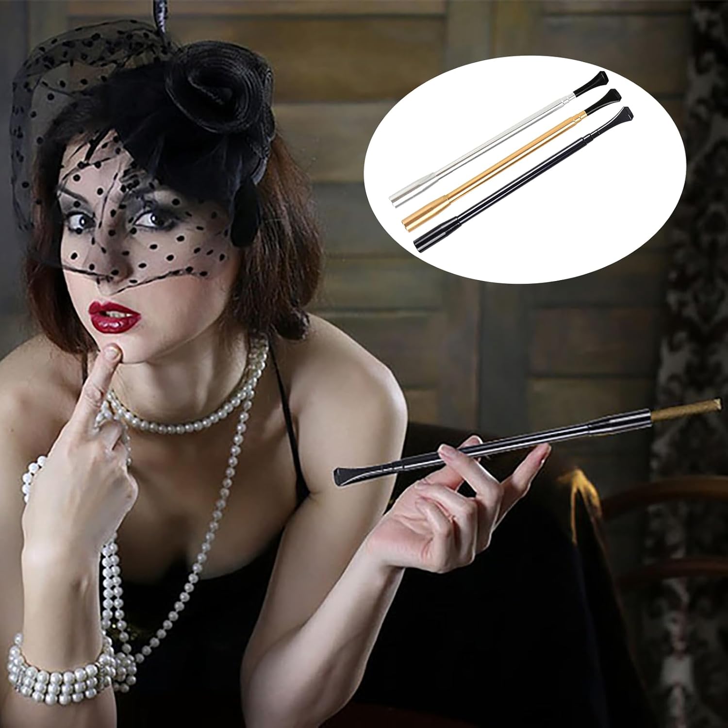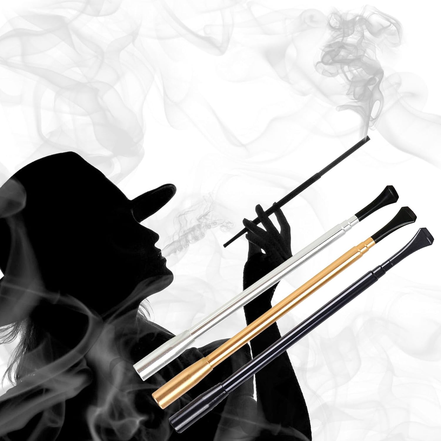 Bocchino per sigaretta retrattile: prolunga per bocchino per sigaretta in metallo, adatta per feste rave. La dimensione retrattile del bocchino per sigaretta è 17-35 cm, diametro interno 8 mm, nero, oro, argento. Pipa per sigaretta vintage: pipa retrattile dal design elegante, questo è un ottimo regalo per le persone che amano la bellezza, la moda e l'alta qualità, rendendo omaggio alle donne alla moda dell'era vintage. Applicazione: perfetta per Halloween, Natale, Ringraziamento, oggetti di scena per cosplay, oggetti di scena per maschere, ecc. Boccaglio per sigaretta lungo: bocchino per sigaretta lungo stile anni '20, bocchino per sigaretta vintage è un ottimo accessorio che si abbina ai tuoi vestiti. Materiale per la bocca della sigaretta: il bocchino per sigaretta vintage è realizzato in metallo alluminio, durevole, riutilizzabile ed ecologico, la lunghezza del bocchino retrattile può essere regolata secondo i vostri desideri.
