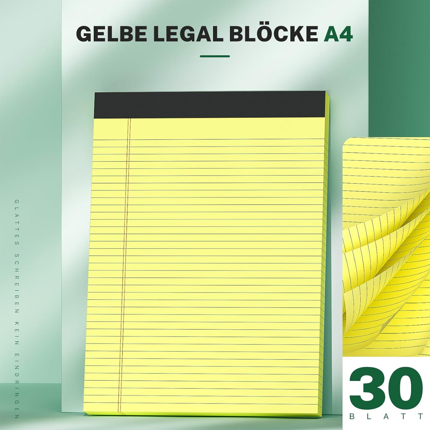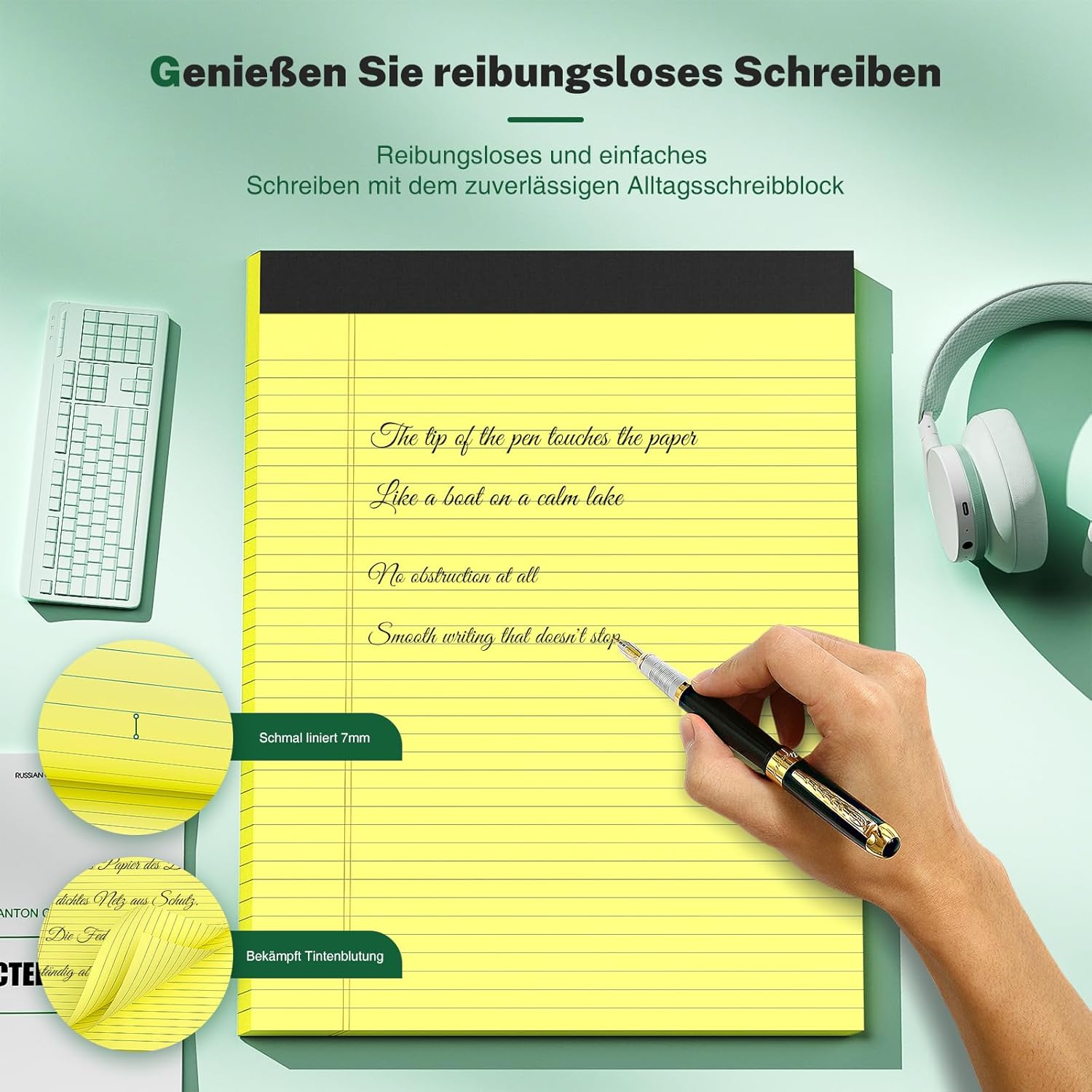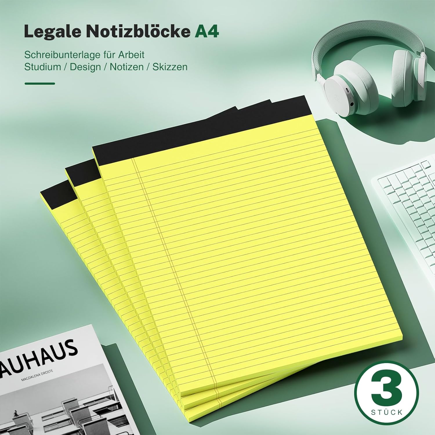 Carta premium: il blocco note giallo A4 è realizzato con carta di alta qualità che impedisce all'inchiostro di penetrare tra le pagine, facile da scrivere o disegnare, la penna neutra e la penna a sfera scrivono in modo fluido e senza sforzo sul blocco note. Il blocco note A4 a righe presenta un retro in cartone per un ulteriore supporto durante la scrittura o la scrittura, i blocchi note A4 sono perfetti per scrivere in movimento. Blocco note perforato: il blocco note A4 perforato consente di rimuovere i singoli fogli in modo semplice e pulito. Anche in situazioni irregolari, non si strapperà. Per poter conservare facilmente gli appunti che desideri e separare quelli che non vuoi, sia per lavoro, scuola o uso personale, questi fogli A4 a righe ti semplificheranno la vita. Perfetto per appunti aziendali quotidiani e cose da fare. Scrittura e lettura più facili: il blocco note A4 a righe strette da 7 mm (9/32") è ideale per elenchi, scuola e lavoro, i blocchi note A4 gialli sono meno stancanti per i tuoi occhi, sono comodi da usare e non danno fastidio. Questo blocco note A4 è un ottimo strumento per studenti, acquirenti e dirigenti per prendere appunti. Ti aiutano a catturare i tuoi pensieri casuali e i momenti speciali in modo da non dimenticare più le cose. Dimensioni e quantità: Ogni confezione di blocchi note legali A4 viene fornita con 3 blocchi di colore giallo carta, misurano 21,59 cm x 29,84 cm.. Ogni blocco note A4 giallo contiene 30 fogli da 60 pagine, per un totale di 180 pagine, offrendoti molto spazio per catturare i tuoi pensieri e idee. Puoi utilizzare il sottile blocco note A4 in carta gialla crea ricordi e registra fatture importanti, telefonate e altre cose. È perfetto per persone diverse con professioni, attività e lavori diversi per affrontare il lavoro quotidiano.