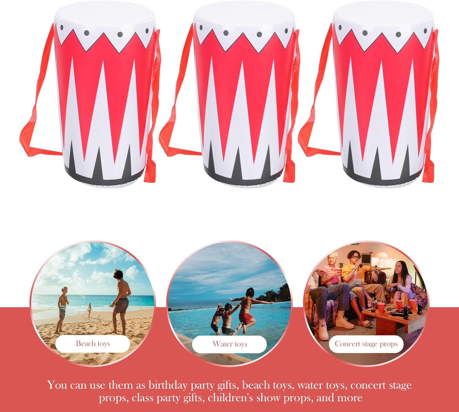 Accessorio giocattolo per tamburo gonfiabile: design creativo e realistico di un tamburo gonfiabile, aspetto molto realistico e vivido, aspetto unico, batteria per bambini Tamburi gonfiabili: il prodotto è realizzato in materiale PVC di alta qualità e presenta un design e un aspetto creativi; Ideale per gli amanti della musica Articoli gonfiabili per feste: adatti per spettacoli teatrali, cosplay, ecc., versatili, ad es. B. Come tamburo per mini tamburo gonfiabile: questo manichino di tamburo è leggero, compatto e può essere facilmente portato ovunque. Tamburo gonfiabile: è realizzato in materiale robusto e durevole ed è ideale per durare a lungo. (strumento gonfiabile, oggetto di scena per feste)