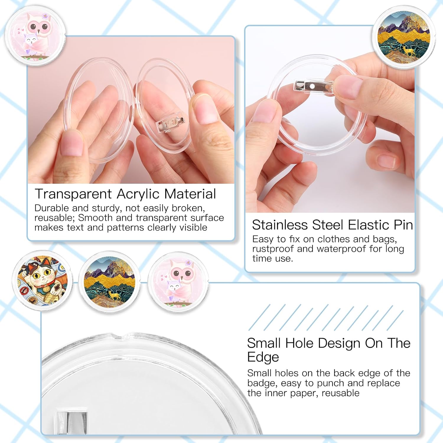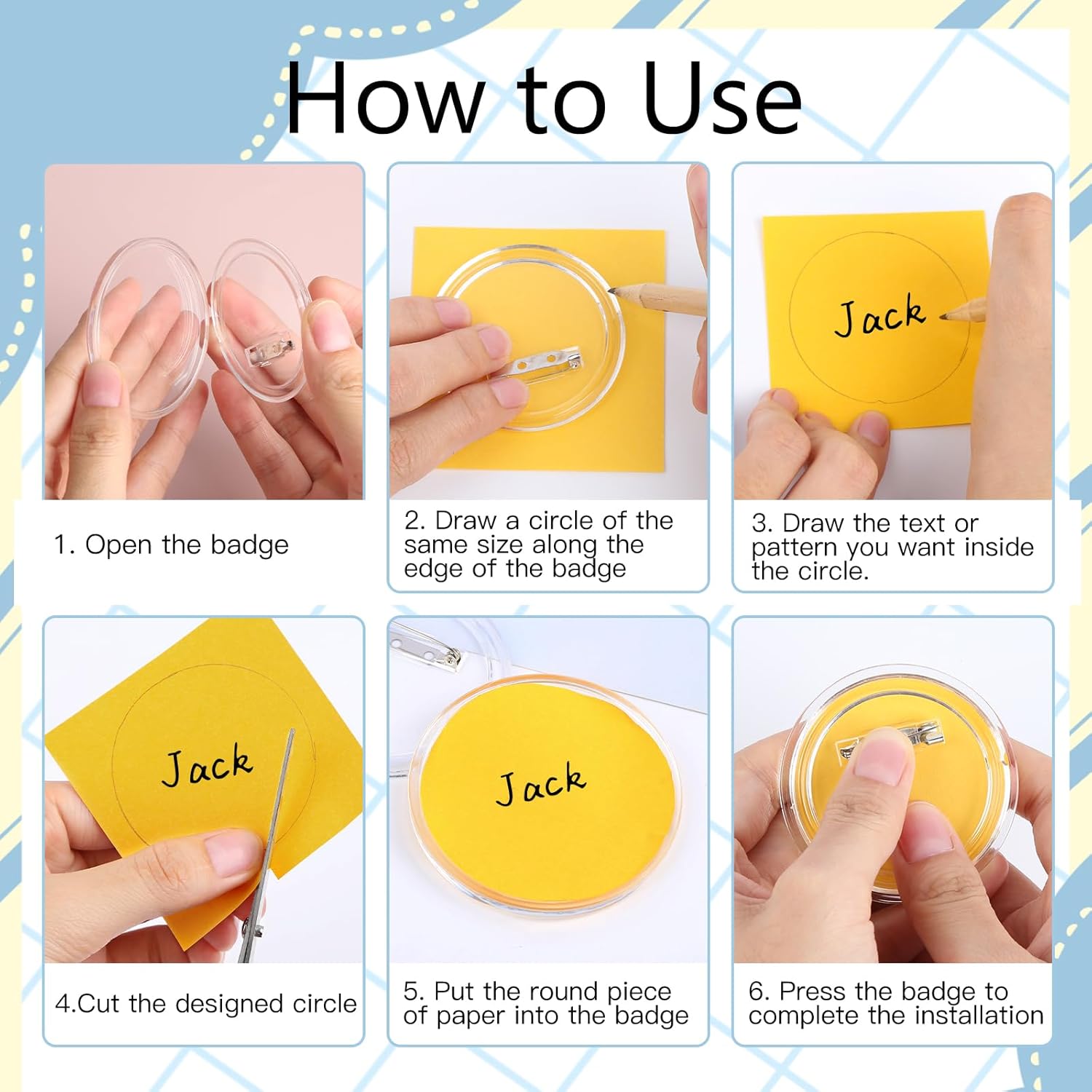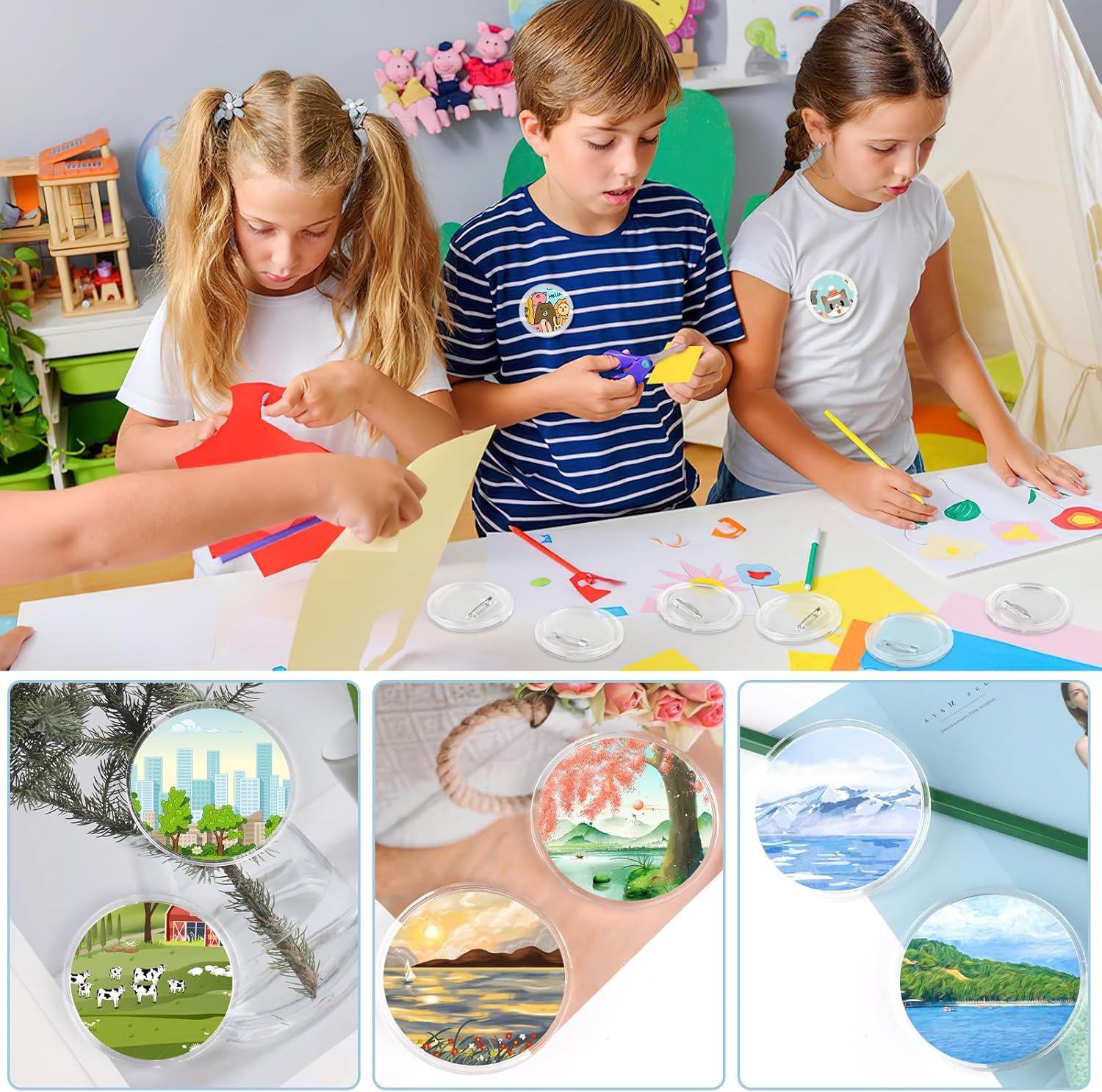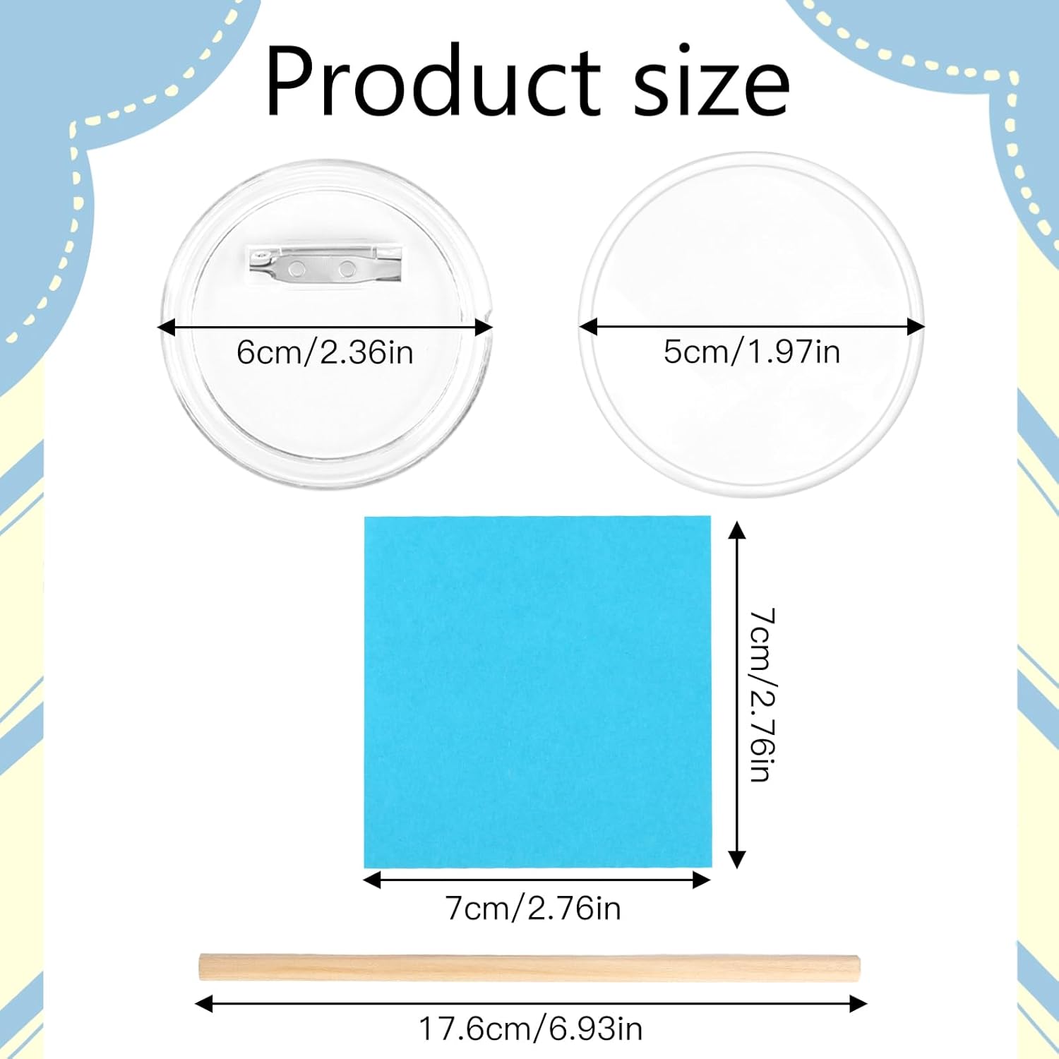 Confezione da 30 bottoni, realizzali senza macchinetta, diametro 60 mm, bottoni trasparenti fai da te con 100 carta colorata e 1 matita, spille fai da te per quadri, foto, vestiti, scuola