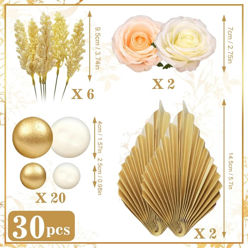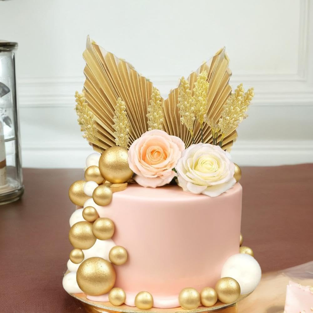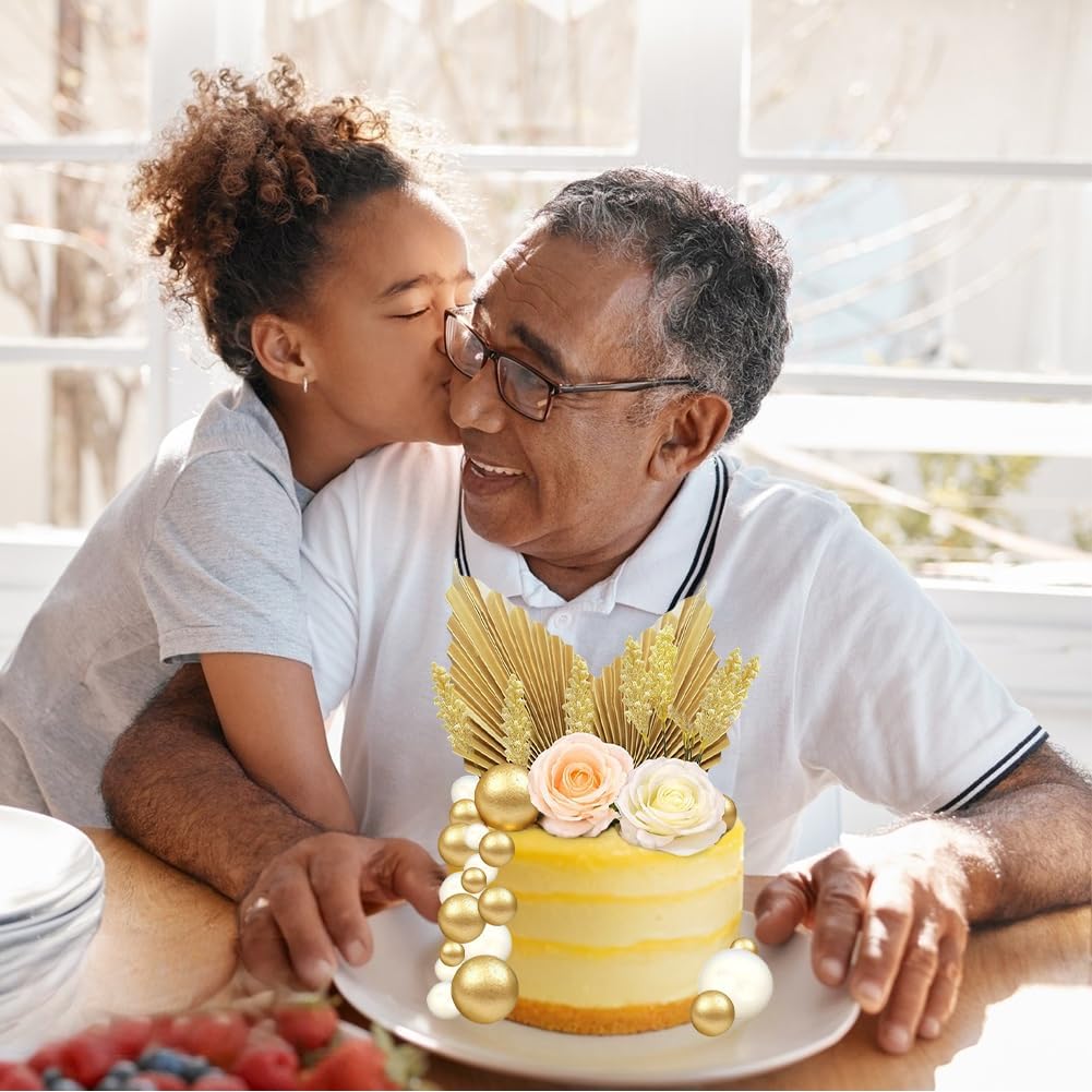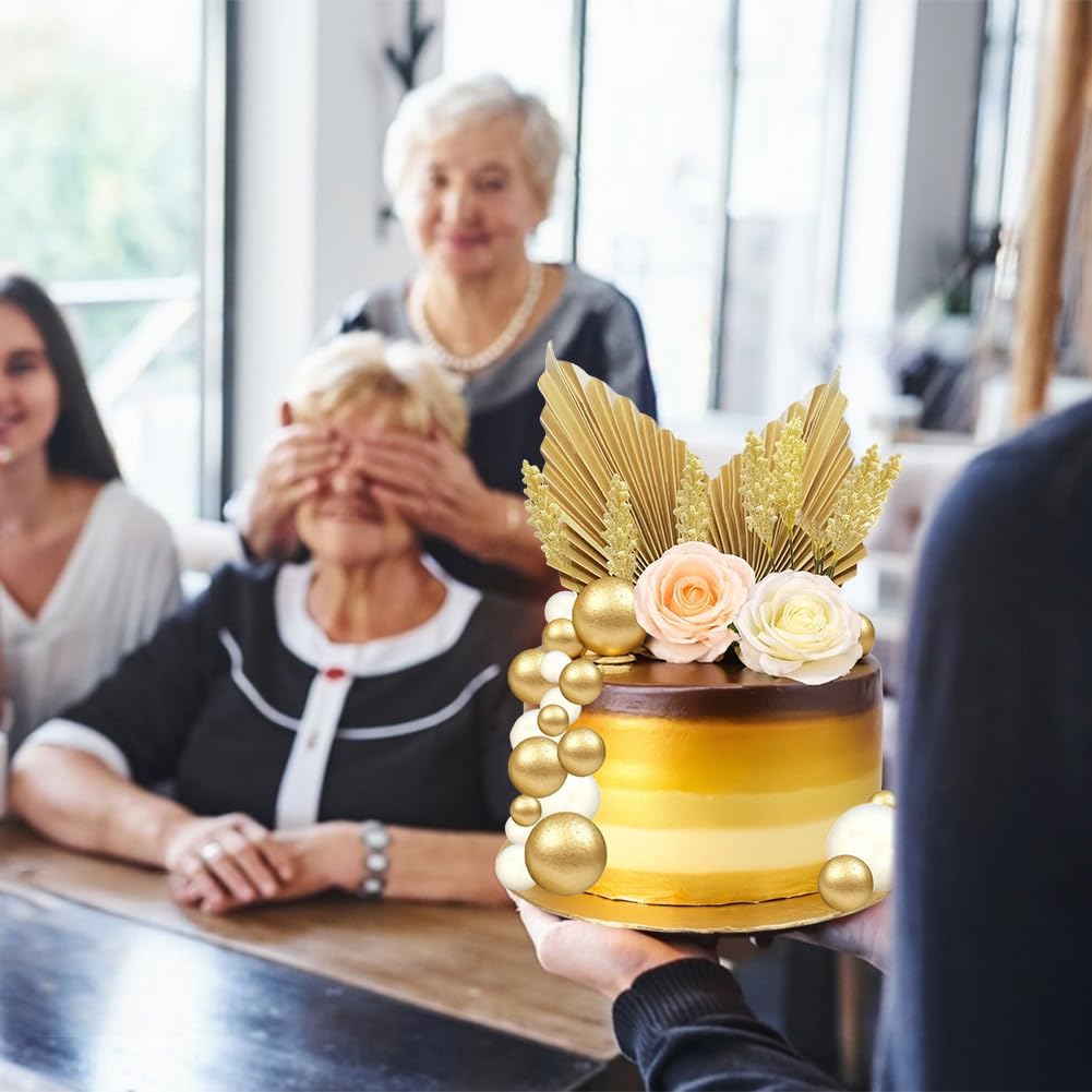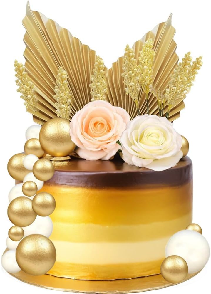 REGALO IDEALE: il set cake topper è anche un'ottima idea regalo. Regala toppers per torta a parenti e amici in modo che possano creare le proprie torte personalizzate. Materiali affidabili: i toppers per torta sono realizzati in PVC e chiffon resistenti, non si rompono né si deformano facilmente, mantenendo le decorazioni belle. Facile da installare: i toppers per torta sono molto facili da usare e possono essere posizionati direttamente sulla torta. Possono essere facilmente installati sia dagli appassionati di pasticceria che dai principianti. Design: il set per decorare torte in stile bohémien presenta fiori di champagne, foglie di palma dorate e palline decorative, aggiungendo un tocco di raffinatezza a qualsiasi torta. Occasione: il set per decorare torte può creare un'atmosfera festosa ed è adatto a tutte le occasioni speciali come compleanni, matrimoni, baby shower, festa della mamma, ecc.