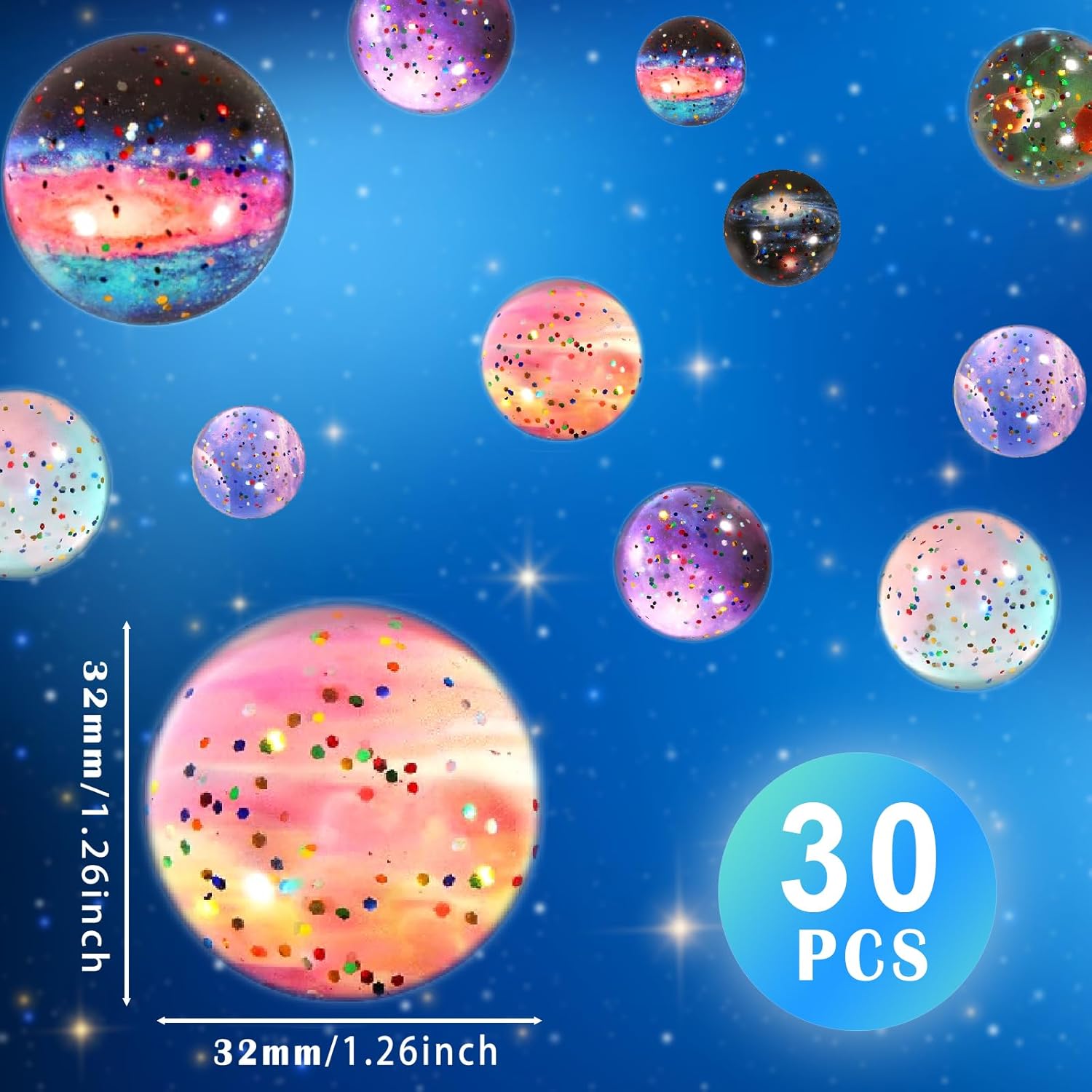 【 tema spaziale Flummis】 Ottieni 30 pezzi di palline con tema spaziale bellissime immagini. Quantità sufficiente per soddisfare le vostre diverse esigenze, è ideale per feste a tema spaziali o come riempimento per compleanni per bambini Materiale di alta qualità: il set di gommini è realizzato in materiale di gomma di alta qualità, leggero e resistente, non tossico ed ecologico Facile da trasportare: diametro 32 mm. per tenerlo in mano e facile da portare in giro, il che può offrire infiniti momenti di divertimento. Mini formato, portatile e leggero, facile da trasportare e riporre Caratteristiche: leggero, colore audace, buona elasticità. All'inizio, le gommine hanno un odore debole e sgradevole, ma questo non influisce sul suo utilizzo. Dopo la ricezione si prega di ventilare per un po ', l'odore scomparirà gradualmente Molteplici possibilità di utilizzo: queste super gommine sono ideali come riempitivi di pinata o sacchetti per feste, feste, Halloween e Natale, premi in classe, regali per carnevale e festival