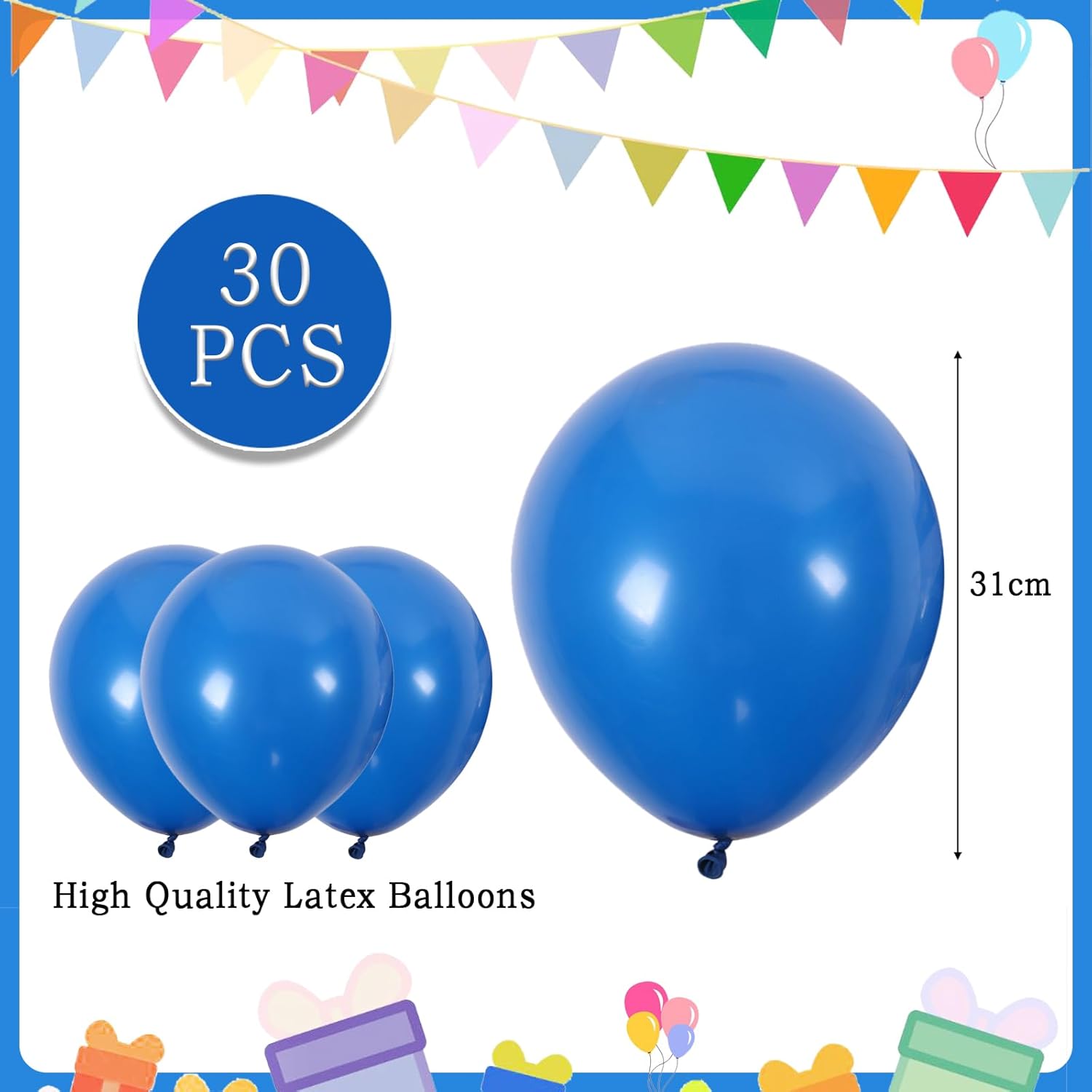 Materiale: tutti i palloncini sono realizzati in lattice di alta qualità, atossici e sicuri, dureranno a lungo. Possono essere riutilizzati e riciclati. È facile da riporre e non occupa spazio Palloncini blu da 12 pollici: la confezione include palloncini da 30,5 cm (30 pezzi) + nastro per palloncini lungo 9,8 m Decorazioni per feste: le decorazioni decorative in lattice di buon compleanno hanno solo bisogno di una pompa per gonfiare il palloncino. Puoi attaccarli ovunque tu voglia decorare e i palloncini di compleanno sono decorazioni di compleanno perfette. Crea un'atmosfera di compleanno piacevole e divertente, questa è sicuramente la scelta perfetta per la festa di compleanno di un bambino. Facile da usare: è possibile riempirli con aria o elio, quindi stringere i palloncini con i nastri per creare un bouquet di palloncini accattivante. Si prega di non riempire eccessivamente i palloncini ed evitare scottature, surriscaldamento, oggetti appuntiti e attrito eccessivo. Controlla la quantità di aria gonfiata in ogni palloncino per ottenere la dimensione ideale del palloncino Ampia applicazione: questi palloncini sono perfetti per feste, fotografie, feste di compleanno per ragazzi e ragazze, baby shower, decorazioni per festival, riunioni di famiglia, scuole, centri commerciali, uffici, decorazioni per porte e bar. Adatto non solo per tutti i tipi di feste, ma anche per oggetti di scena fotografici, può essere utilizzato ideale per uso domestico e aziendale.