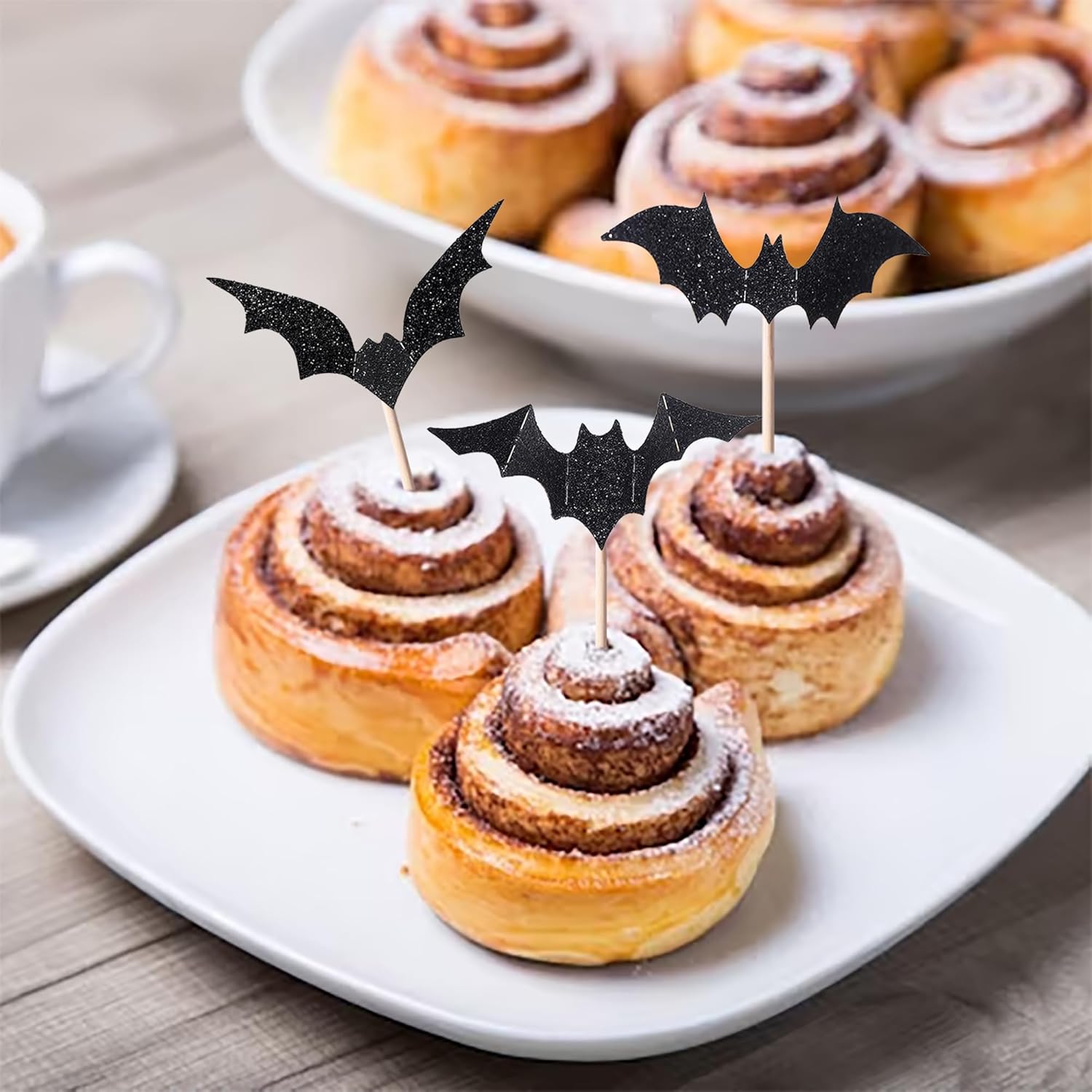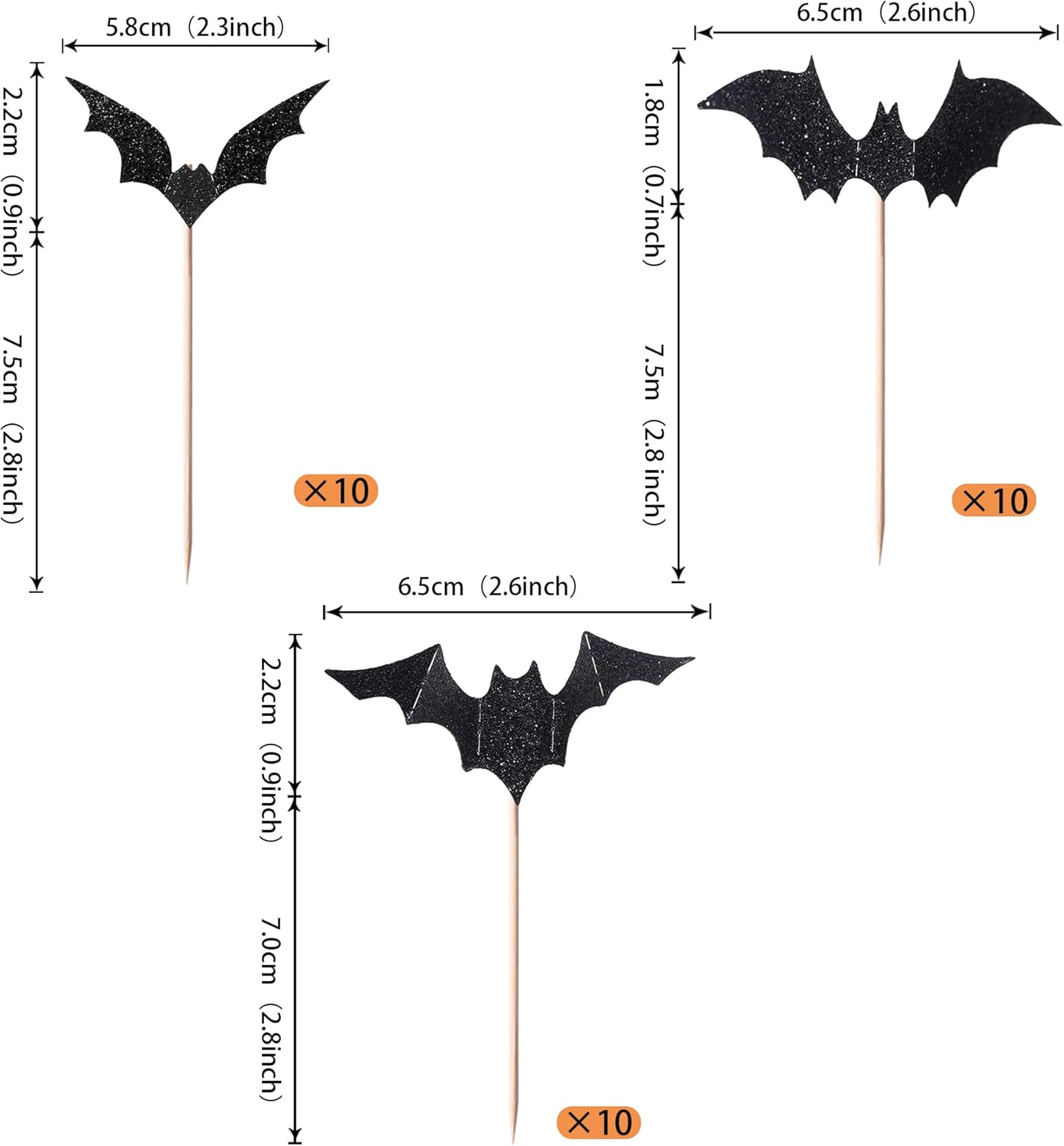 Confezione e dimensioni: include 30 confezioni di toppers per cupcake con pipistrelli. Questi nuovi e graziosi plettri per cupcake aggiungono più divertimento. Ampie applicazioni: questi toppers per cupcake sono così carini e perfetti per allegre decorazioni per cupcake per feste di Halloween. Sono una buona decorazione e rendono il tuo cupcake più attraente e interessante. Puoi usarli anche per gelati, frutta, biscotti e altri dolci. Materiale premium: questi toppers per cupcake sono realizzati in cartoncino glitterato di alta qualità da 300 grammi. Sono molto sicuri per cupcake, biscotti, torte, frutta, biscotti, gelati e altri dessert. NON fai da te: questi toppers per cupcake sono preassemblati, quindi puoi inserirli nel tuo cupcake immediatamente dopo averli ricevuti, il che può farti risparmiare tempo. Memoria! Questi toppers per cupcake sono scintillanti su un lato e il retro è bianco semplice. Solo a scopo decorativo, non commestibile e NON utilizzare nel forno o nel microonde.