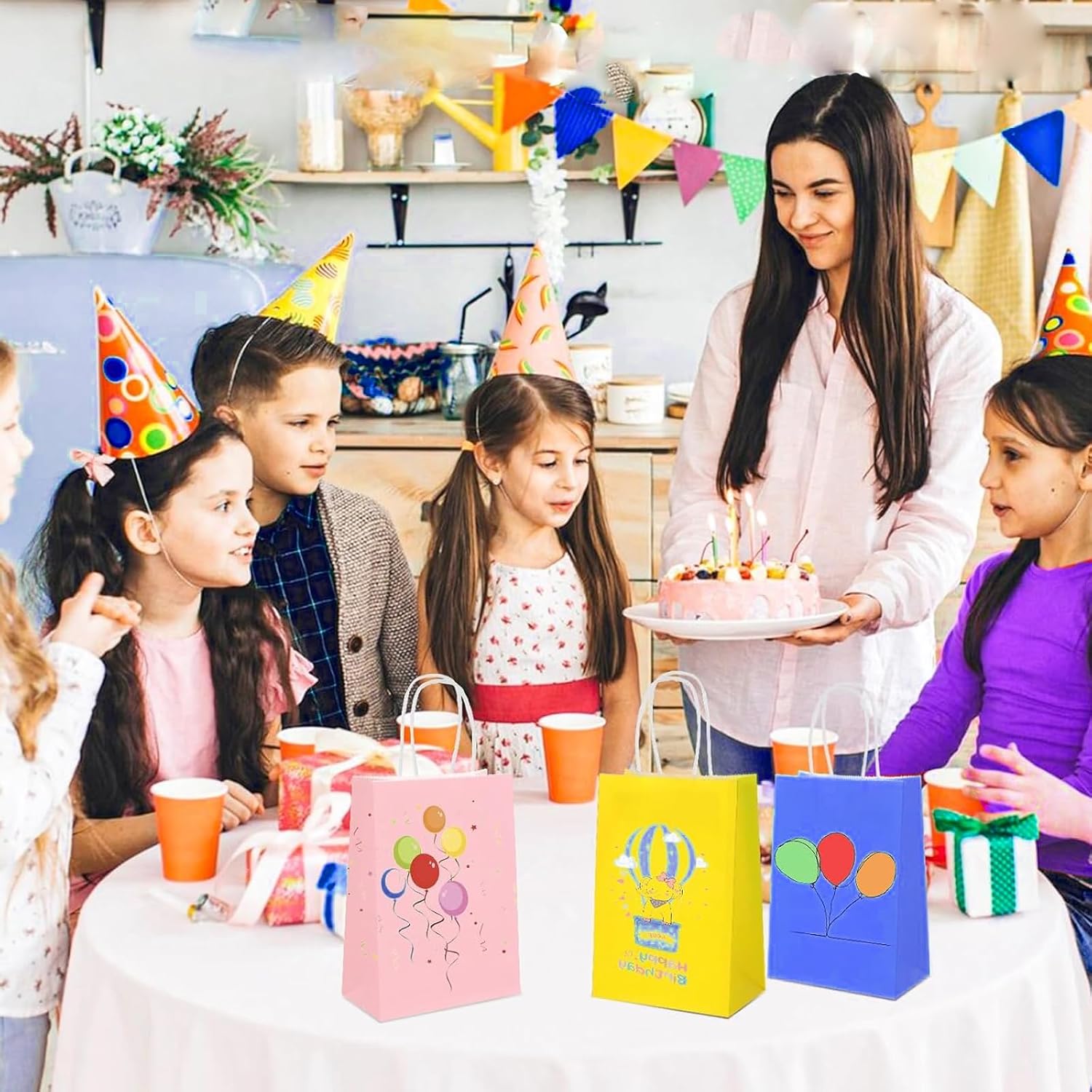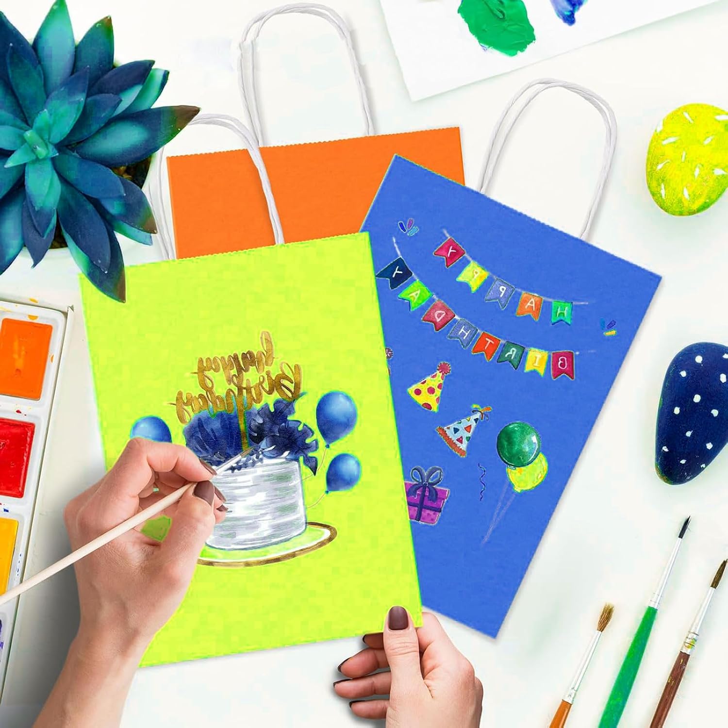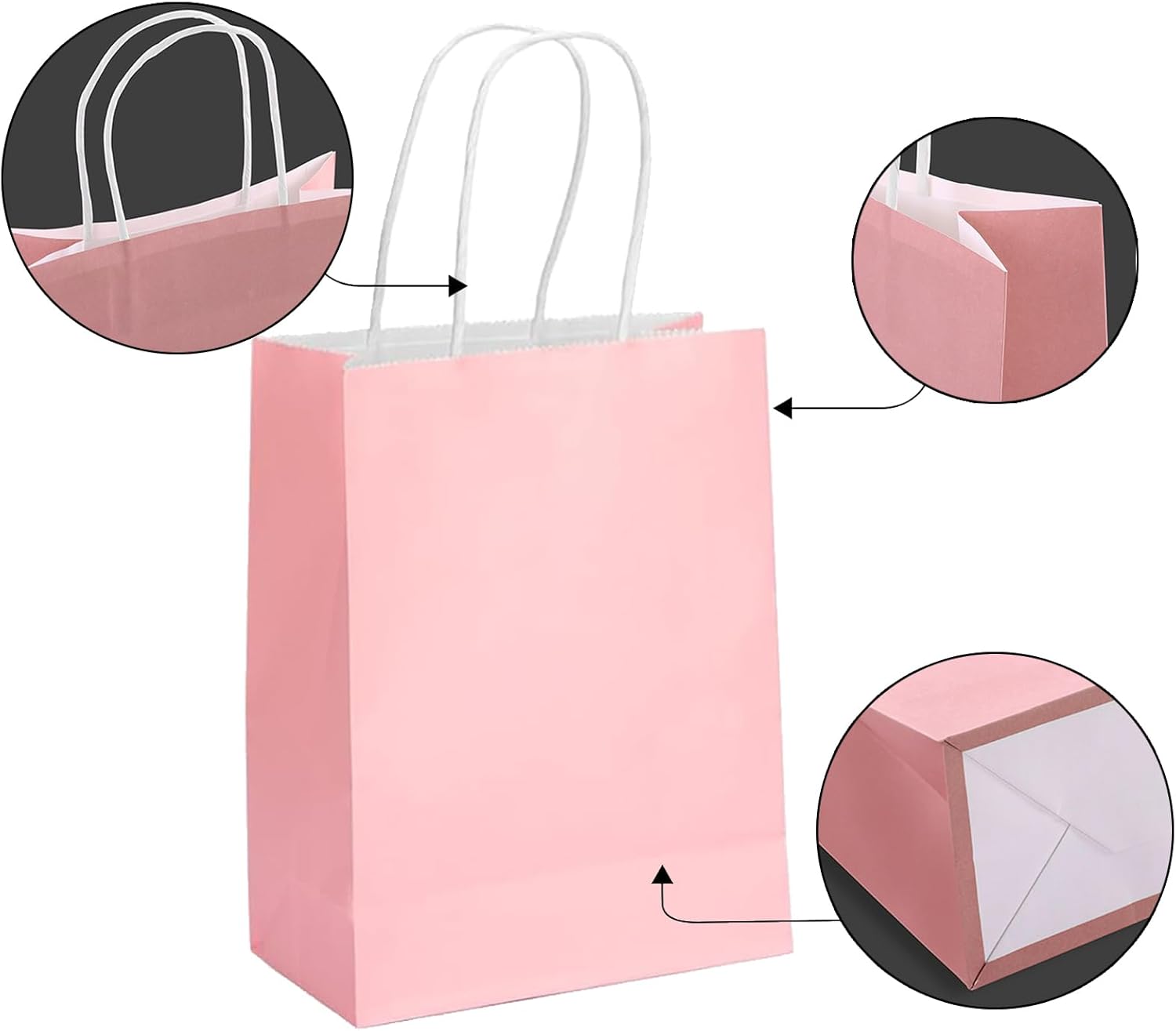 Sacchetti di carta colorati realizzati in carta inceppata, robusti e durevoli, non facili o rotti, che possono facilmente sopportare un peso di almeno 5 kg. I sacchetti di carta con manici hanno una maniglia robusta e di alta qualità per un'eccellente capacità di trasporto e hanno un fondo piatto per poter stare bene. I nostri sacchetti regalo possono essere dipinti, stampati e decorati a piacere, rendendoli un sacchetto regalo unico per te. I sacchetti regalo colorati sono molto adatti per contenere caramelle, biscotti, snack, piccoli giocattoli, bomboniere.