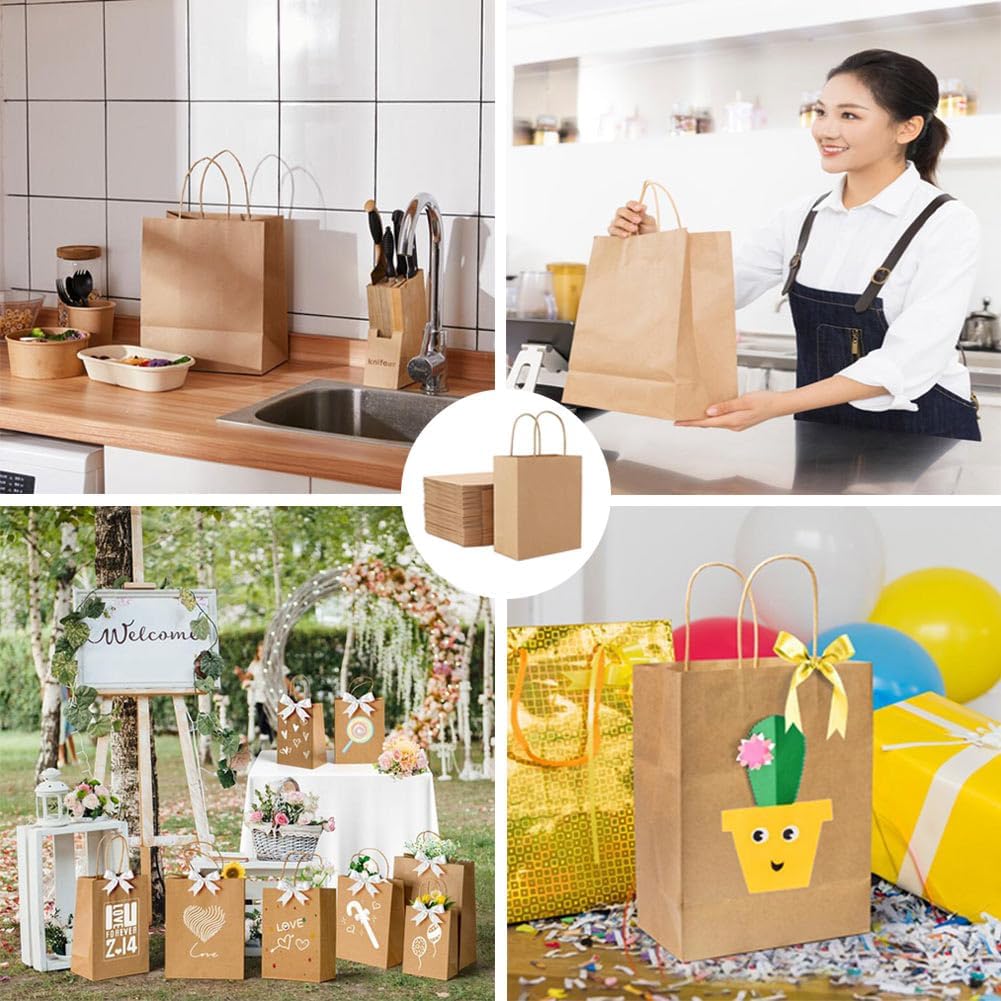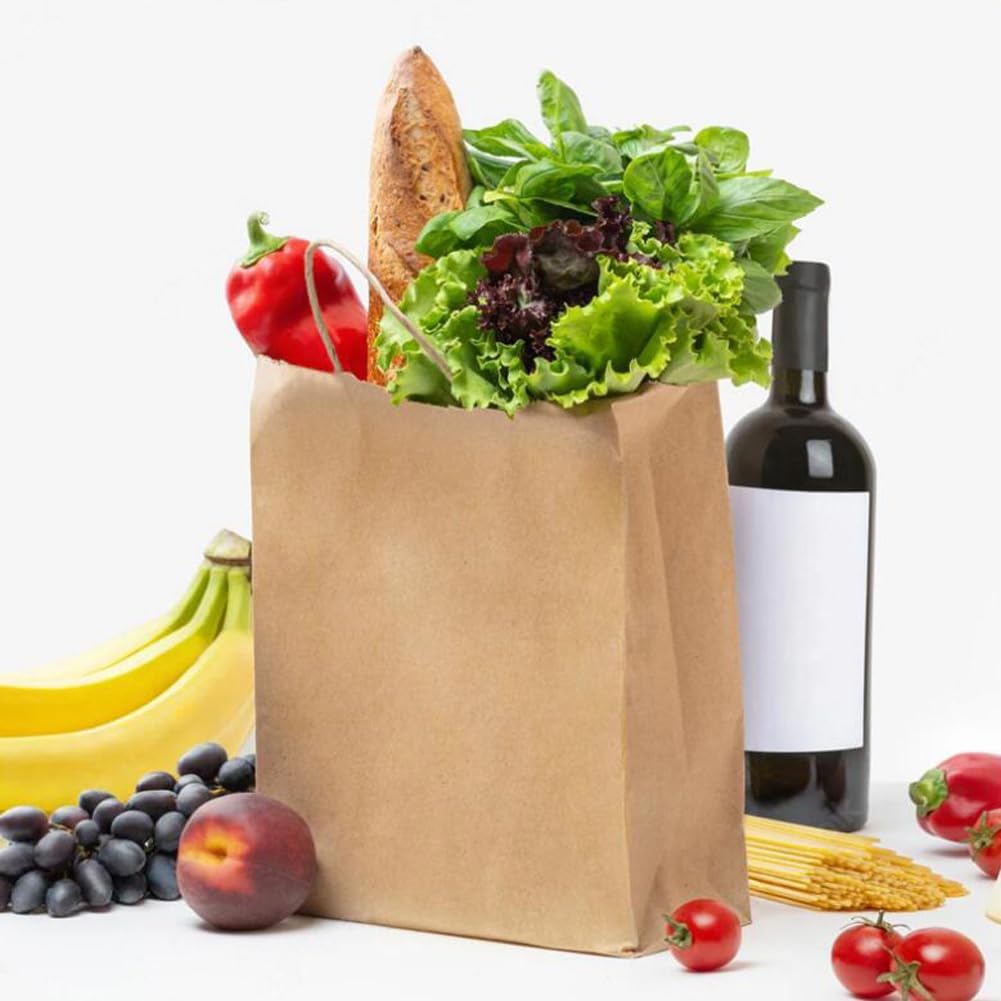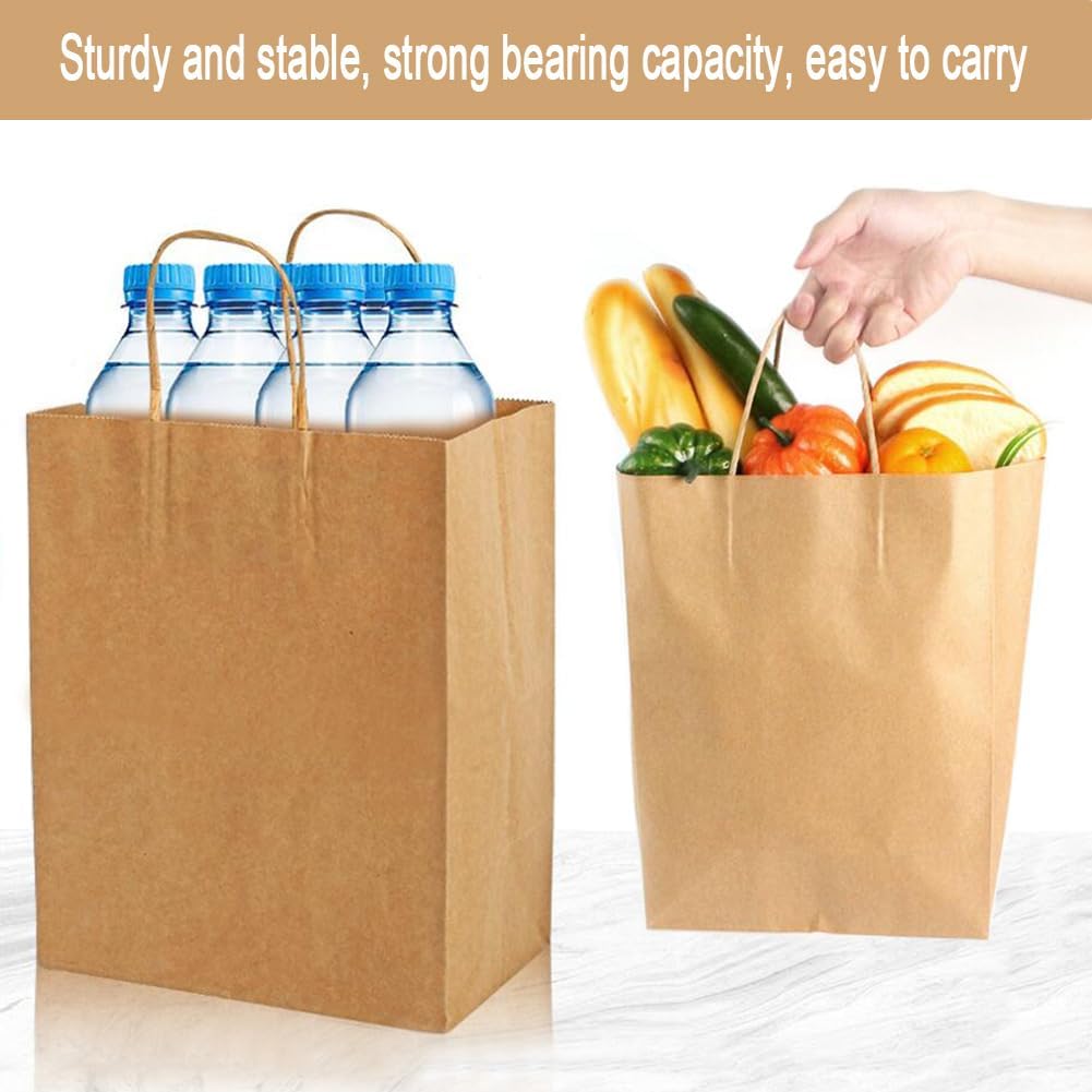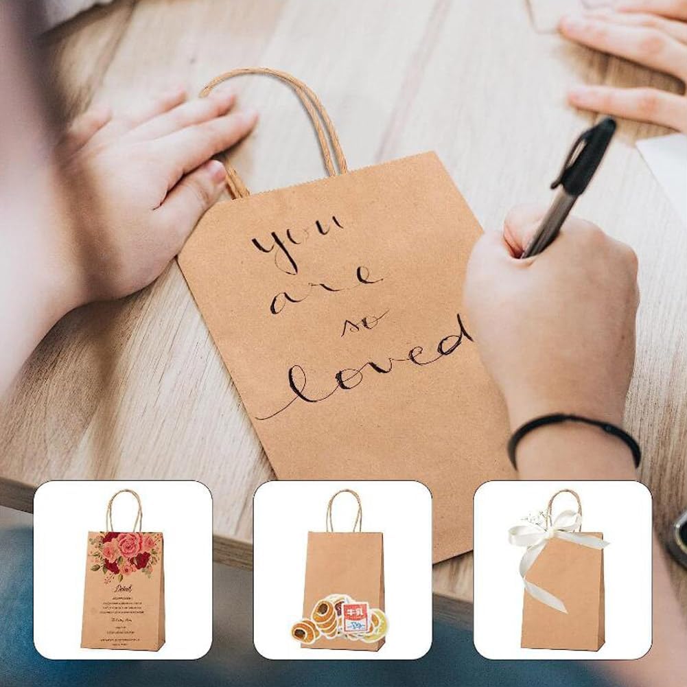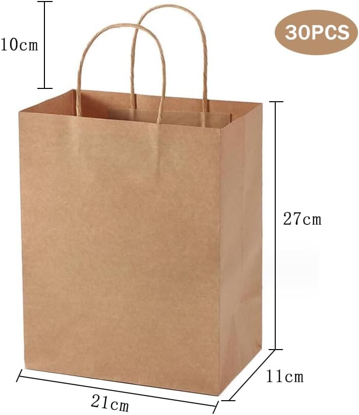 Confezione da 30 Sacchetti di Carta con Manico Sacchetti di Carta Marrone 27 x 21 x 11 cm Sacchetti di Carta Marrone Sacchetti Regalo Carta Riutilizzabile Sacco di Carta Kraft Ecologico Retro Spessore 130 g/m²