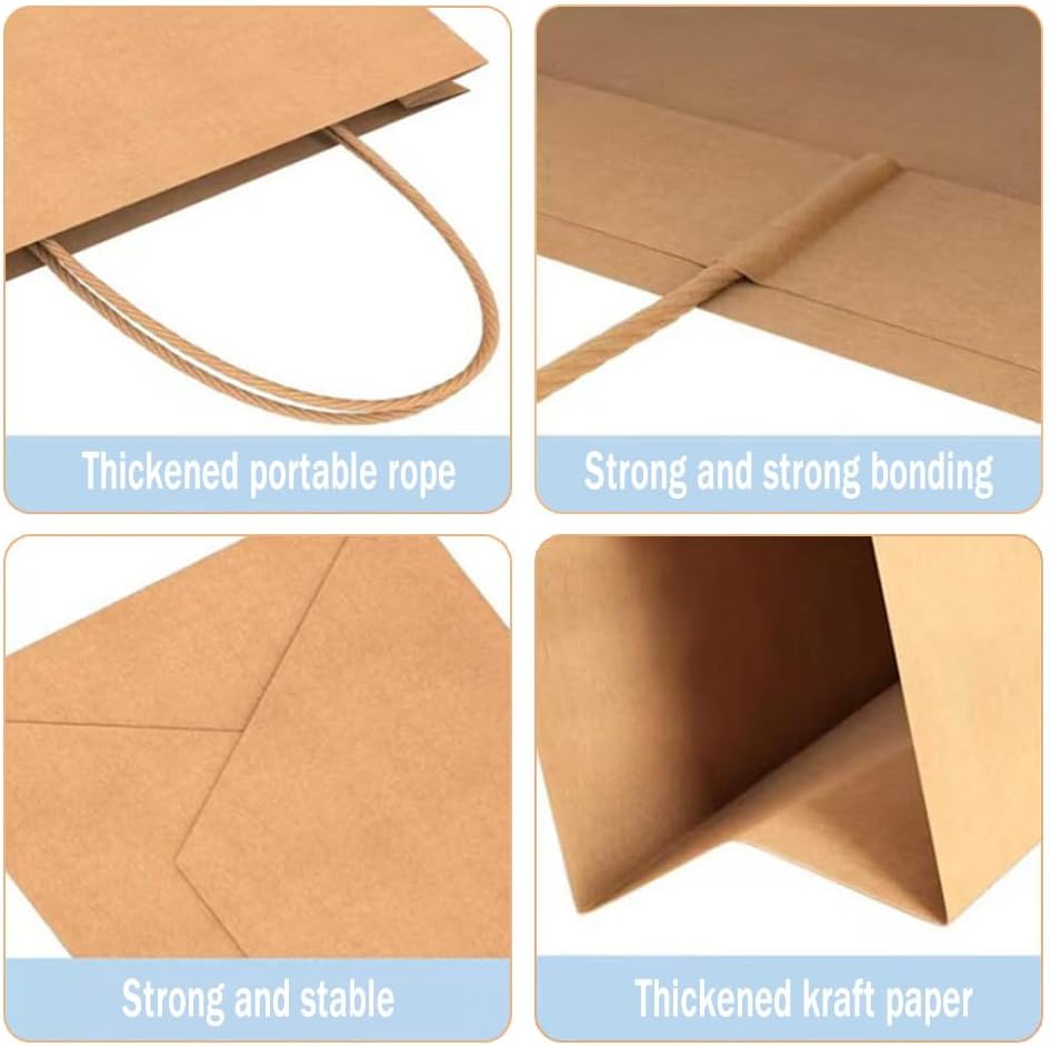 Materiale di alta qualità: il sacchetto di carta è realizzato in carta kraft di alta qualità da 130 g/㎡, resistente e spessa, durevole, non facile da danneggiare, ecologica e riutilizzabile. Facile da usare: ogni sacchetto di carta ha una maniglia nella parte superiore per un facile trasporto. La base è robusta e piatta, quindi può essere posizionata in posizione verticale e utilizzata facilmente. Ha un'elevata resistenza complessiva, una forte tenacità, un'elevata capacità di carico e non è facile da strappare. Molteplici usi: queste pratiche borse di carta possono essere utilizzate per la vita di tutti i giorni, festival, compleanni, feste, celebrazioni o altre occasioni. Ideale per snack, frutta, torte, dolci, biscotti, pane, bevande, cioccolatini, accessori, abbigliamento, cosmetici, regali, oggetti e altro ancora. Borsa regalo creativa fai-da-te: la superficie della borsa di carta kraft è vuota, quindi puoi progettare e creare la tua borsa regalo scrivendo, disegnando o incollando piccoli oggetti. Pieni di carattere unico e creazioni fai-da-te che li rendono speciali. Set di sacchetti di carta: riceverai 30 sacchetti di carta con manici, sacchetti di carta kraft marrone, sacchetti di carta grandi dimensioni retrò: 27 x 21 x 11 cm.