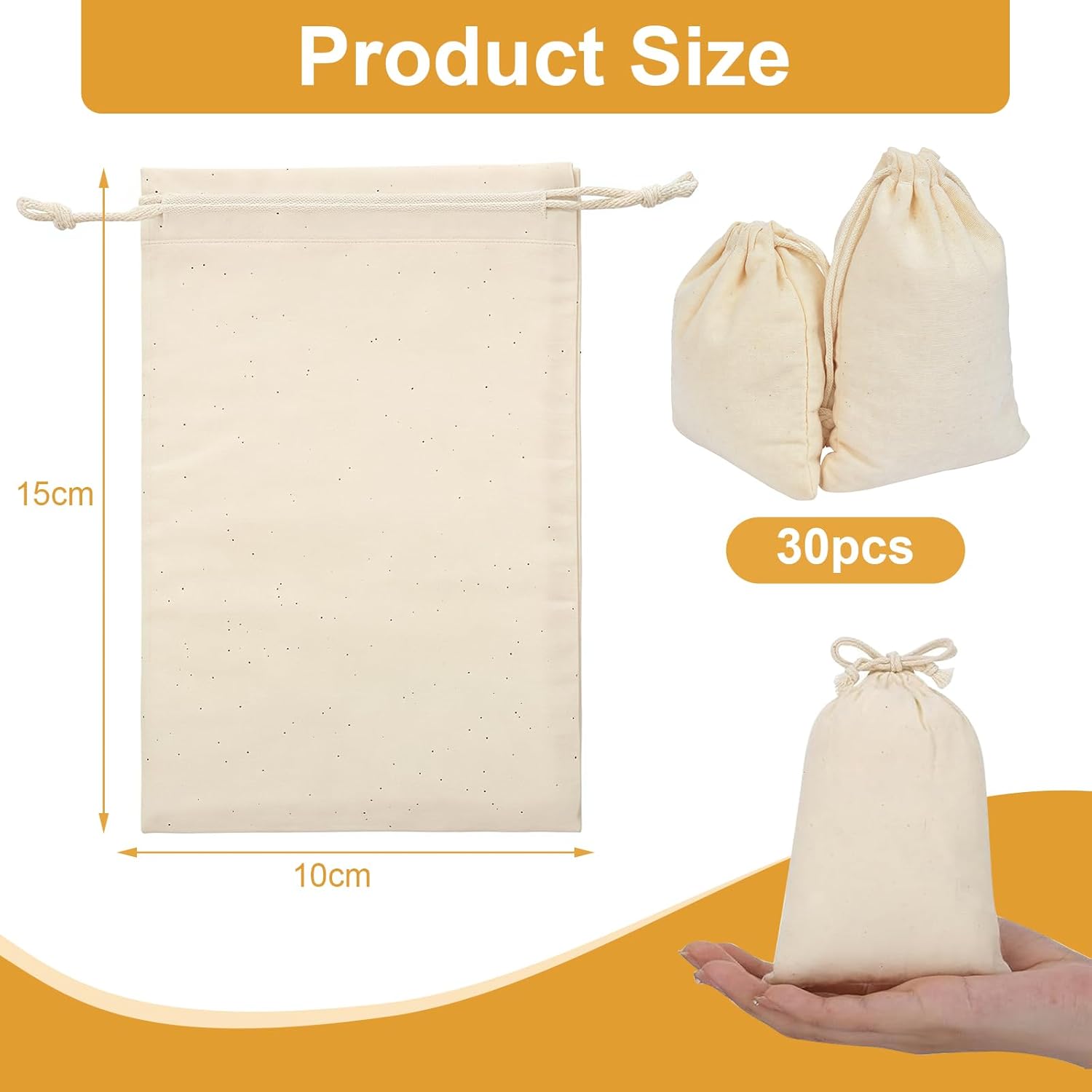 【Sacchetti di stoffa piccoli da 30 pezzi】 - La dimensione del sacchetto di cotone è 10 x 15 cm / 3,94 x 5,91 pollici, ideale per conservare caramelle, cioccolato, giocattoli, gioielli, ecc. Si prega di prestare attenzione alle dimensioni del sacchetto al momento dell'acquisto. Ideale per riporre piccoli oggetti e confezionare bellissimi regali. Nota: i punti neri sul sacchetto non sono macchie di muffa; Materiale di cotone, normale. 【Materiale di alta qualità】: la piccola borsa in tessuto è realizzata in cotone, stabile e resistente, morbida e confortevole al tatto, ben cucita e riutilizzabile. Il sacchetto di stoffa è realizzato in tessuto per uso alimentare, non contiene sostanze nocive e può essere riutilizzato a lungo dopo la pulizia, il che è molto rispettoso dell'ambiente. 【Design con coulisse】: le borse in cotone hanno un design con coulisse, che può aprirsi e chiudersi senza problemi, lo stato stretto delle piccole borse è sicuro. Spazio sufficiente per riporre piccoli oggetti come noci, biscotti, cioccolatini e caramelle. 【Idee creative】: fai da te questi piccoli sacchetti di cotone, puoi creare i tuoi sacchetti regalo speciali dipingendo a mano o trasferendo a caldo i diversi modelli che ti piacciono su questa borsa. Puoi conservare regali, dolci, oggetti di artigianato, chicchi di caffè, foglie di tè o spezie. 【Varie occasioni】 Questi sacchetti regalo in tela sono molto adatti per matrimoni, regali di nozze, feste, banchetti, Halloween, Ringraziamento, Natale, Capodanno, Festa dei bambini, San Valentino, Pasqua, confezioni regalo di compleanno. La borsa con coulisse è ideale per conservare semi, chicchi di caffè, dolcetti, monete, gioielli, caramelle, regali, collane e altri piccoli oggetti