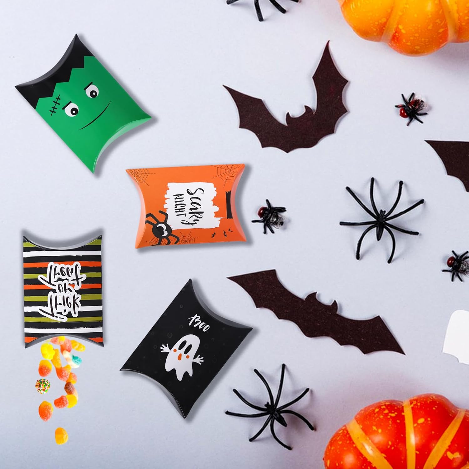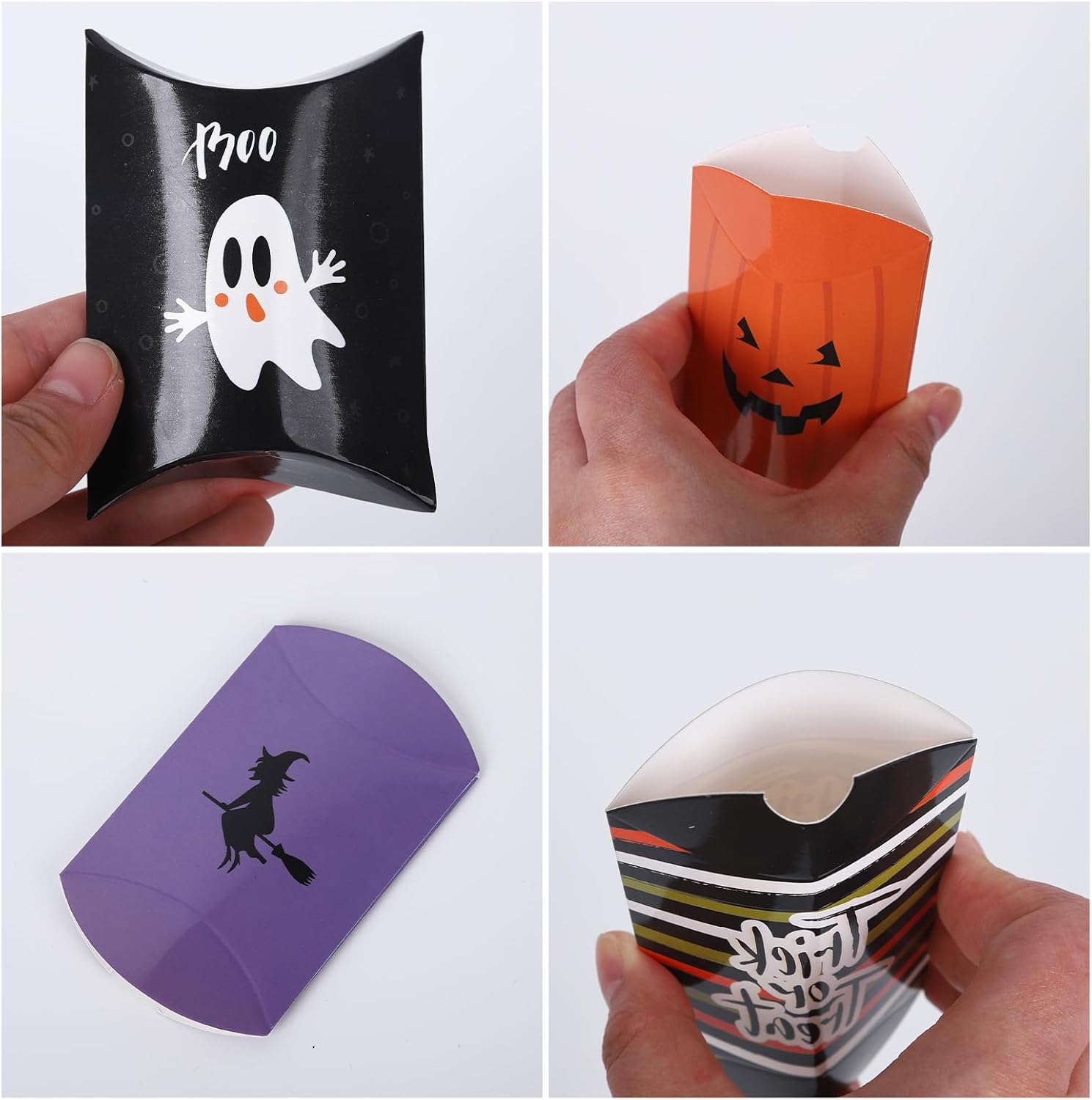 Riceverai 30 scatole di caramelle di Halloween, 10 diversi stili di design, 3 pezzi per stile, ricchi elementi di Halloween, la quantità è sufficiente per soddisfare le tue esigenze. Realizzati in cartone spesso e impermeabile, questi sacchetti per caramelle sono durevoli e possono essere utilizzati molte volte. Il materiale sicuro lo rende ottimo per confezionare cibo e caramelle, sacchetti regalo perfetti per le feste di Halloween dei bambini. I sacchetti di carta per Halloween contengono 10 motivi carini e classici: fantasma, zucca, strega, teschio, ragno, felice Halloween e dolcetto o scherzetto, classico motivo di Halloween, ottimo per l'atmosfera della festa di decorazione di Halloween. Il sacchetto per caramelle di Halloween è facile da installare e facile da usare, perfetto per avvolgere biscotti, caramelle, biscotti, cioccolato, snack, dolcetti, cioccolatini, popcorn o piccoli regali. Le nostre confezioni regalo di Halloween sono adatte per Halloween, feste a tema zucca, feste per bambini, attività di classe, buffet, ecc. Colore e stile accattivanti, creano una fantastica atmosfera di Halloween, regali perfetti per le feste dei bambini.