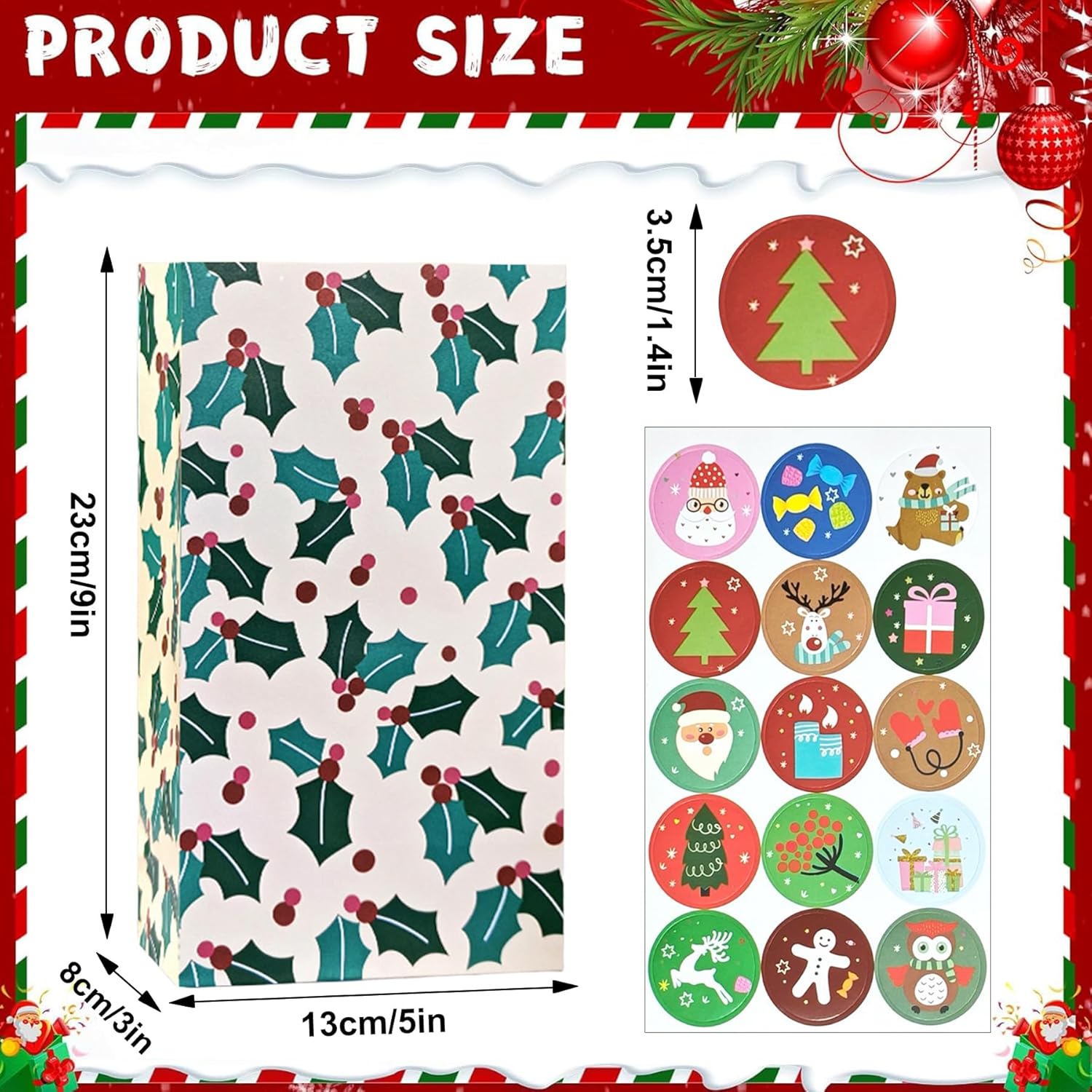 🎄【Sacchetti regalo di Natale perfetti】: questi sacchetti di carta kraft sono realizzati con carta kraft di alta qualità e sono quindi sicuri, robusti e riutilizzabili. Sono ripiegabili per risparmiare spazio e la chiusura adesiva è particolarmente resistente agli strappi. 🎄【Contenuto del set】: questi sacchetti regalo natalizi in carta kraft soddisfano tutte le tue esigenze di imballaggio. Ogni set contiene 30 sacchetti regalo e 30 adesivi natalizi. I colori vivaci e i design festivi attirano davvero l'attenzione e sono ideali per confezionare regali e dolci. 🎄【Accessori essenziali per l'imballaggio natalizio】: questi sacchetti di carta kraft sono una scelta eccellente per i regali di Natale. Sono perfetti per confezionare alimenti, dolci, torte o altri beni di consumo e ovviamente anche per confezionare e spedire regali già incartati. 🎄【Regali di Natale】: Con i sacchetti regalo di Natale puoi riporre ordinatamente tutti i regali sotto il tuo albero di Natale e renderlo ancora più bello. Materiali di alta qualità, lavorazione robusta e un'ampia selezione di classici motivi natalizi conferiscono ai vostri regali un tocco festoso. 🎄【Usi versatili】: i sacchetti regalo sono perfetti per confezionare regali di Natale, regali di nozze, regali di compleanno, regali dell'Avvento e bomboniere. Possono essere utilizzati anche per feste di Natale, confezioni regalo di nozze, confezioni regalo, compleanni e anche come eleganti sacchetti regalo per le feste di Capodanno per valorizzare la vostra celebrazione e aggiungere un tocco speciale.