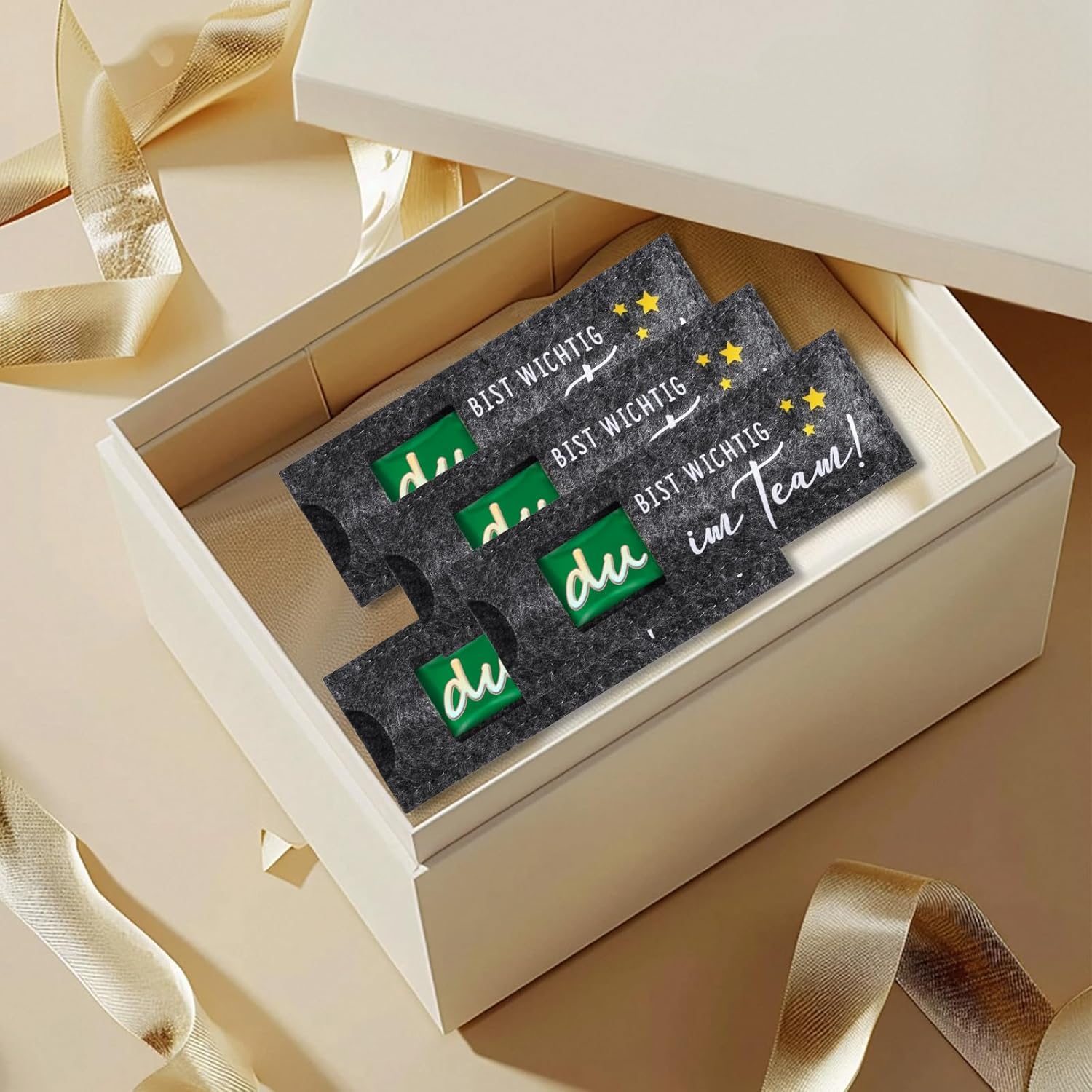 【Quantità generosa】: queste bomboniere per feste di compleanno contengono 30 barrette di cioccolato confezionate singolarmente, accuratamente avvolte in feltro di alta qualità. È resistente, riutilizzabile e decorato con un elegante fiocco. Che si tratti di un regalo di classe, di benefici per i dipendenti o di un regalo per un evento, è facilmente adatto per ordini di grandi dimensioni.,Materiale di alta qualità: questa confezione Duplo è realizzata in feltro di alta qualità e ha un aspetto morbido e strutturato. Non solo dona ai cioccolatini un tocco di calore e lusso, ma offre anche un'eccellente protezione durante il trasporto e lo stoccaggio. La consistenza naturale e il colore morbido del feltro conferiscono alla confezione regalo un tocco artistico e attraente.,Dimensioni ideali: questo regalo duplo misura circa 14 x 5 cm e può contenere una varietà di cioccolatini e dolci. L'interno accuratamente progettato assicura che i cioccolatini di diverse dimensioni rimangano saldamente al loro posto e previene efficacemente che scivolino o si rompano durante il trasporto. Quindi ogni regalo amorevole arriva intatto.,Design accurato: è bello che tu sia qui confezionato singolarmente, in modo che ogni barretta di cioccolato possa essere facilmente trasportata e distribuita. Che si tratti di eventi all'aperto, feste o come piccolo regalo, perfetto per regalare dolci sempre e ovunque. Versatile: bello che tu sia lì, è il regalo di ringraziamento ideale per varie occasioni, tra cui lauree, matrimoni, battesimi, compleanni, Halloween, Natale e carnevale. Che tu stia festeggiando una laurea, ringraziando gli invitati al tuo matrimonio o condividendo dolci con amici e familiari durante le vacanze, è il modo perfetto per trasmettere i tuoi migliori auguri