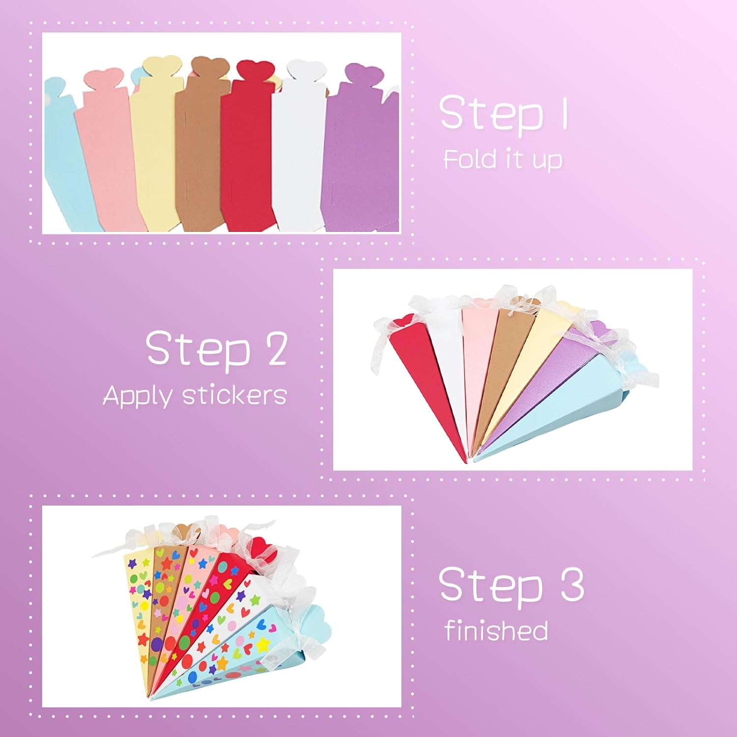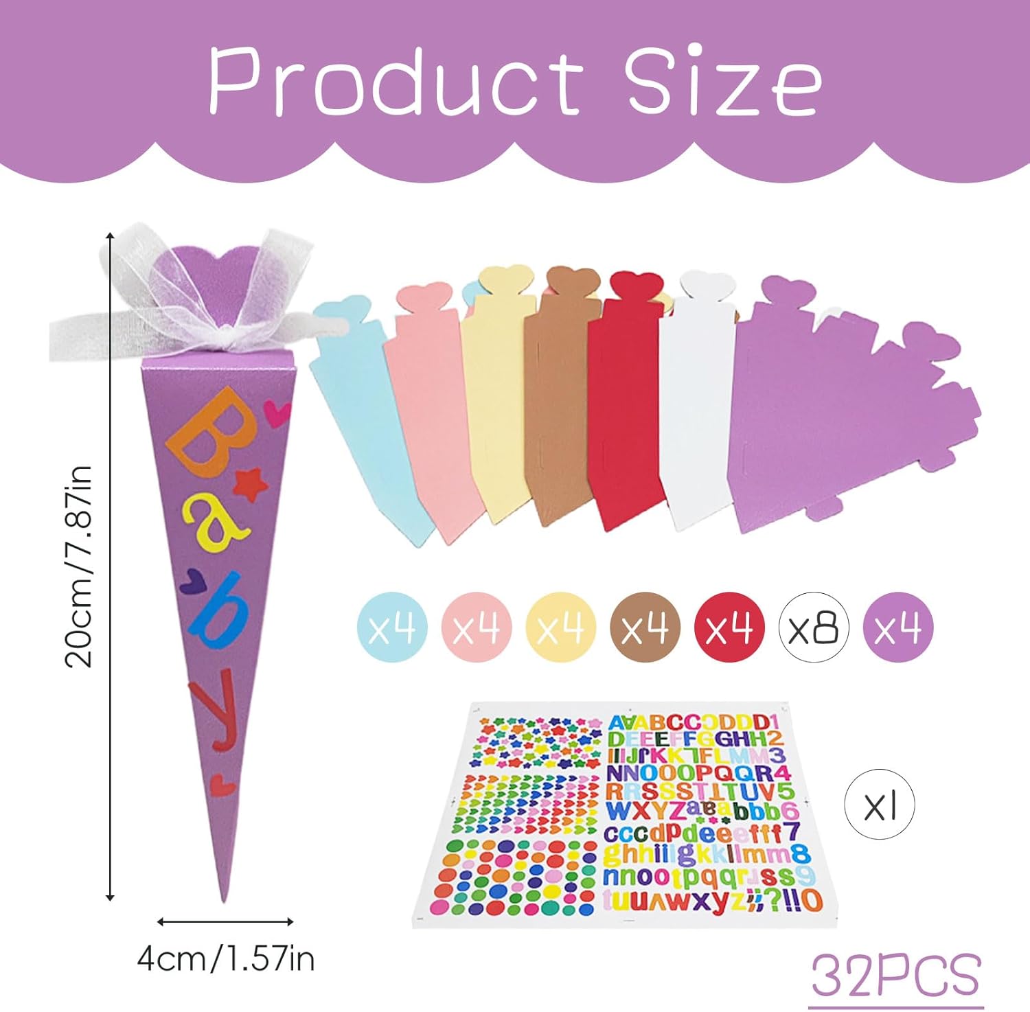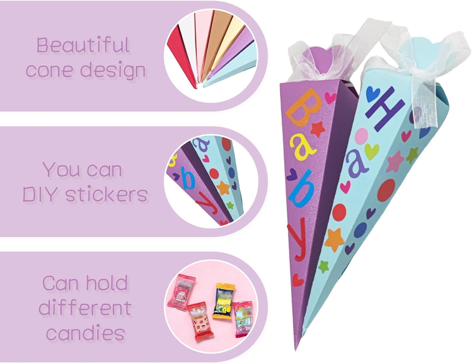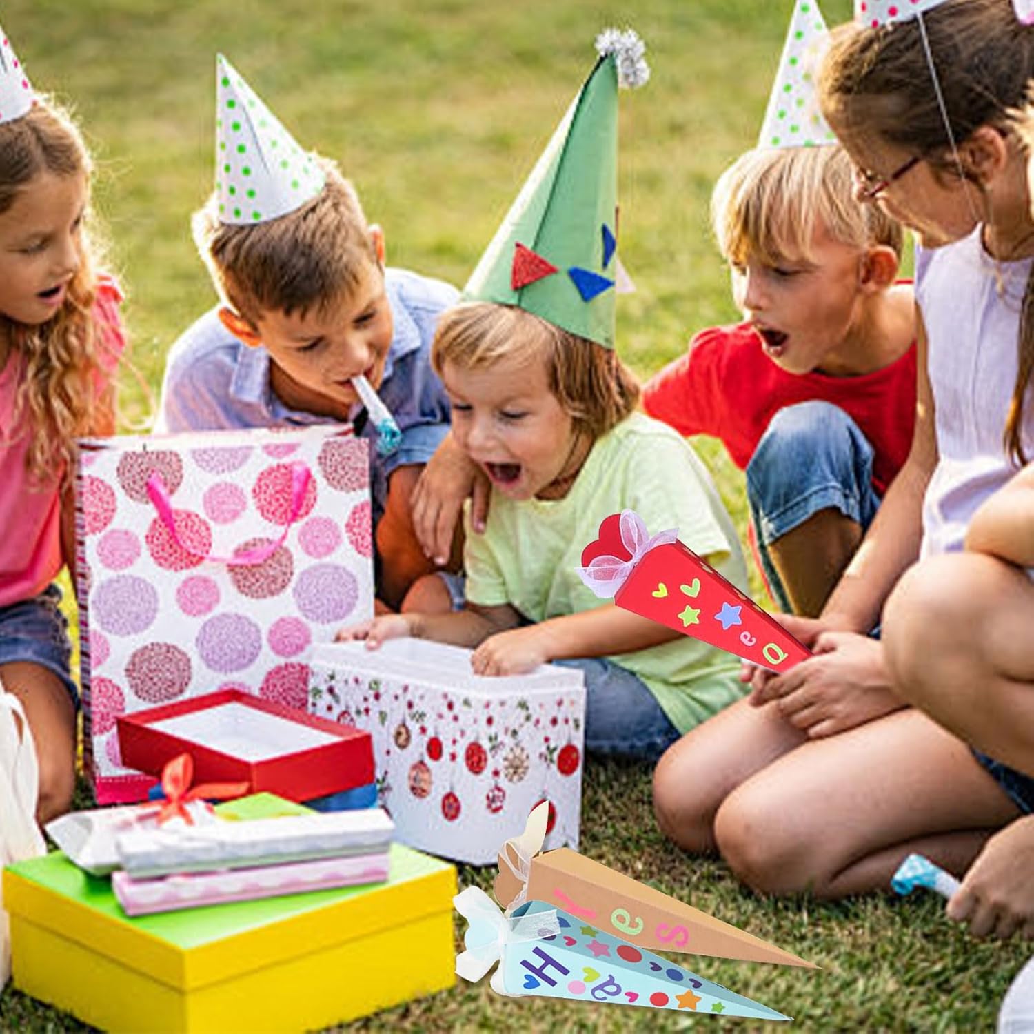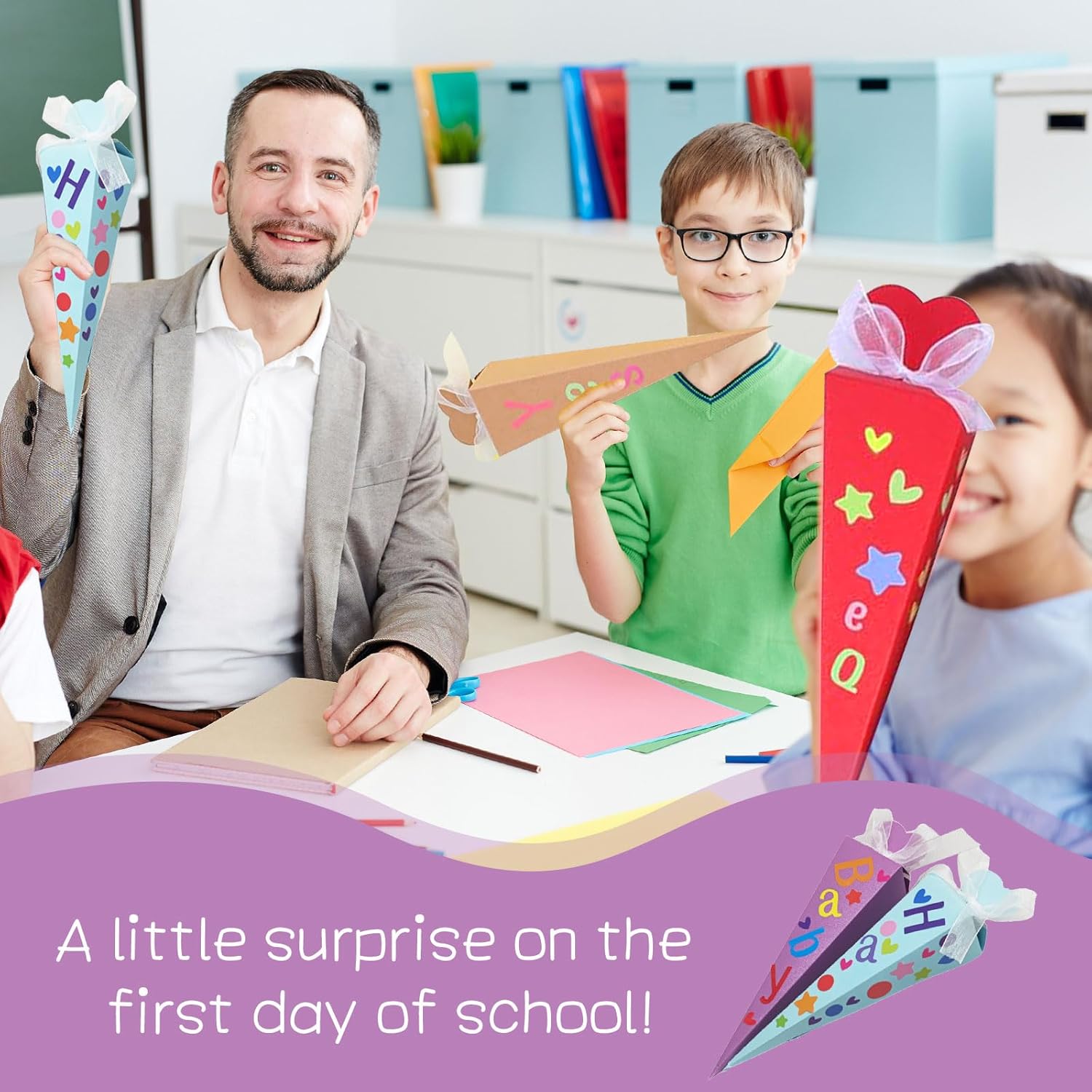 【Design unico】 Il set comprende 32 scatole di caramelle e 4 adesivi. I nostri piccoli coni scolastici hanno un design accattivante e sono perfetti come regalo per il primo giorno di scuola, un compleanno o altre occasioni speciali. 【Piccolo ma carino】 I nostri piccoli zaini scolastici sono ideali per i fratelli che festeggiano insieme l'inizio dell'anno scolastico. Con una dimensione di 4 x 20 x 4 cm, sono pratici e perfetti per riempire piccole sorprese come caramelle. 【Materiale di alta qualità】 Realizzati in carta robusta, i nostri coni scolastici offrono una qualità duratura. Sono abbastanza robusti da resistere all'entusiasmante inizio dell'anno scolastico e allo stesso tempo abbastanza leggeri da poter essere facilmente trasportati dai bambini piccoli. set artigianali a cono per il ritorno a scuola. 【Versatile e creativo】progetta i coni scolastici individualmente e in modo creativo. Il nostro set per coni scolastici ti offre la possibilità di riempire tu stesso i coni di zucchero e decorarli secondo i tuoi desideri. Perfetto per genitori e adulti creativi. 【Dimensioni Perfette】 Con dimensioni compatte, le nostre borse per la scuola si adattano a qualsiasi borsa e sono ideali per la scuola materna o elementare. Sono perfetti per piccoli regali che addolciscono l'inizio dell'anno scolastico e sono ideali come zaino scolastico per ragazzi e ragazze.