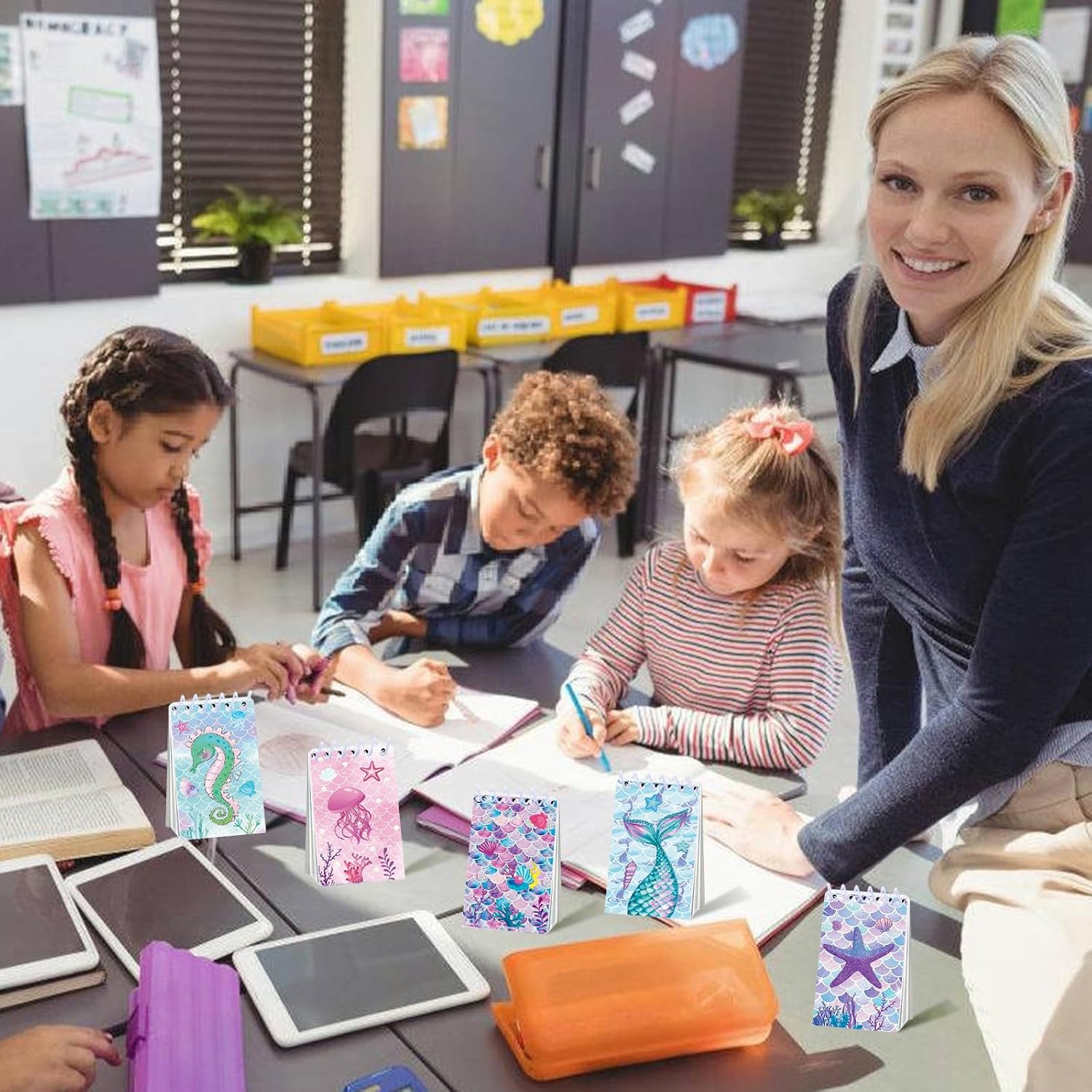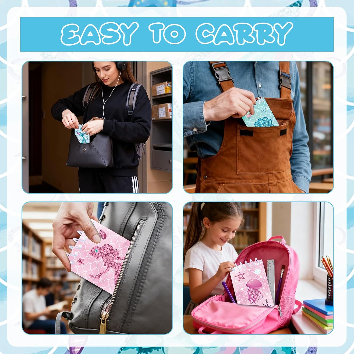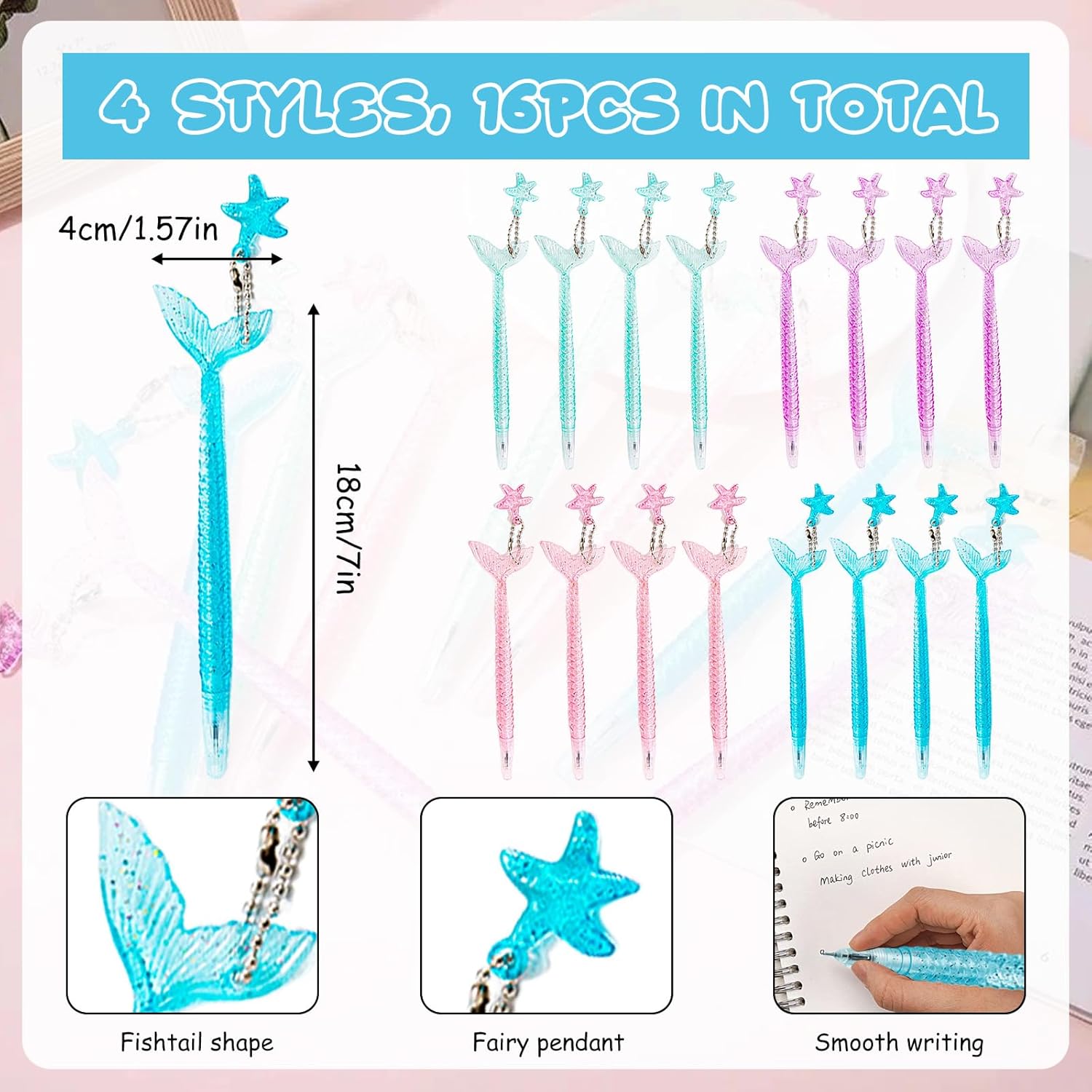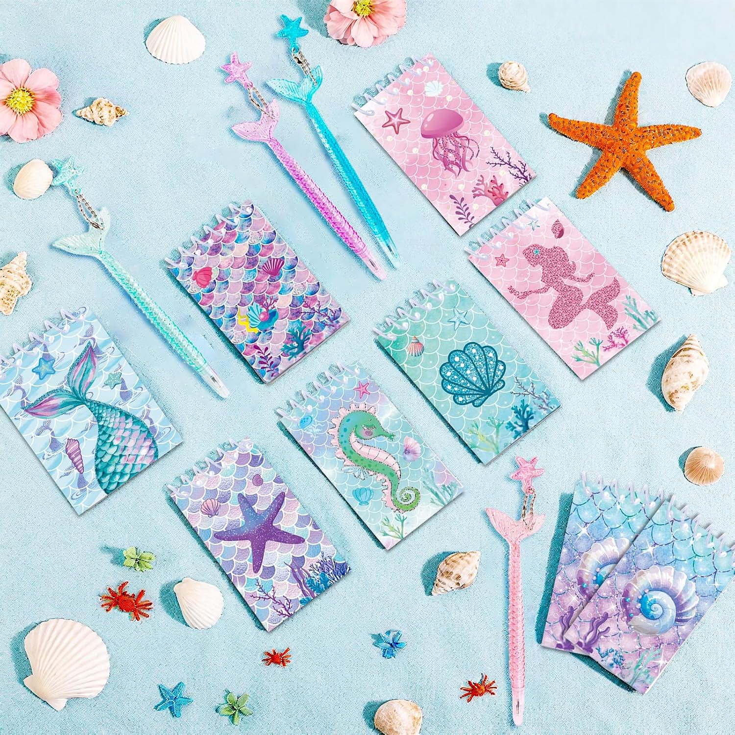 Set del tesoro della sirena da 32 pezzi: quaderni e penne per un divertimento marino senza fine! Ti forniamo 16 mini quaderni a sirena (8 stili diversi, 2 set) e 16 adorabili penne a sirena (4 colori diversi, 4 ciascuno), sufficienti per soddisfare le tue aspettative di regali divertenti. Questi blocchi a spirale a forma di sirena sono realizzati in carta spessa e sicura e sono un successo ad ogni festa. Simpatici disegni a sirena: gli animali marini colorati portano gioia e colore! I nostri mini taccuini a sirena presentano molti disegni subacquei come scaglie di sirena, stelle marine, cavallucci marini, conchiglie, meduse e conchiglie dai colori vivaci. Perfetto per ravvivare qualsiasi festa con sirene o decorazioni subacquee. Materiale sicuro e durevole: carta e penne grip di alta qualità, appositamente progettati per le mani dei bambini! I mini quaderni a sirena sono realizzati in materiale robusto e sicuro, con carta extra spessa per un uso durevole. Le penne abbinate stanno comodamente in mano, sono leggere e pratiche per i viaggi, ideali per lo zaino della scuola. Facili da trasportare e da utilizzare: Compatti e pratici, questi mini quaderni a sirena dal design marino stanno in ogni tasca e sono perfetti per appunti o schizzi quotidiani. Abbiamo ideato questi mini quaderni con animali marini: le pagine a spirale si staccano in modo netto senza danneggiare la carta. Ciò significa che le note importanti possono essere facilmente rimosse e posizionate in una posizione visibile. Ampi usi: mini quaderni a sirena e penne a sirena. Ideale per feste a tema mare! Che si tratti di un premio in classe per motivare gli studenti: a casa o come piccolo regalo per una festa sull'oceano, questi quaderni sono un regalo versatile che delizierà grandi e piccini.