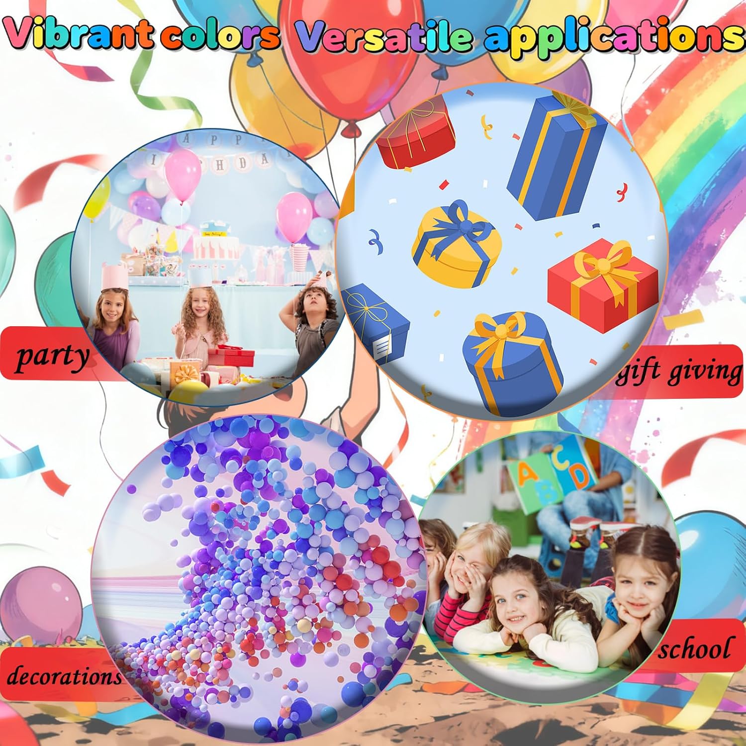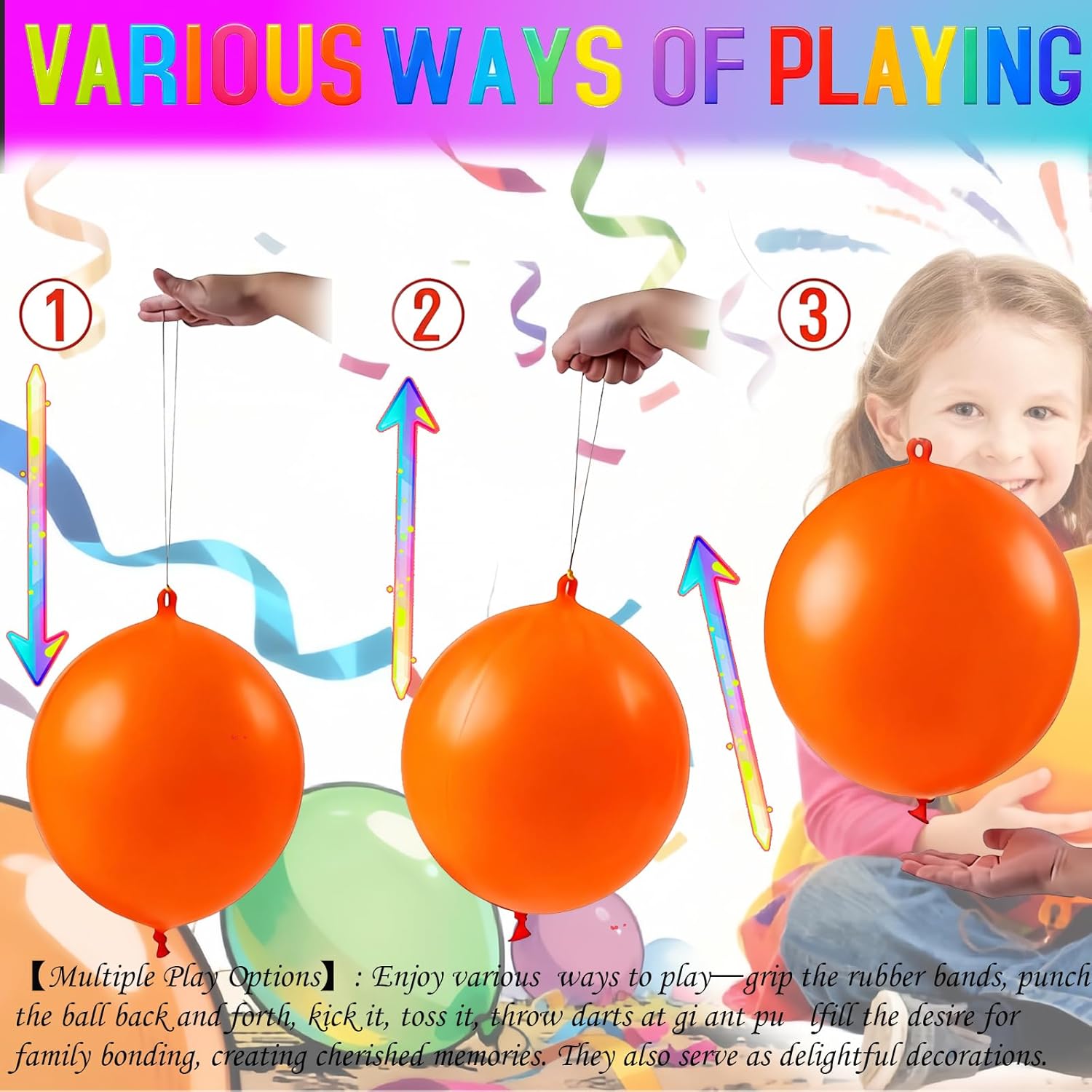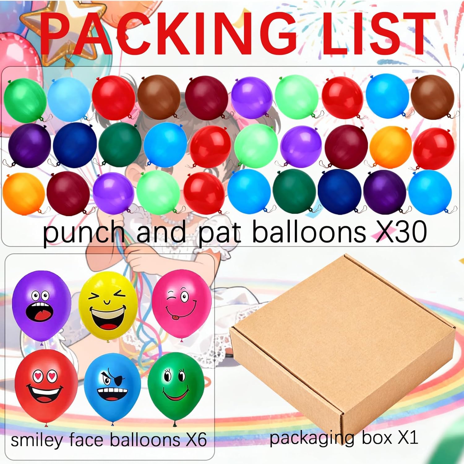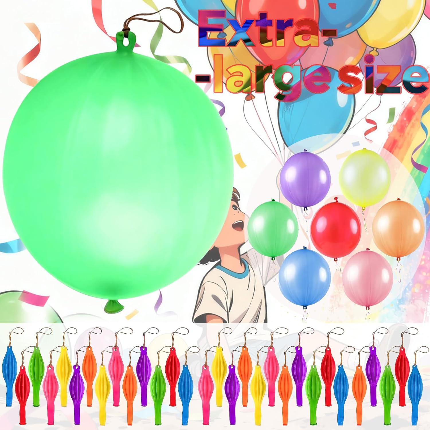 【Decorazioni per feste con palloncini punch XXL vivaci】 Contiene 30 palloncini punch di alta qualità e 6 palloncini smiley per forniture per feste. Ideali per organizzatori o decoratori di feste, questi palloncini punch sono adatti a tutti i tipi di eventi e regalano a tutti un divertimento senza fine. Sono progettati in vari colori vivaci, creando un'atmosfera allegra per compleanni, feste estive, eventi scolastici o altre celebrazioni. La loro elevata elasticità garantisce un rimbalzo duraturo. Con robusti elastici e una comoda impugnatura, possono resistere al gioco energico dei bambini e garantire una lunga durata. 【Usi versatili】Palloncini da punch Adatti a giochi e attività per tutte le età. Palloncini punch ideali per la festa dei bambini, San Valentino, anniversari di matrimonio, feste, addii al nubilato, addio al nubilato, decorazioni natalizie, decorazioni di Halloween, calze, sacchetti regalo e molto altro ancora. Promuove il gioco attivo, la coordinazione e l'interazione di gruppo. 【Dimensioni extra grandi, colori vivaci】 Con il loro diametro impressionante, questi palloncini punch attirano davvero l'attenzione. Che vengano utilizzati come centrotavola decorativo o come divertente accessorio giocattolo, questi grandi palloncini aggiungeranno colore e vivacità a qualsiasi festa. Le loro dimensioni considerevoli e i colori accattivanti garantiscono un'elevata visibilità e li rendono un successo tra bambini e adulti.,Palloncini punch: questo set contiene 30 palloncini punch di alta qualità + 6 palloncini smiley per soddisfare tutte le esigenze della tua festa. Perfetti per l'organizzazione o la decorazione di feste, questi palloncini colorati sono adatti a tutti i tipi di eventi e regalano a tutti un divertimento senza fine