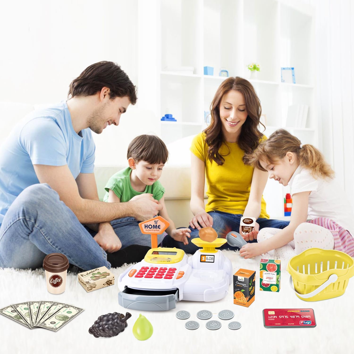 [Esperienza realistica]: grazie alla presenza di luce e suono, il registratore di cassa sembra molto reale. Lo scanner può scansionare qualsiasi prodotto fornito, lascia che tuo figlio svolga il ruolo del proprietario di un negozio di alimentari. I bambini del registratore di cassa possono attirare il divertimento dell'apprendimento dei bambini e sviluppare l'intelligenza cerebrale. [36 accessori per bambini con registratore di cassa]: 1 registratore di cassa con scanner, 11 giocattoli alimentari, 6 soldi, 6 monete, 1 carta di credito, 1 cestino. Richiede 2 batterie AA, non incluse. Questo non solo intratterrà tuo figlio per ore, ma include anche una varietà di accessori per lo shopping che tuo figlio adorerà. [Immaginazione e creatività]: i bambini assumono il ruolo di negoziante, cassiere o cliente, incoraggiando la narrazione fantasy, il gioco di ruolo e la creatività. Perfetto per giochi da soli e di gruppo per i bambini e i loro amici o per i genitori che giocano con il bambino durante il gioco. È utile migliorare le competenze di base e le abilità pratiche dei bambini nella comunicazione e nella cooperazione. [Sviluppa preziose competenze di base]: quando premi lo scanner, il registro legge la quantità di articoli e calcola l'importo totale della merce acquistata. Registratore di cassa Insegna a tuo figlio le abilità matematiche di base come contare. Il tuo bambino si divertirà ad aggiungere, sottrarre, dividere e moltiplicare. [Sicurezza e controllo di qualità] Realizzato con materiali sicuri e rispettosi dell'ambiente, il design con bordi arrotondati fornirà la massima sicurezza per i tuoi bambini. Atossico e sicuro al 100% per i bambini. Anche l'installazione del registratore di cassa per bambini è molto semplice.