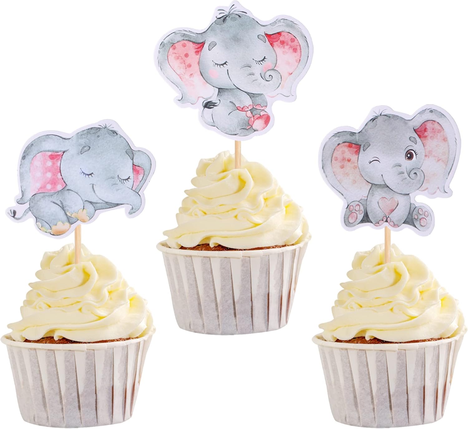 Materiale: i nostri toppers per cupcake sono realizzati in cartone glitterato su un solo lato spesso di alta qualità. Confezione: contiene toppers cupcake da 36 pezzi. che può soddisfare le tue diverse esigenze di decorazione, questi toppers cupcake sono preassemblati, puoi usarli direttamente quando li ricevi Dimensioni: la dimensione è 5,4 x 3,5 pollici / 1,7 x 4,2 pollici / 2 x 4,2 pollici / 2,7 x 4,2 / 1,2 x 3,9 pollici / 2 x 4,2 pollici (con bastoncino) Applicazione: decorazione perfetta per cupcake, biscotti, torte, frutta, brownies, ghiaccio crema e altro, particolarmente adatto per feste a tema elefanti, feste a tema animali dello zoo, feste a tema baby shower, feste a tema rivelazione di genere, feste di compleanno per bambini, forniture per decorazioni per cupcake Suggerimenti: questi toppers per cupcake non sono commestibili e sono solo a scopo decorativo, per favore non usarli nel forno o nel microonde