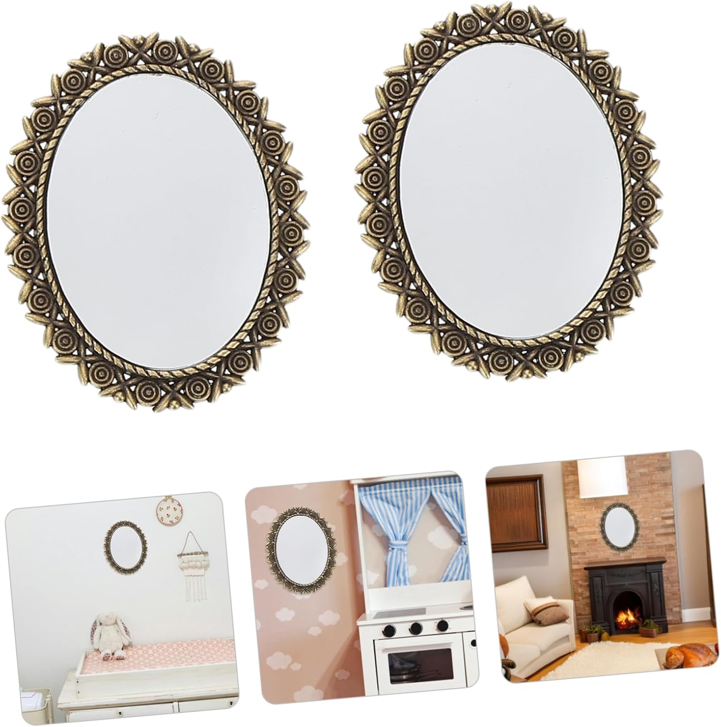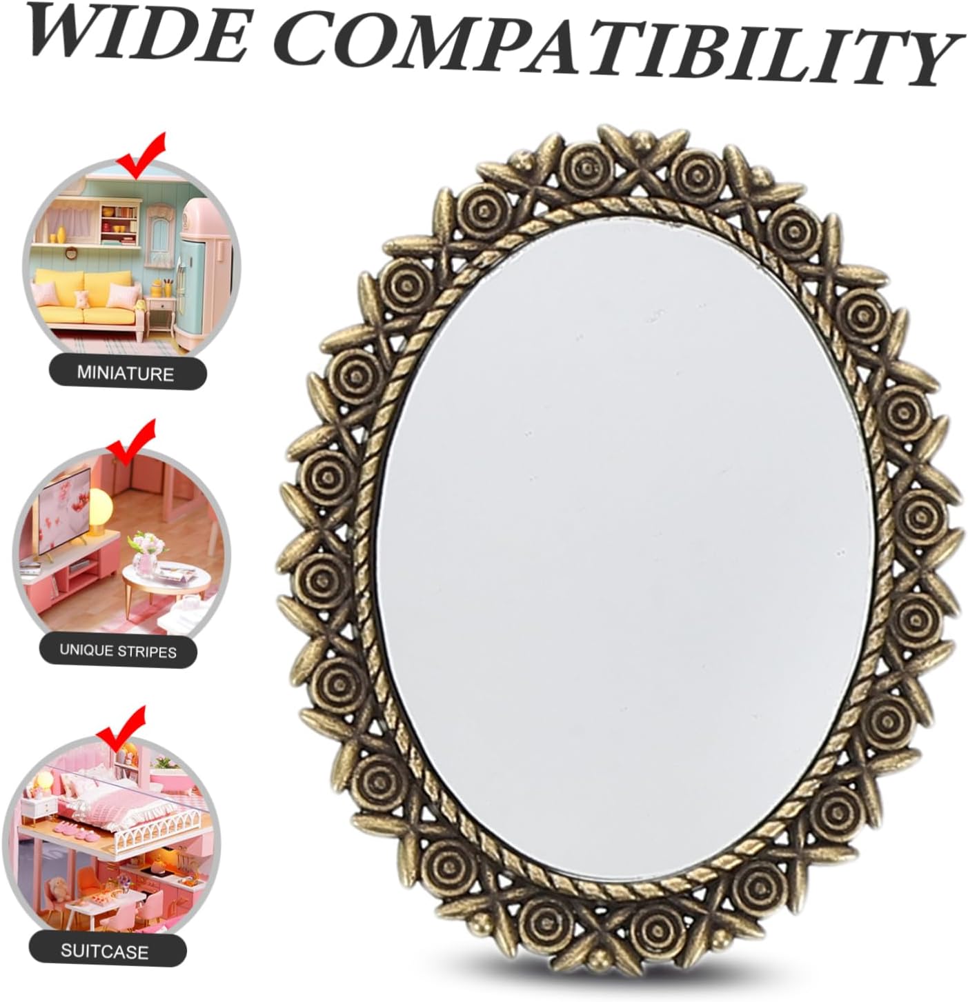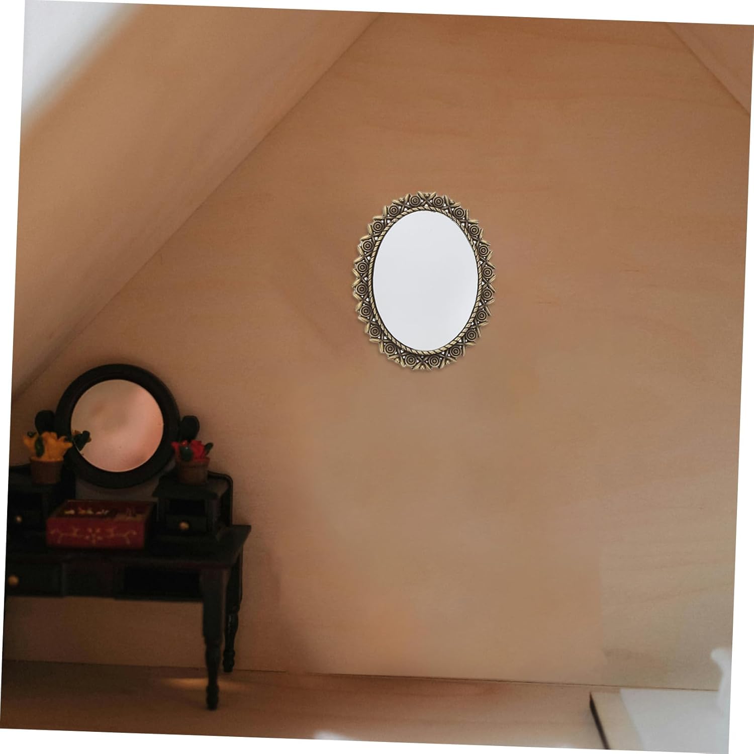 Dettagli realistici: la lavorazione artigianale garantisce un aspetto realistico e aggiunge autenticità ai mobili delle case delle bambole e ai modelli di giochi di ruolo e agli specchi da parete delle case delle bambole. Look vintage: la cornice in bronzo antico replica gli stili e aggiunge un tocco realistico e sofisticato ai mobili in miniatura, agli specchi ovali con piccoli oggetti decorati per le case delle bambole. Specchio per casa delle bambole: la forma ovale si abbina sia allo stile moderno che a quello tradizionale delle case delle bambole e aggiunge versatilità alla tua collezione. Piccoli mobili in miniatura, specchi in miniatura per case delle bambole Mini specchio in lega: questo specchio è resistente all'usura e costituisce una bellissima aggiunta alla tua collezione, mobili per case delle bambole, imitazioni di mini specchi Specchio per casa delle bambole: la forma ovale aggiunge un tocco e lo rende un complemento ideale per la decorazione della casa delle bambole per gli appassionati del fai da te, decorazioni per case delle bambole in miniatura e mobili per case delle bambole
