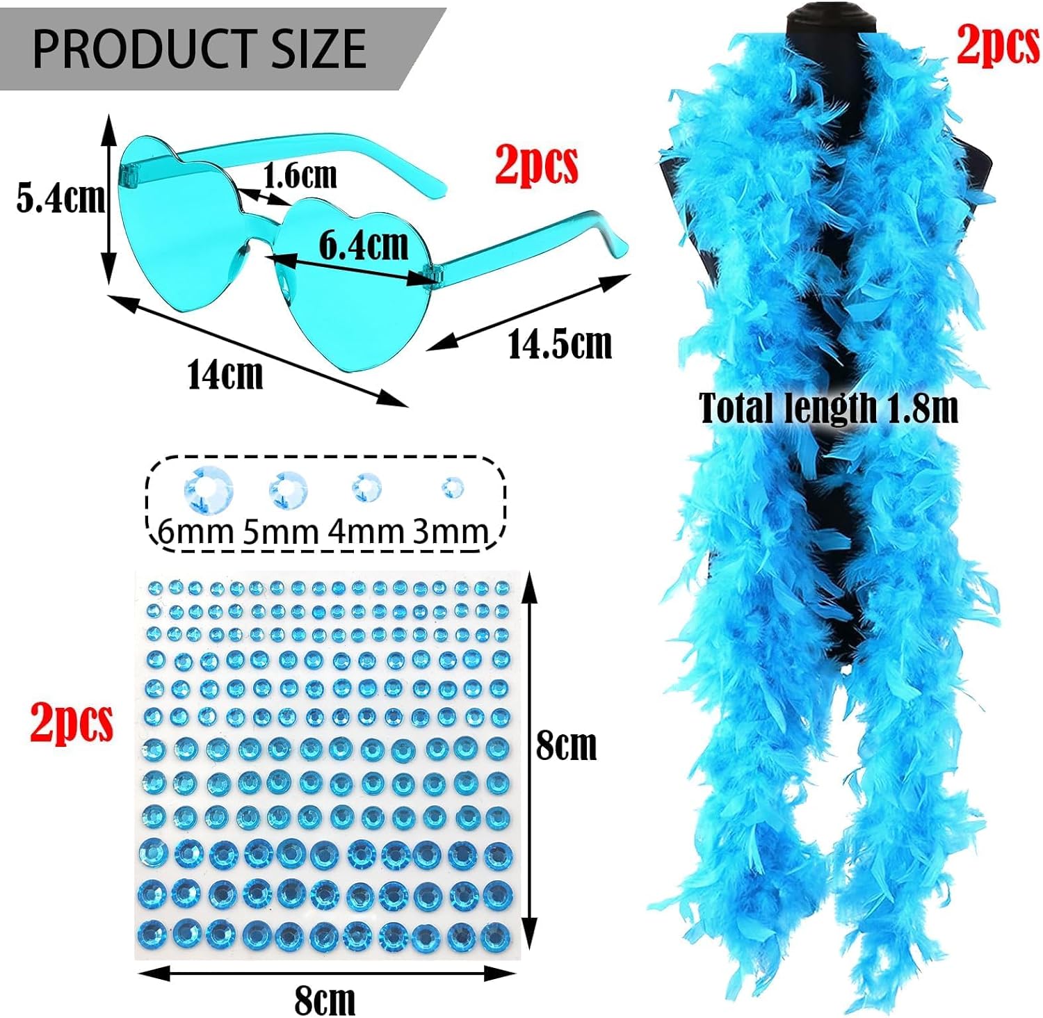 RICEVERAI: 2 * Boa di piume, 2 * Occhiali da sole a cuore senza montatura, 2 * Strass adesivi per il viso. ACCESSORI ELEGANTI PER LE FESTE: Ravviva il tuo costume o outfit con il nostro boa di piume da 1,8 m da donna. Avvolgili attorno alle spalle o alle braccia per aggiungere immediatamente un tocco di eleganza e raffinatezza al tuo look. MULTIUSO: I nostri boa di piume sono la scelta perfetta per aggiungere un tocco di eleganza a gonne, lampade, fasce per capelli, vestiti e costumi vari. Sono ideali per occasioni festive come costumi da flapper, Mardi Gras, feste di Capodanno, feste Gatsby, Halloween, matrimoni, balli ed eventi cosplay. SUPPORTO FOTOGRAFICO IDEALE: La nostra sciarpa con piume è un must per feste, celebrazioni, spettacoli teatrali e servizi fotografici. Sono perfetti per spettacoli di danza, eventi speciali, matrimoni, feste di carnevale, feste di Natale, feste di Capodanno, feste di Halloween e tanto altro. NOTA IMPORTANTE: Si prega di notare che gli scialli di piume sono prodotti naturali fatti a mano e un leggero spargimento di piume è normale. Prima dell'uso, si consiglia di eliminare le piume in eccesso all'aperto e di lasciare il boa sospeso per alcune ore. Ciò garantisce il miglior aspetto e una perdita minima quando indossato.